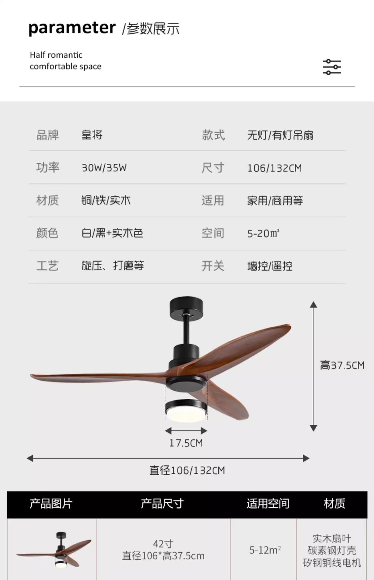 Solid wood fan light, fan chandelier, ceiling electric fan