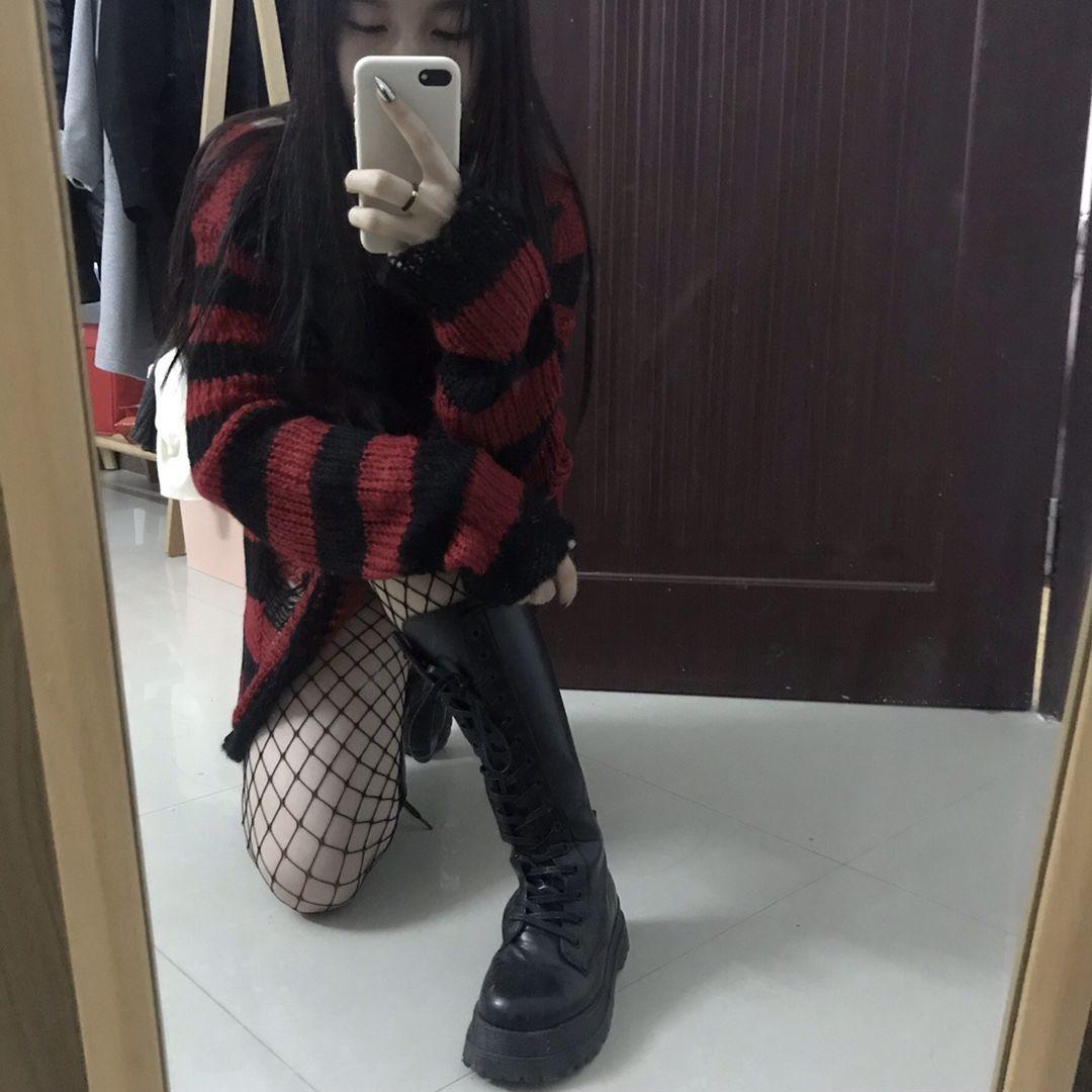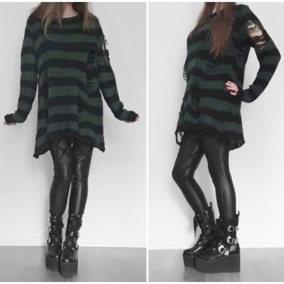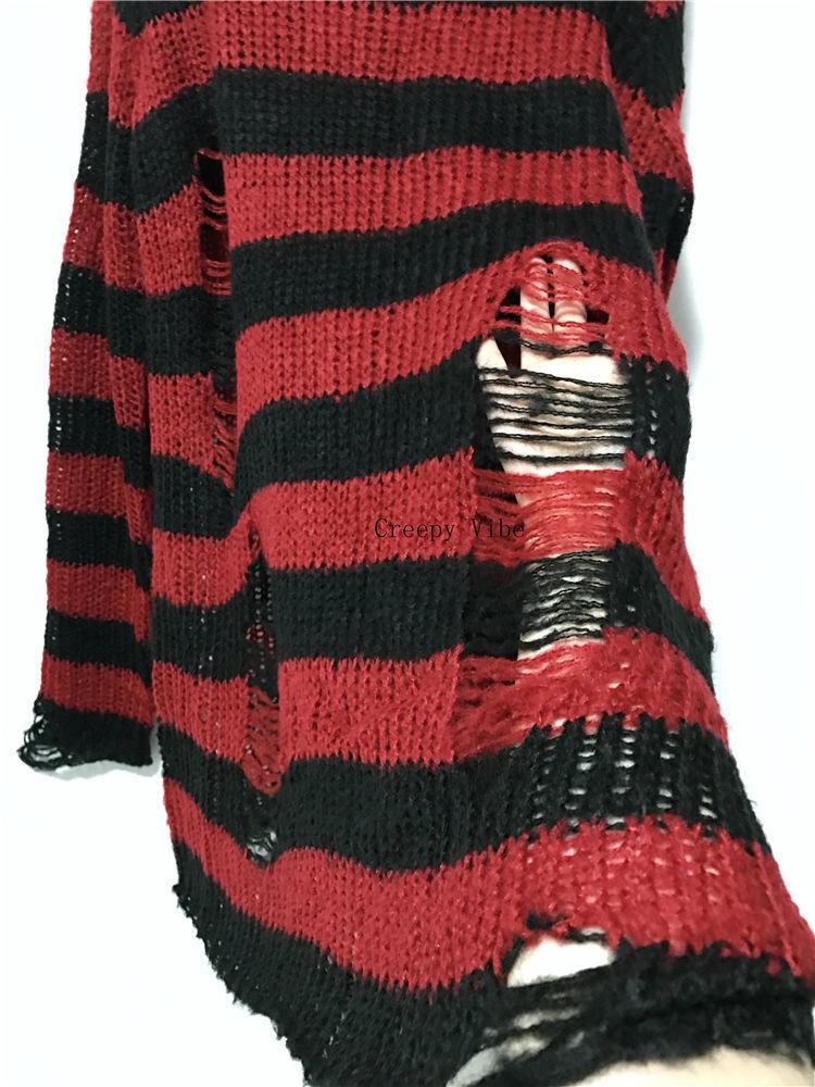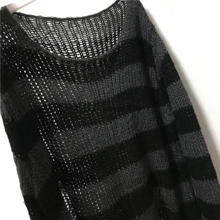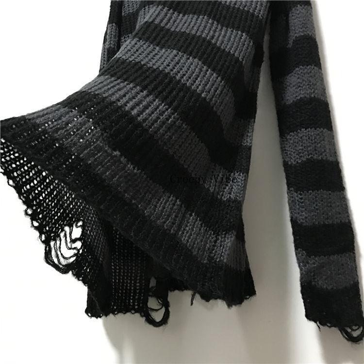 Suéter transfronterizo para mujer, largo, punk, oscuro, europeo y americano, roto, suéter amazónico, rayas sueltas para parejas