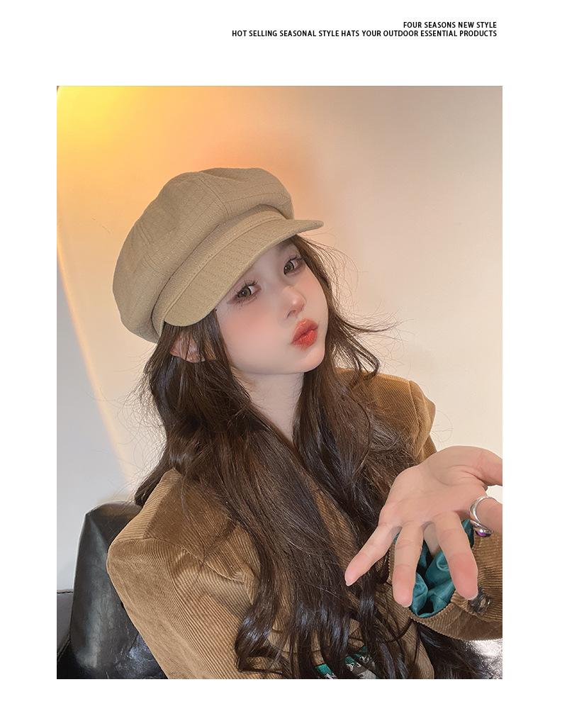 Sombrero de mujer para otoño e invierno, color sólido, pequeño sombrero octogonal a cuadros, boina pequeña con aspecto retro japonés, sombrero de pintor informal que combina con todo.