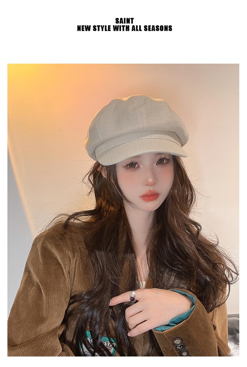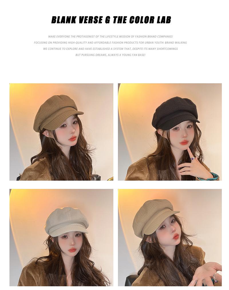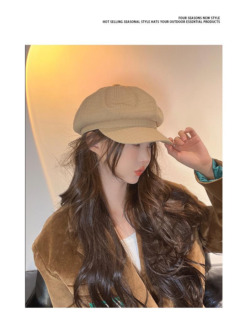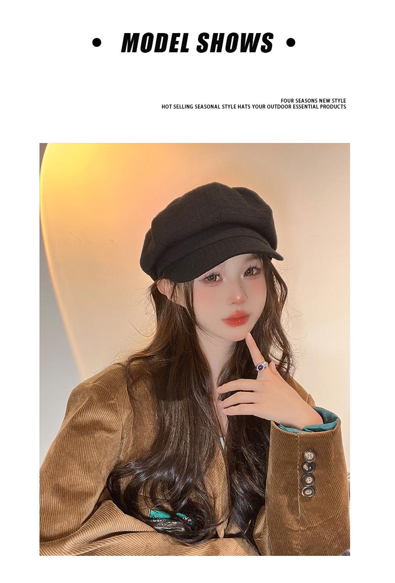 C2830 solid color small plaid octagonal cap Black, C2830 solid color small plaid octagonal cap beige, C2830 so...