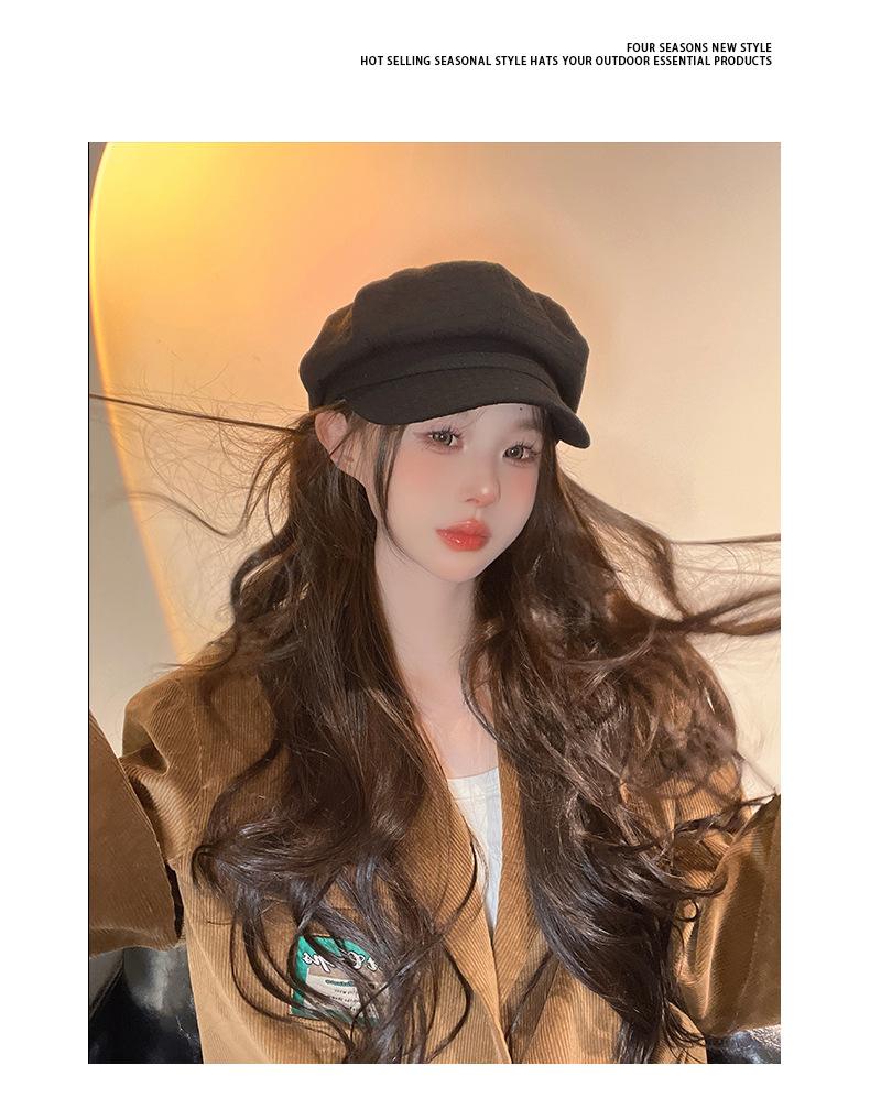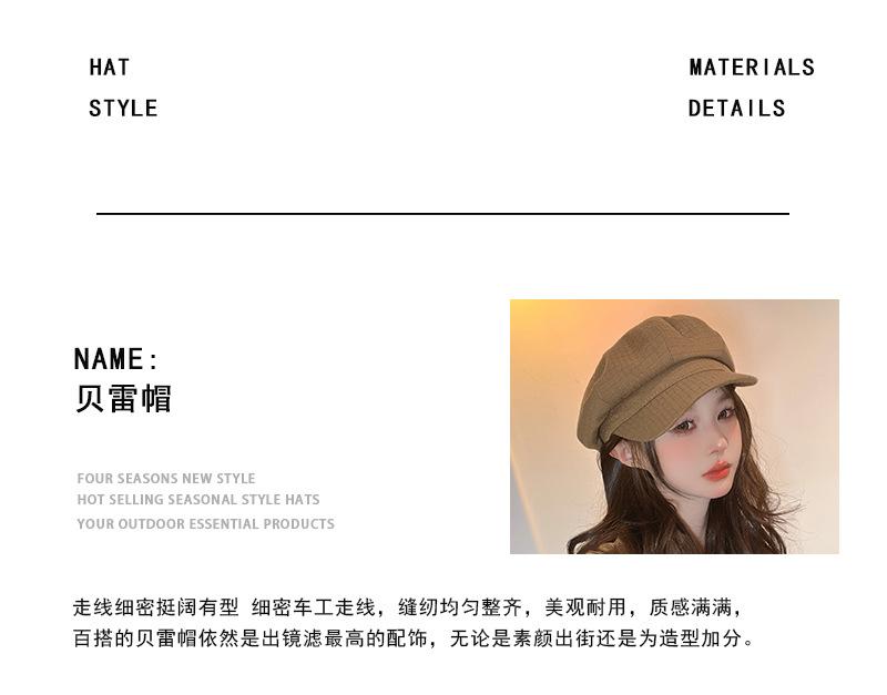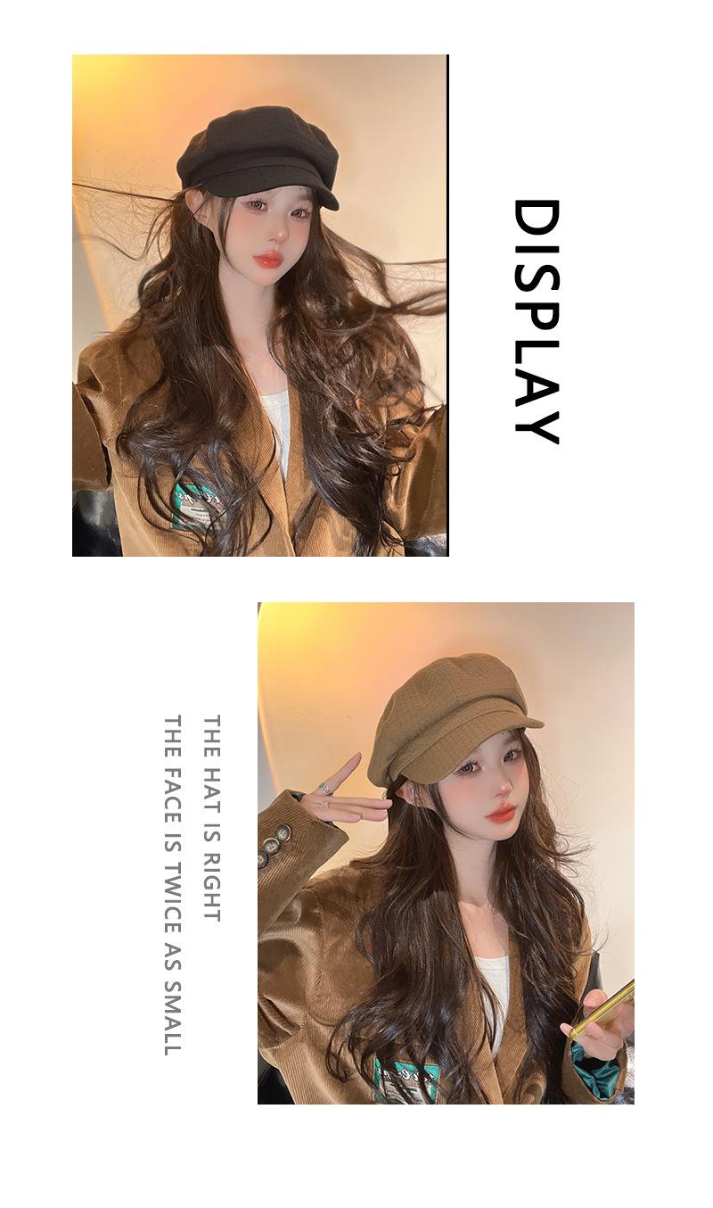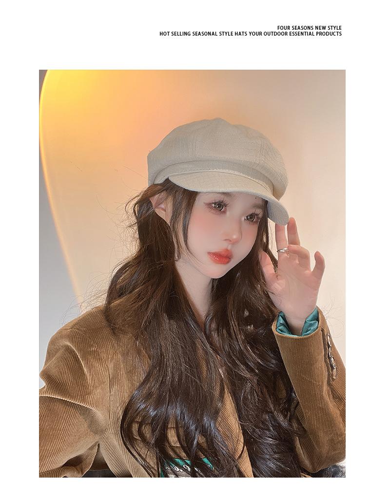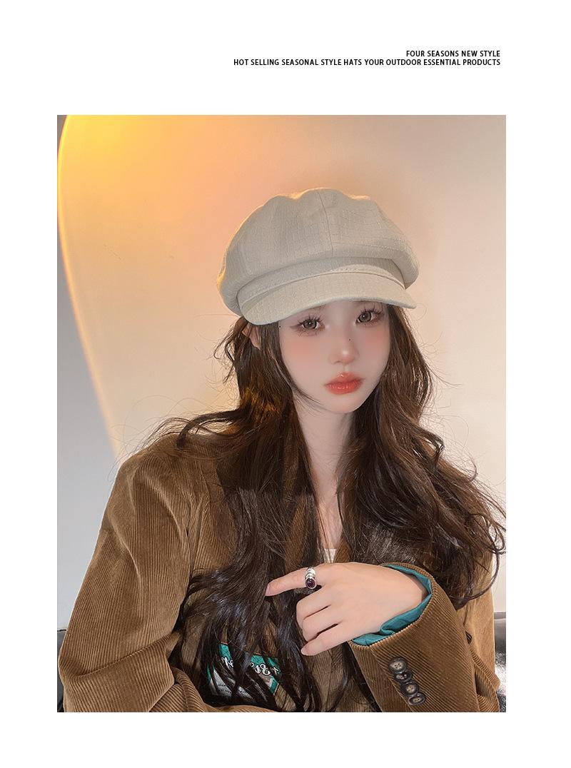 C2830 solid color small plaid octagonal cap Black, C2830 solid color small plaid octagonal cap beige, C2830 so...