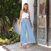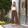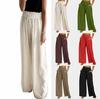 2023 Amazon Primavera y Verano Nuevo Color Sólido Pantalones Plisados de Cintura Alta Europeos y Americanos Casual Algodón Lino para Mujer Largos