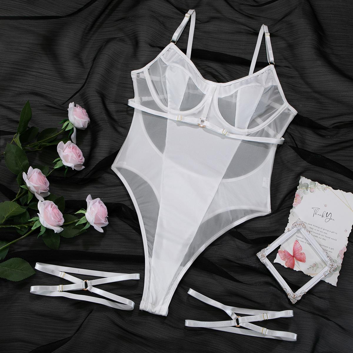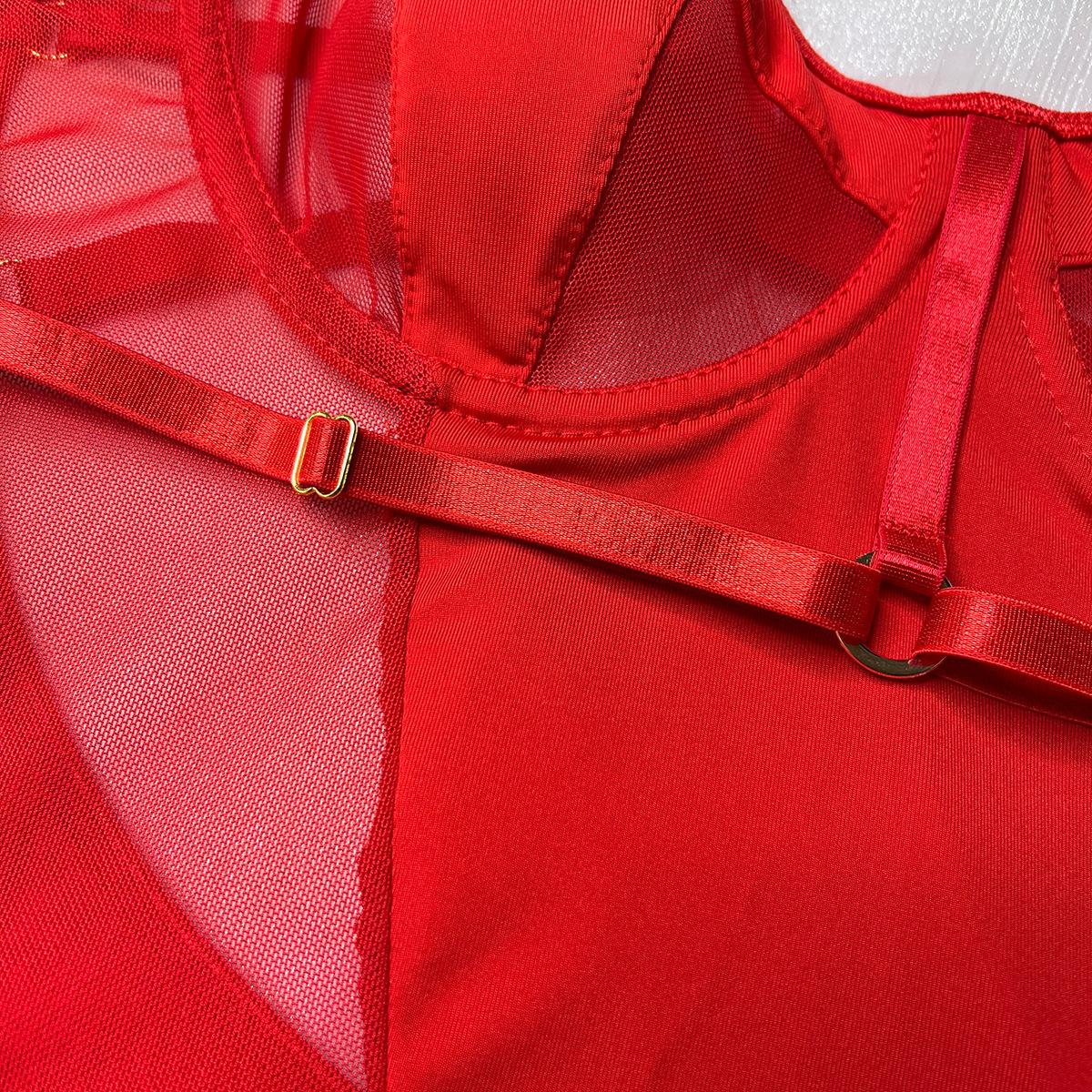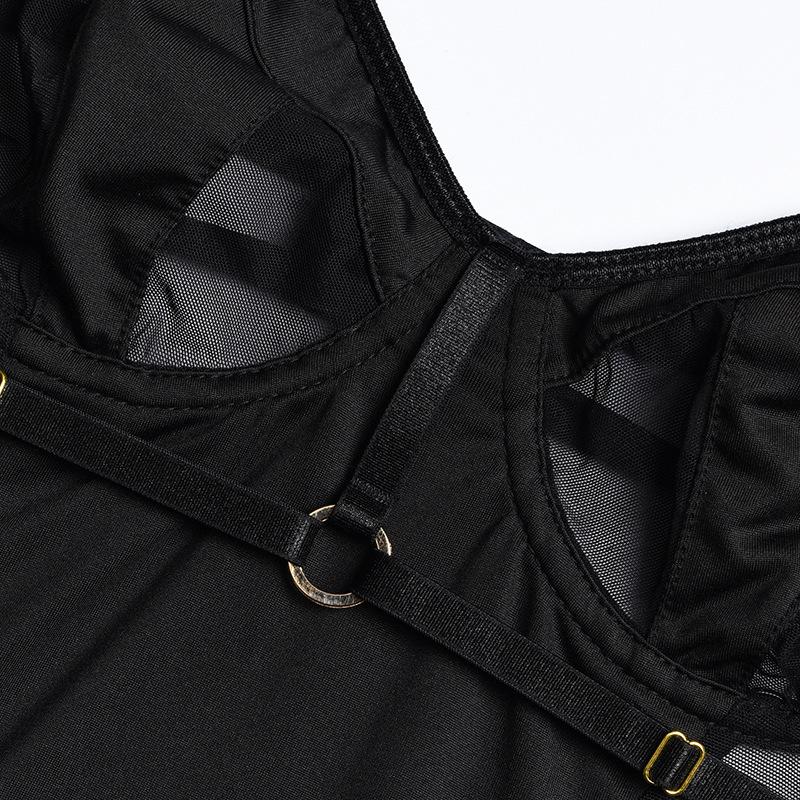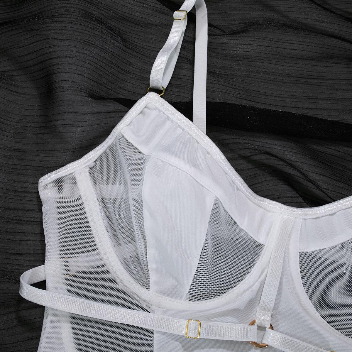 Mono sexy con aro de metal para mujer, estilo europeo y americano, con costuras de malla, sin espalda, estilo divertido, 2022