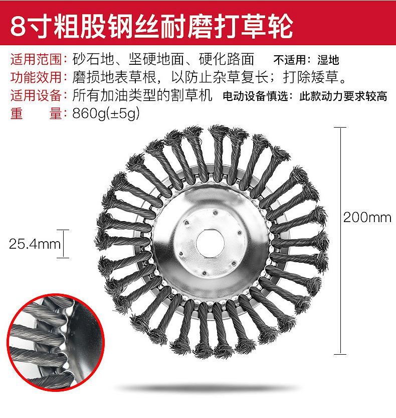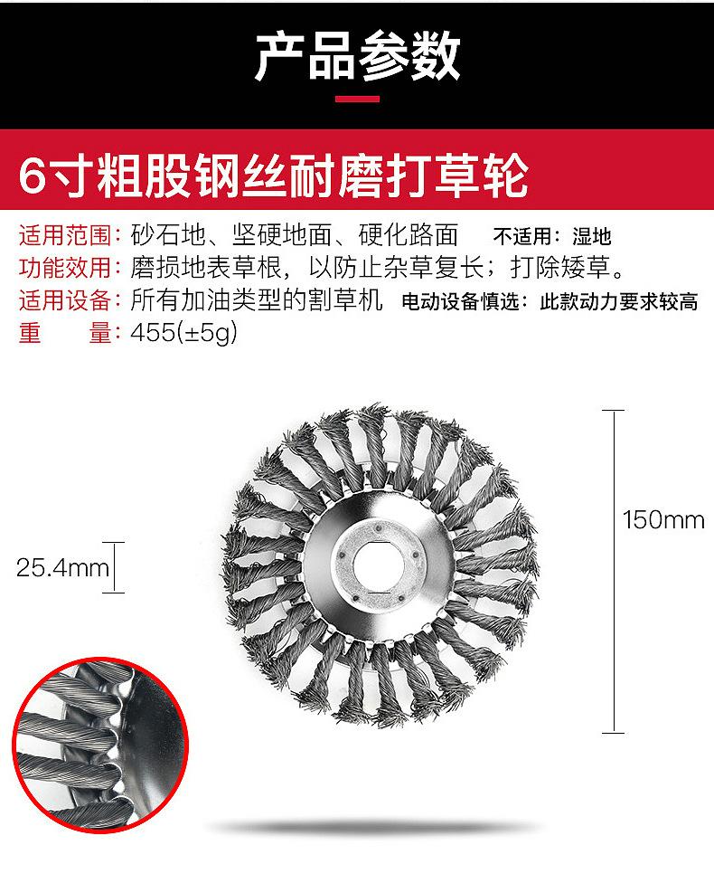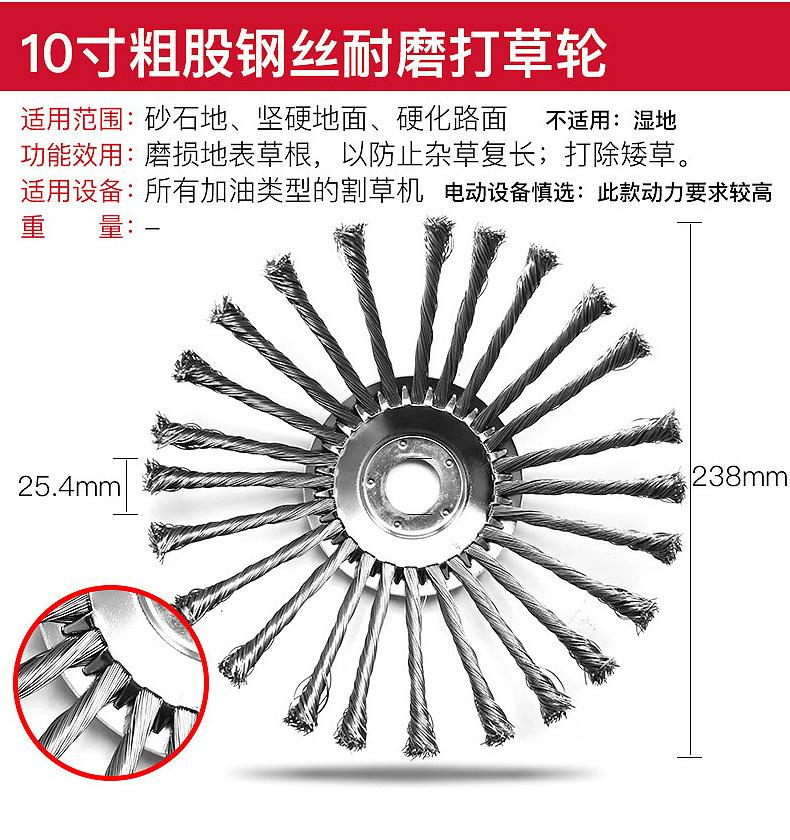 25.4 work head 3-piece set, 25.4 inner hole 6inch steel wire grass head (excluding three-piece set), 25.4 inne...