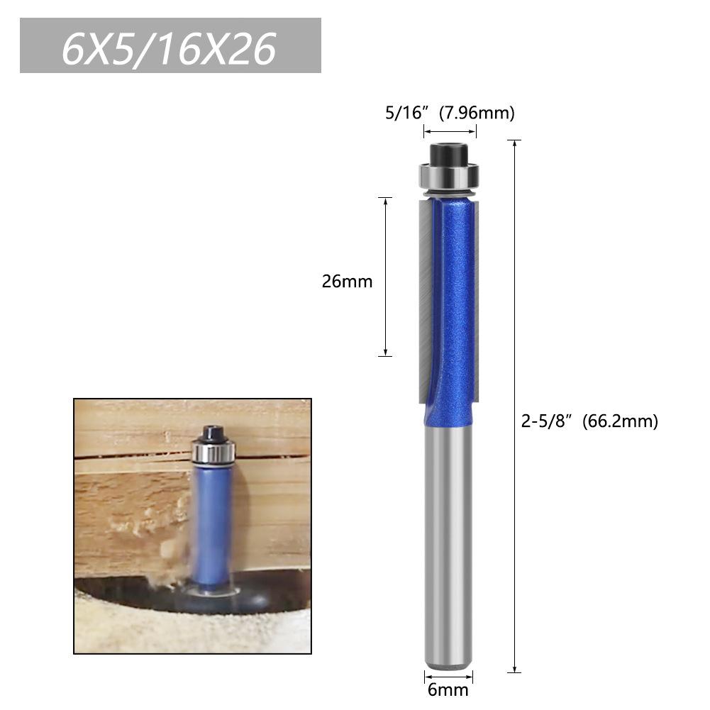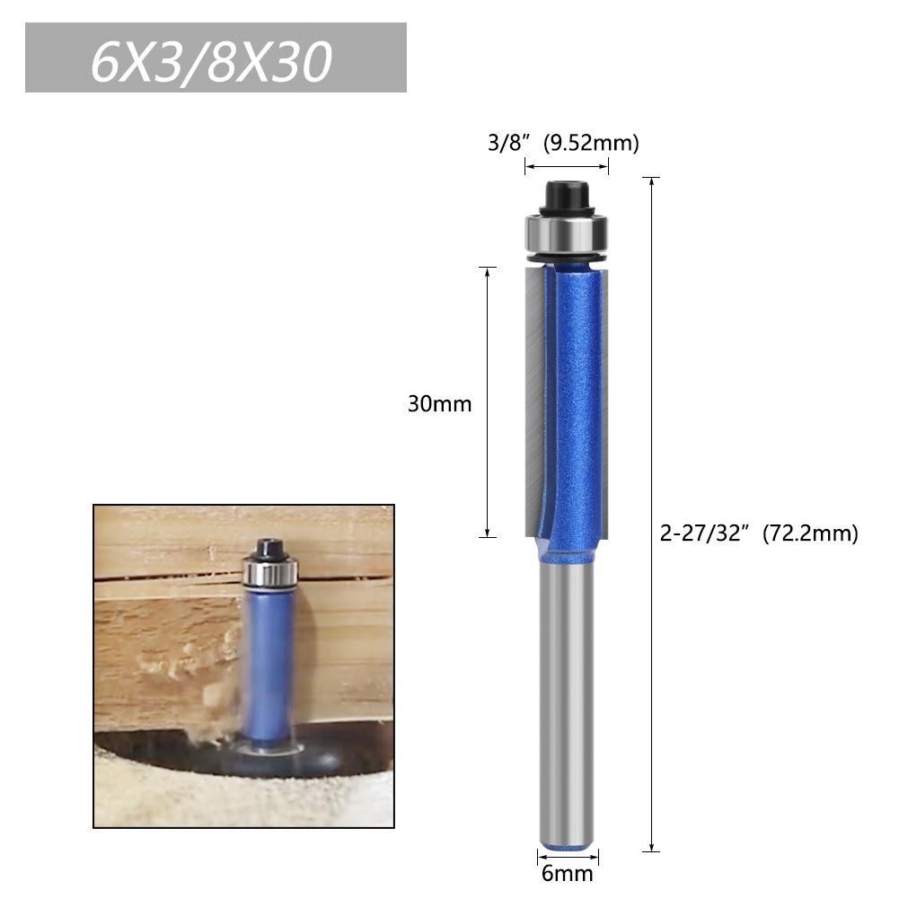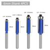 Los mangos de las fresas para carpintería incluyen: 3 mm, 6 mm, 1/4" (6,35 mm), 8 mm, 12 mm, 1/2" (12,7 mm)