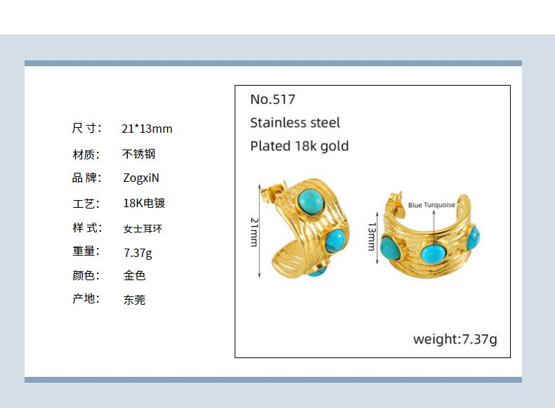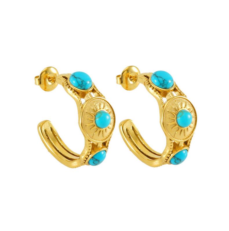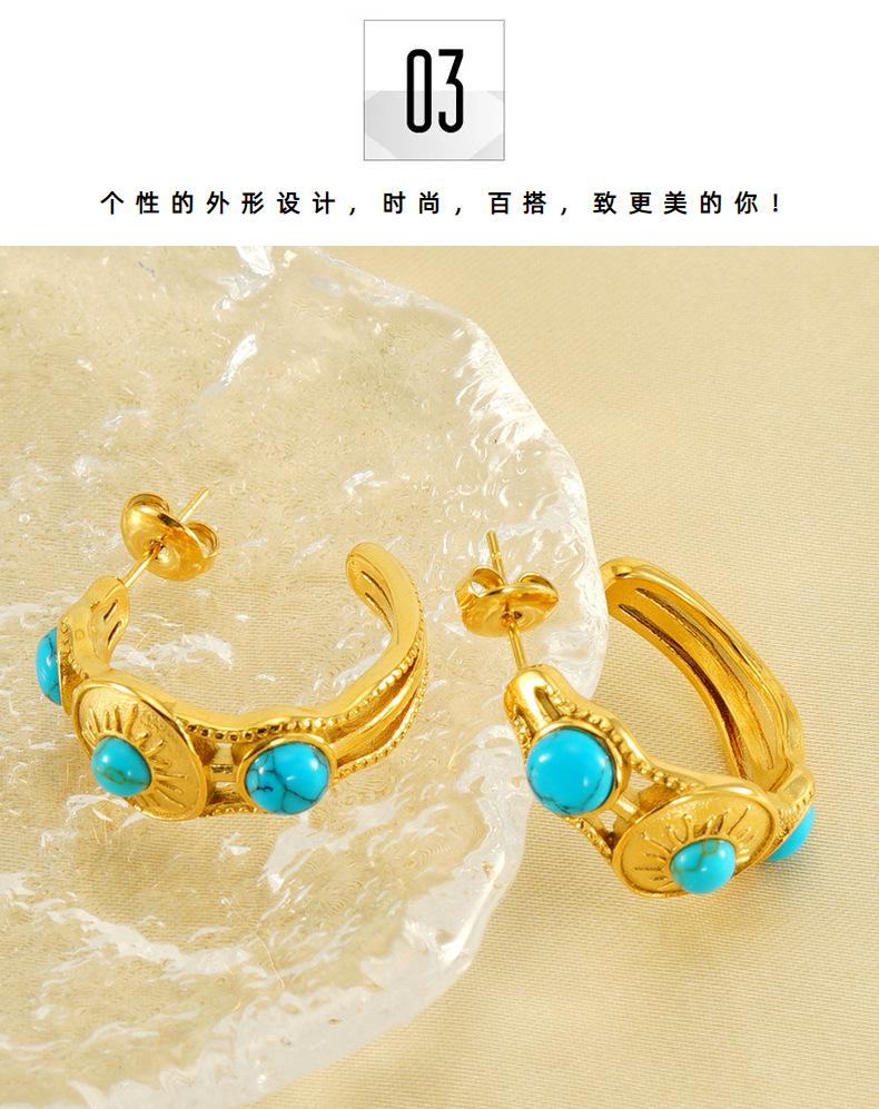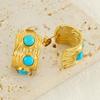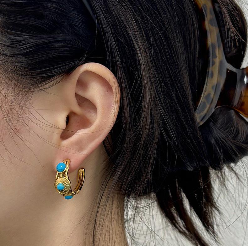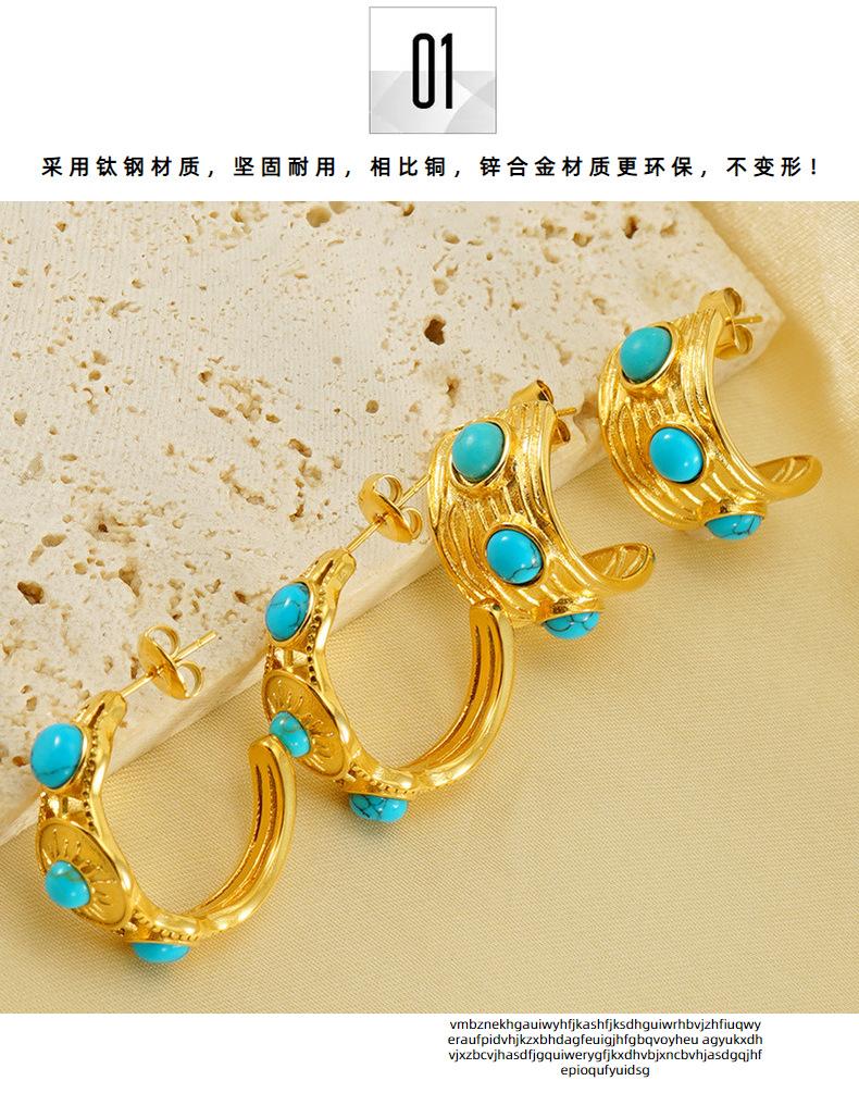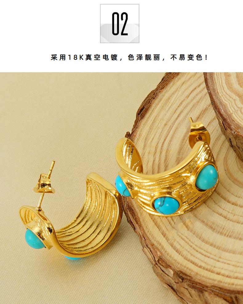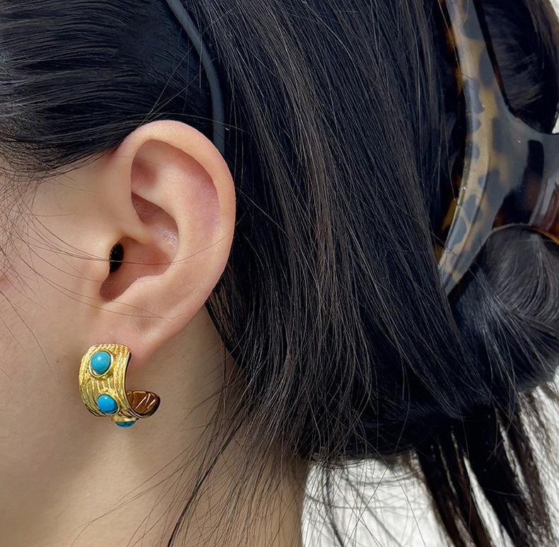 Moda Francesa Estilo Retro Personalizado Simple Elegante Sensación de Textura Aretes de Acero Inoxidable de Lujo Ligero para Mujer con Turquesa Azul