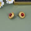 Nuevos pendientes de acero inoxidable europeo y americano con forma de red roja vibrato con diamantes redondos para mujer, oro de 18 quilates, joyería sencilla y versátil para mujer