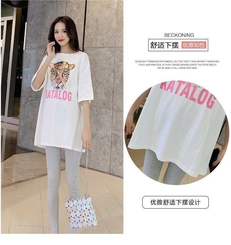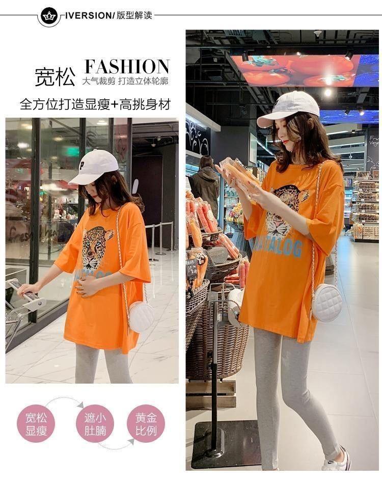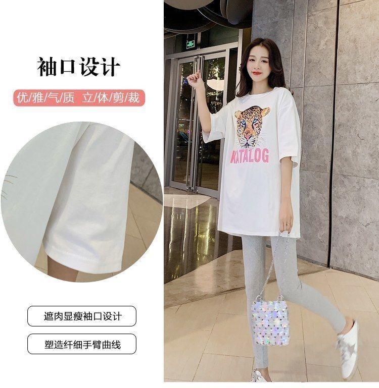 Ropa de maternidad, nueva moda de verano, camiseta de manga corta de talla grande para mujeres embarazadas, traje de dos piezas estilo coreano holgado e informal para mujeres embarazadas