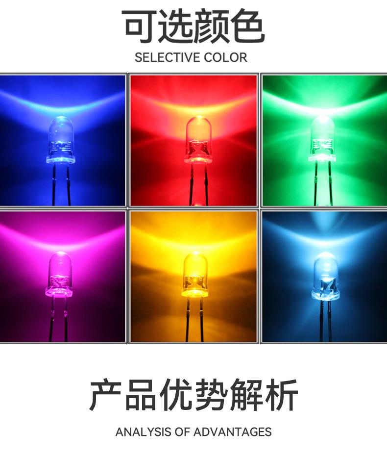 F5/5mm led de cabeza redonda transparente blanco brillante pelo rojo azul verde amarillo naranja luz blanca led en línea diodo emisor de luz