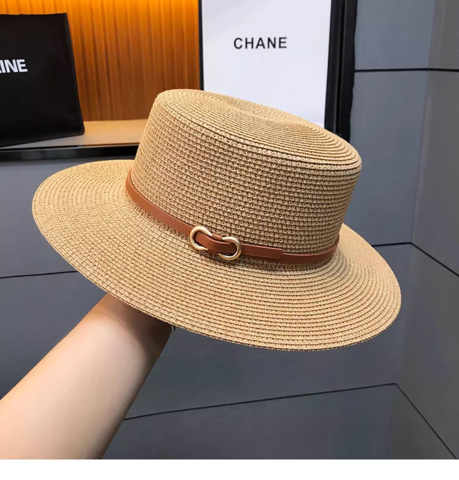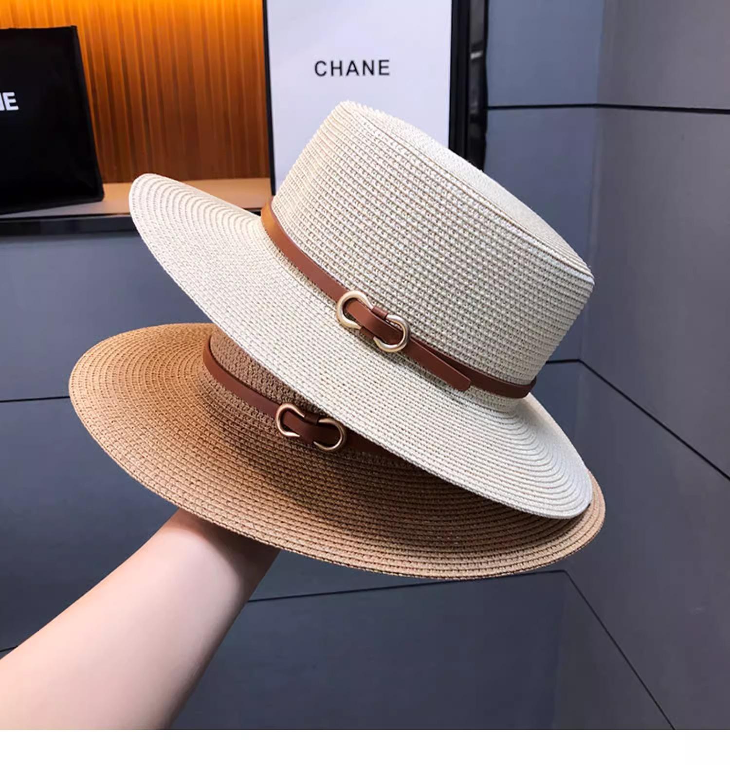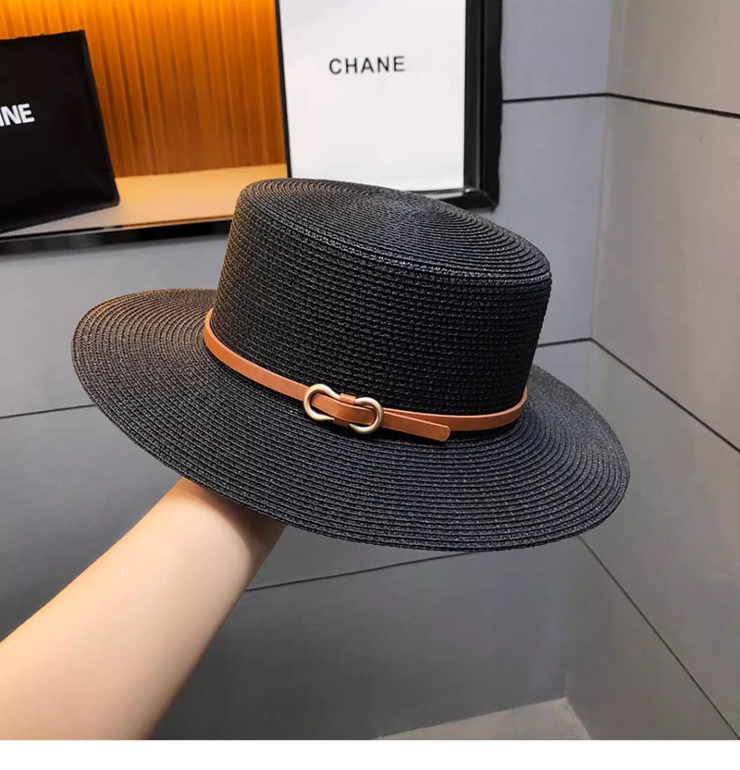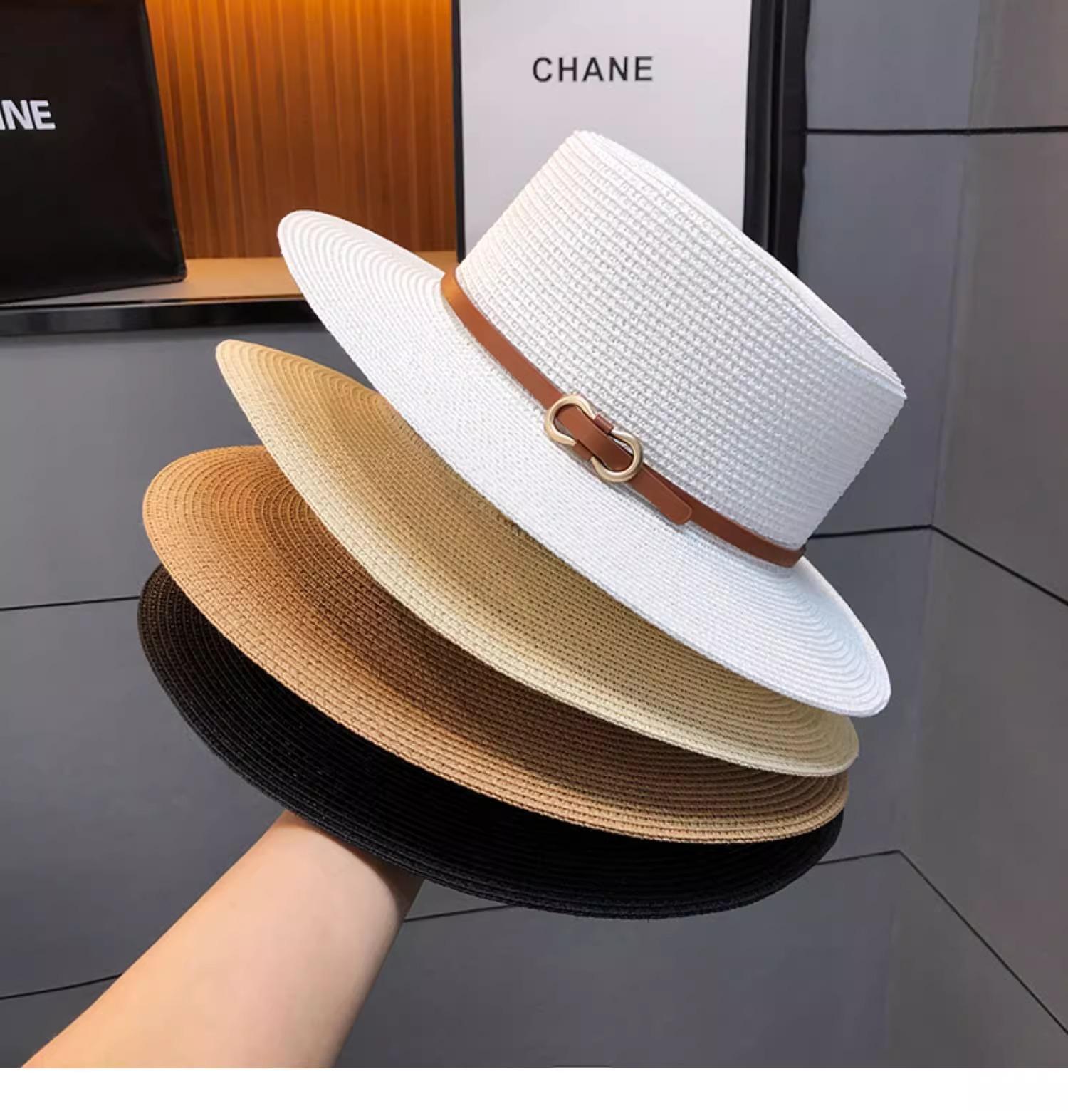 Sombrero de Copa Plano Francés Verano Vacaciones Marinas Parasol Sombrero de Paja Protector Solar Que Muestra la Cara Pequeño Temperamento Sombrero para el Sol Niños