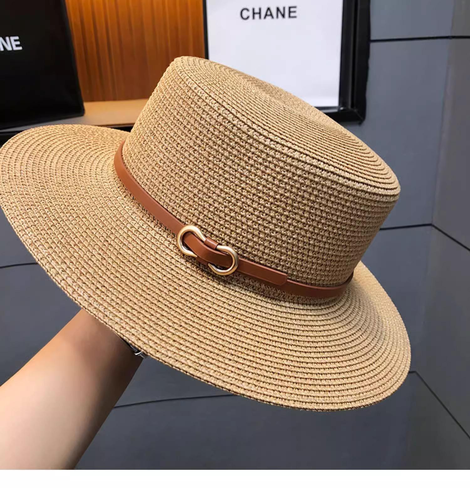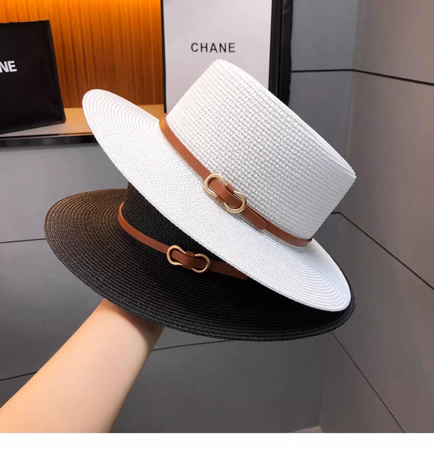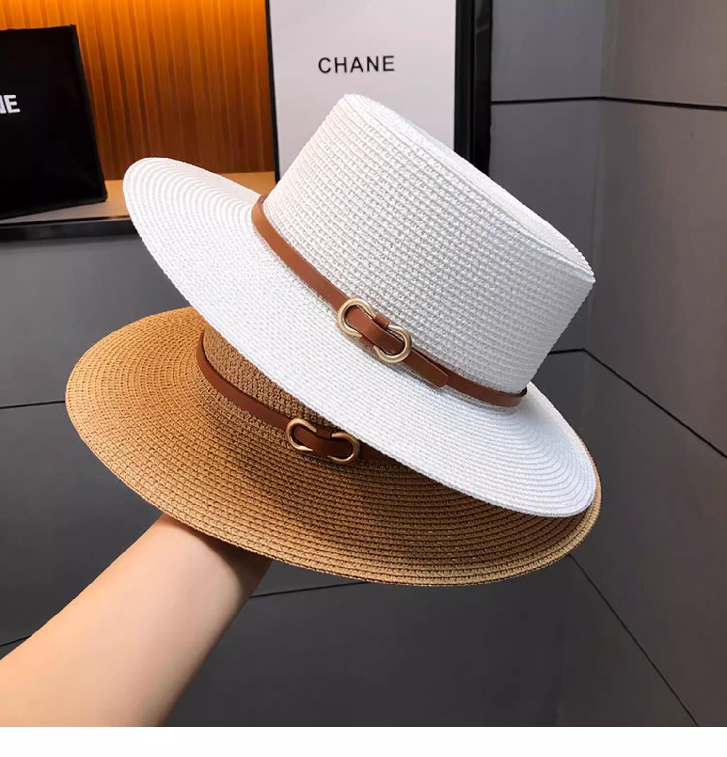 Sombrero de Copa Plano Francés Verano Vacaciones Marinas Parasol Sombrero de Paja Protector Solar Que Muestra la Cara Pequeño Temperamento Sombrero para el Sol Niños