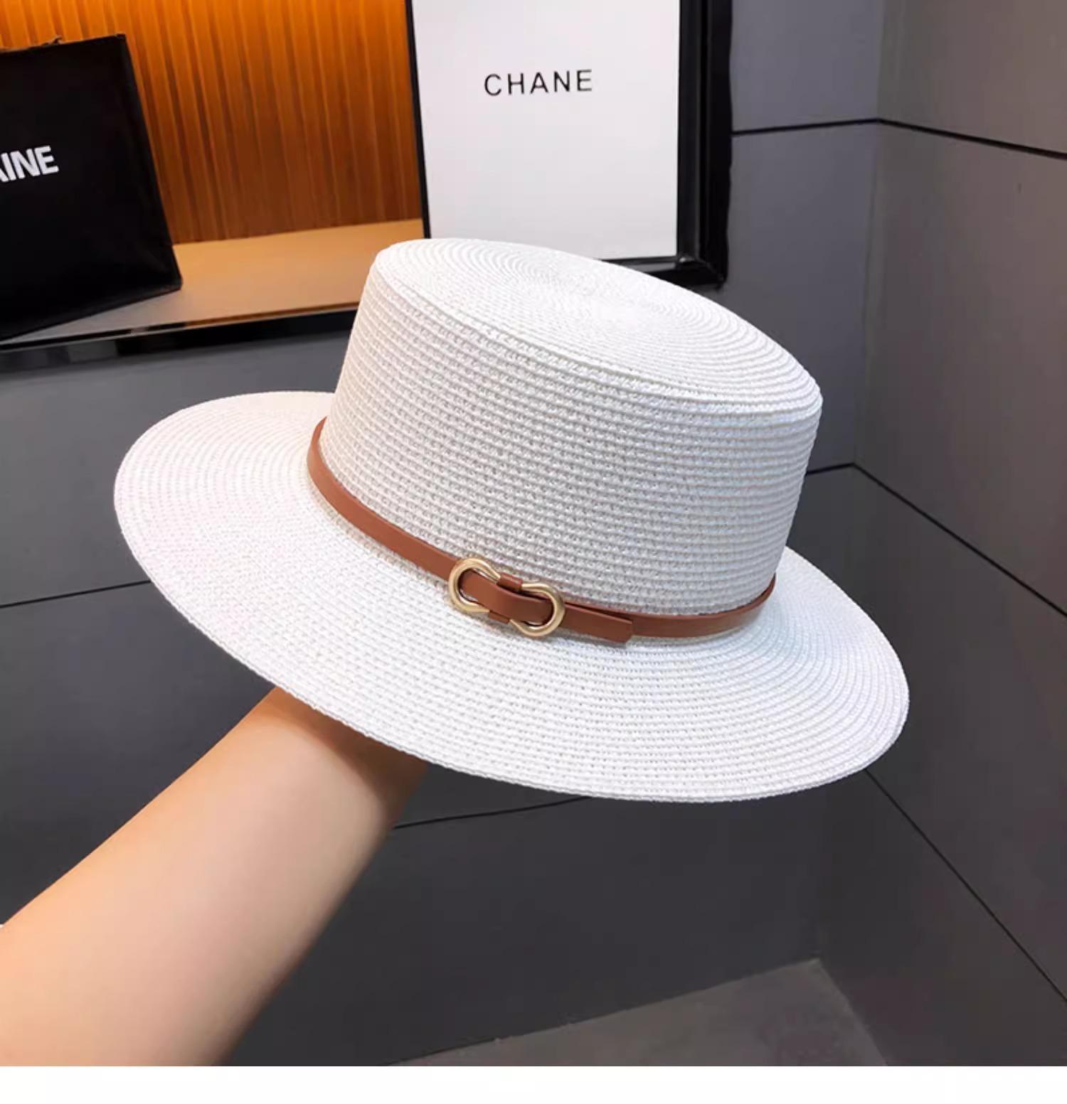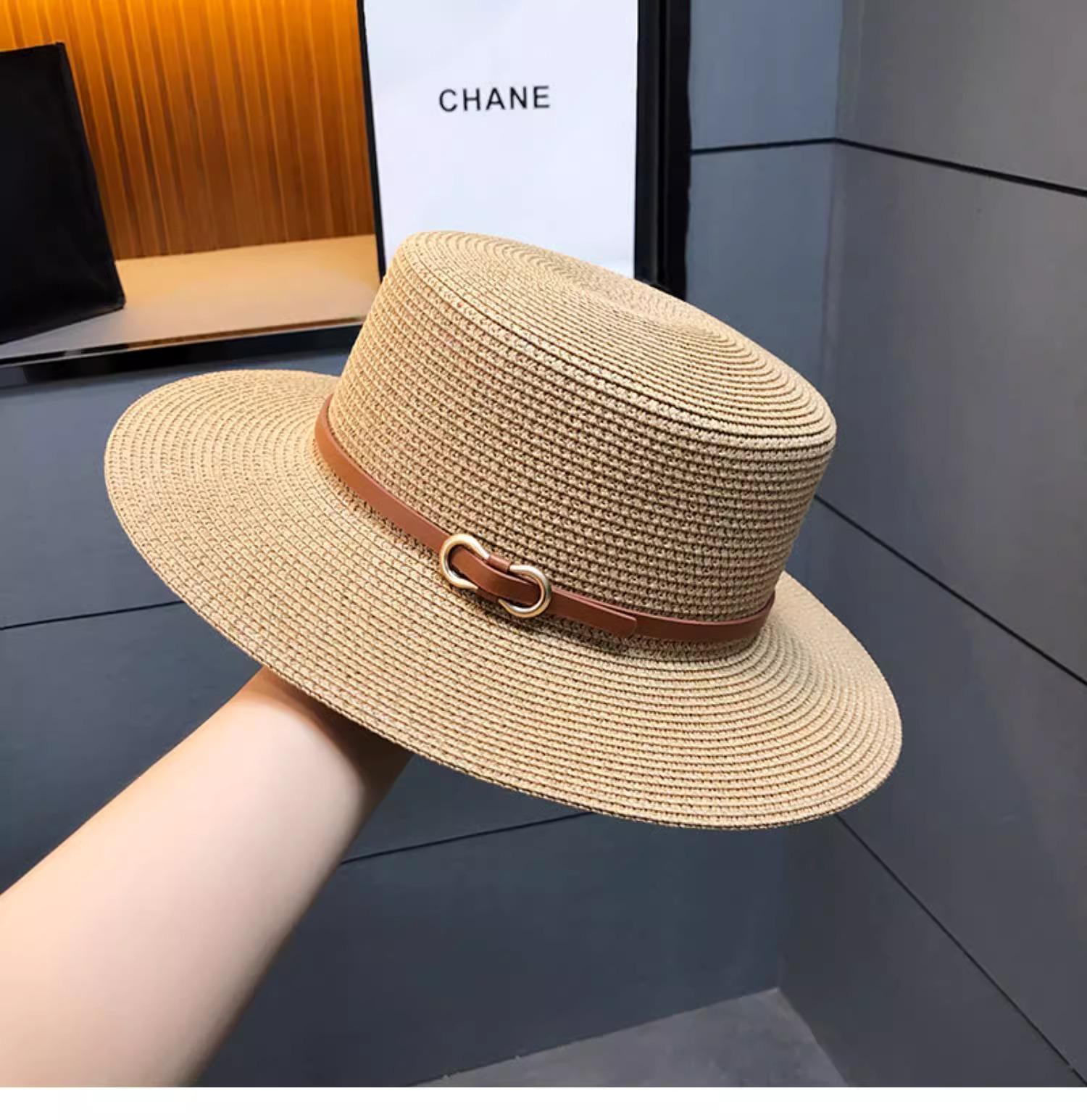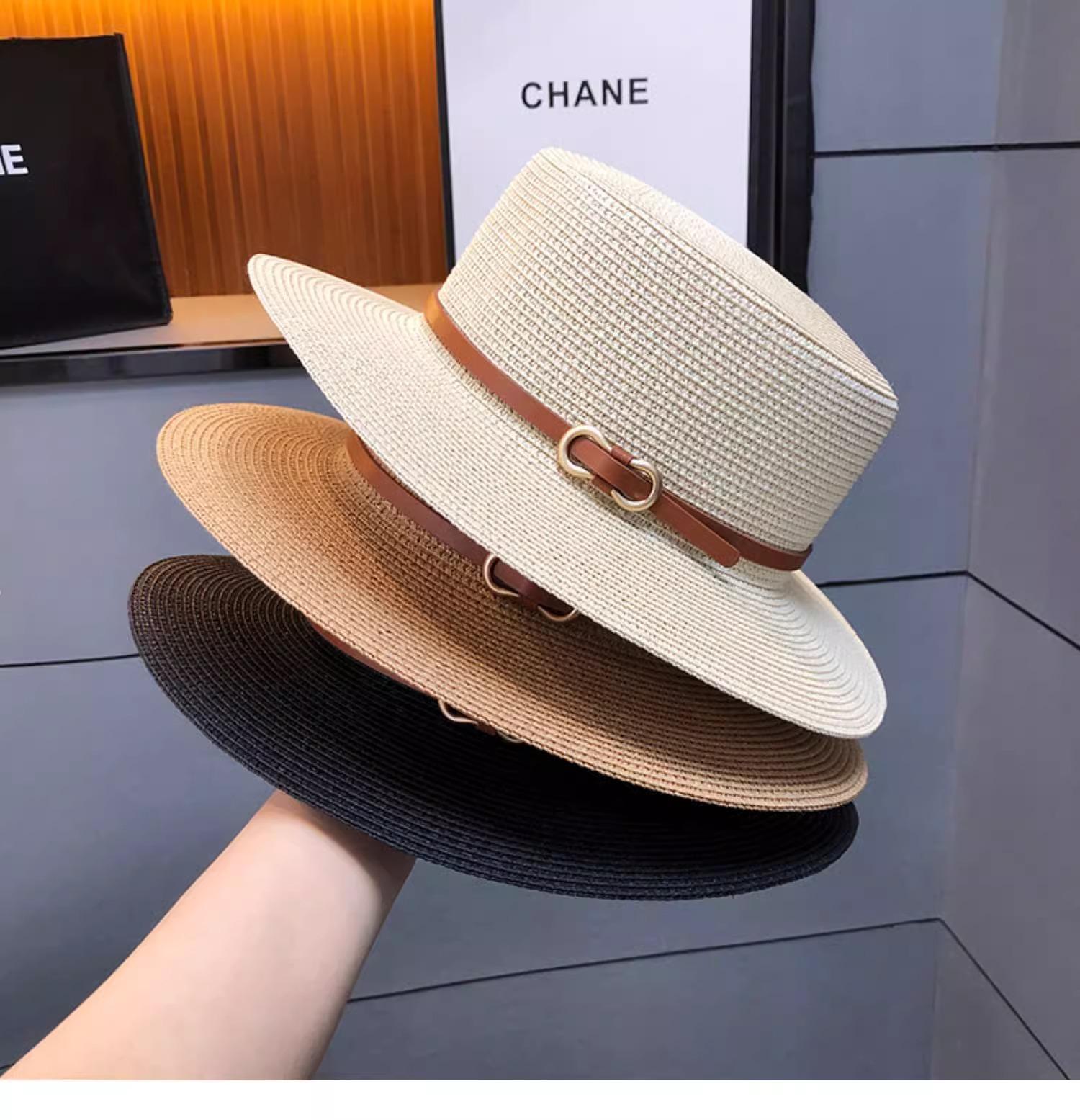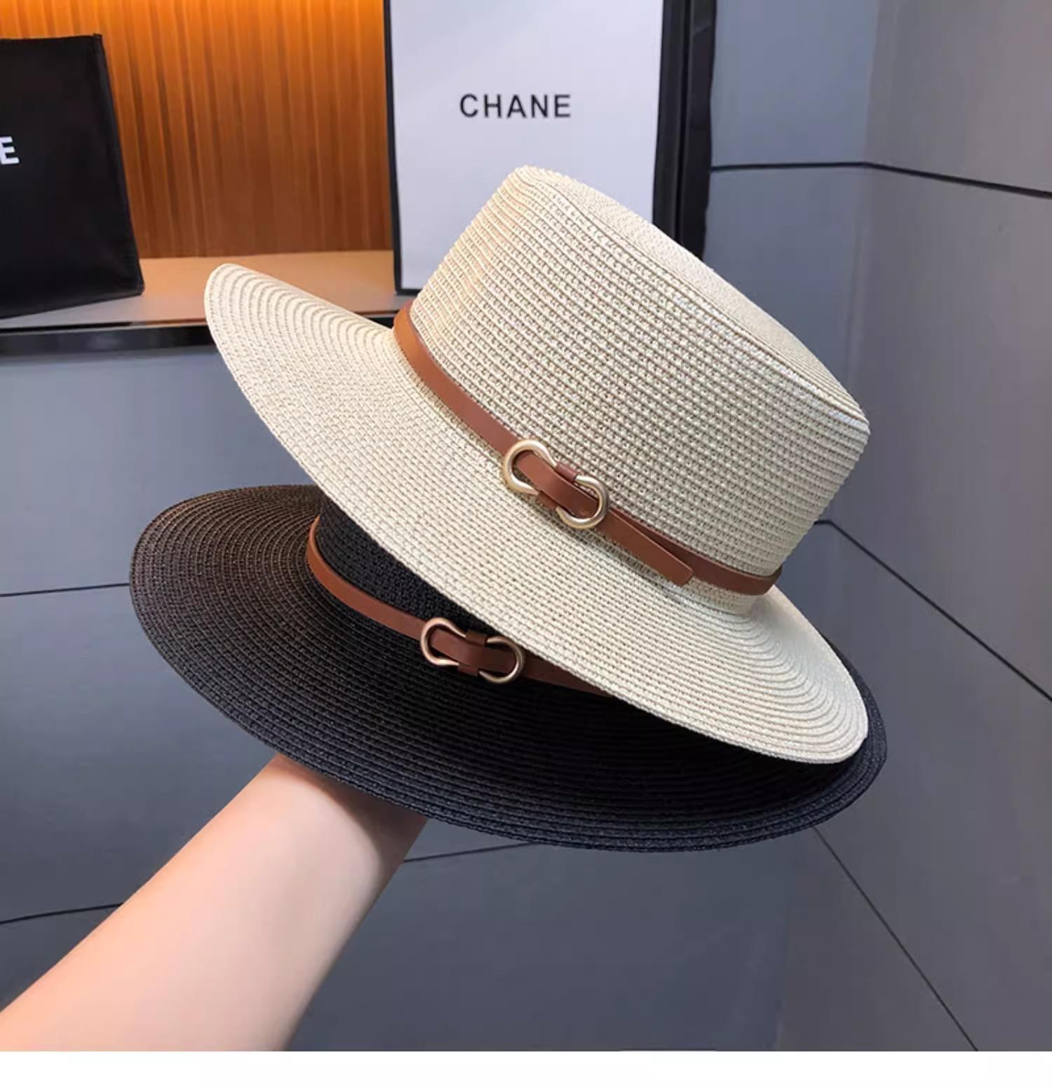 Sombrero de Copa Plano Francés Verano Vacaciones Marinas Parasol Sombrero de Paja Protector Solar Que Muestra la Cara Pequeño Temperamento Sombrero para el Sol Niños
