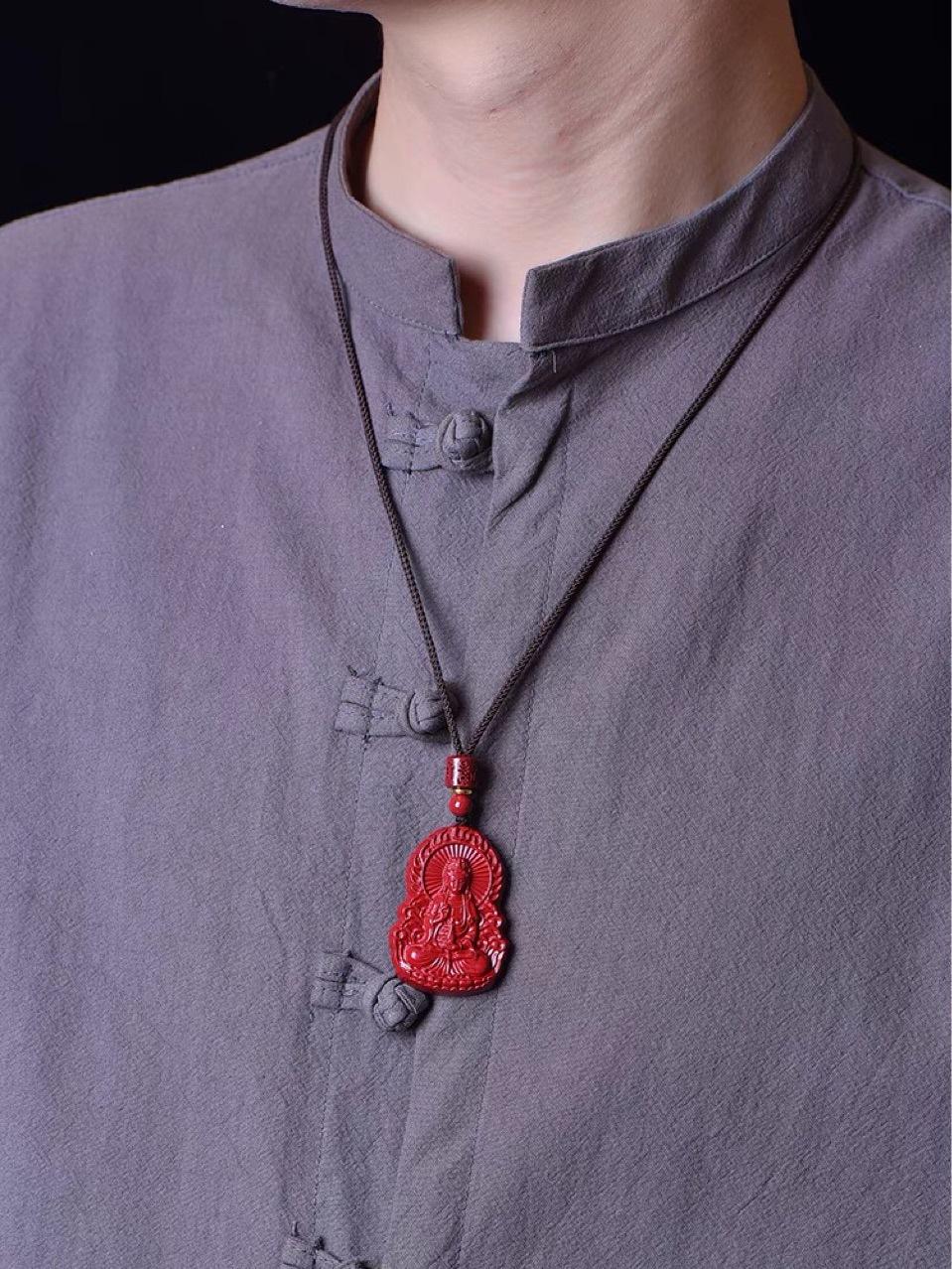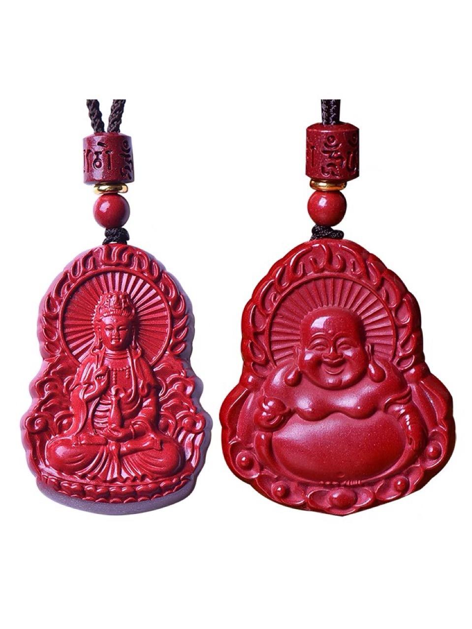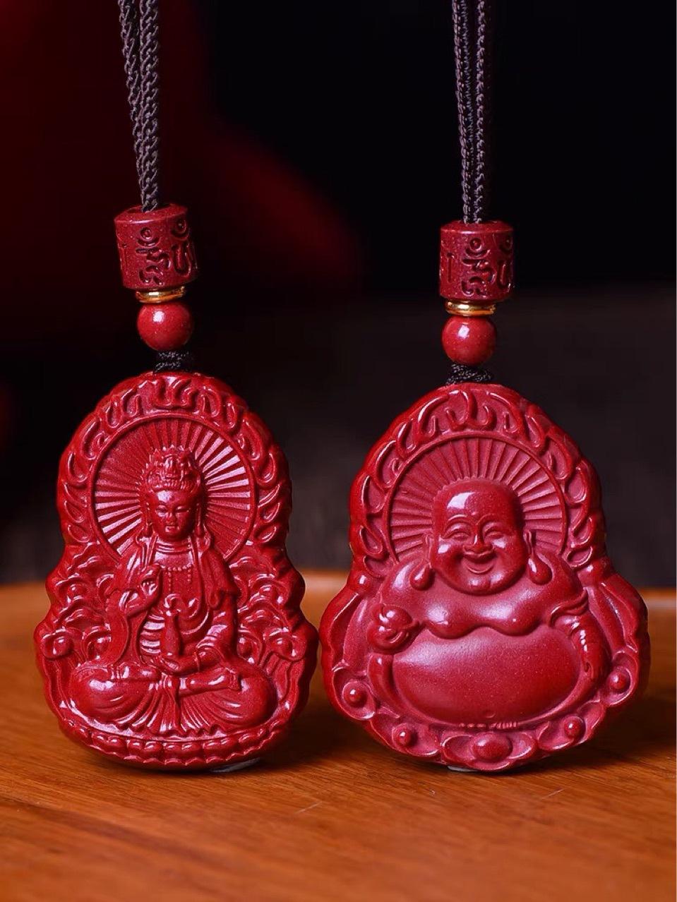Colgante de Buda de Cinabrio de Alto Contenido, Collar de Guanyin de Arena Dorada Púrpura, Adecuado Tanto para Hombres como para Mujeres, Bendición de Buda, Buda Maitreya, Estilo Étnico