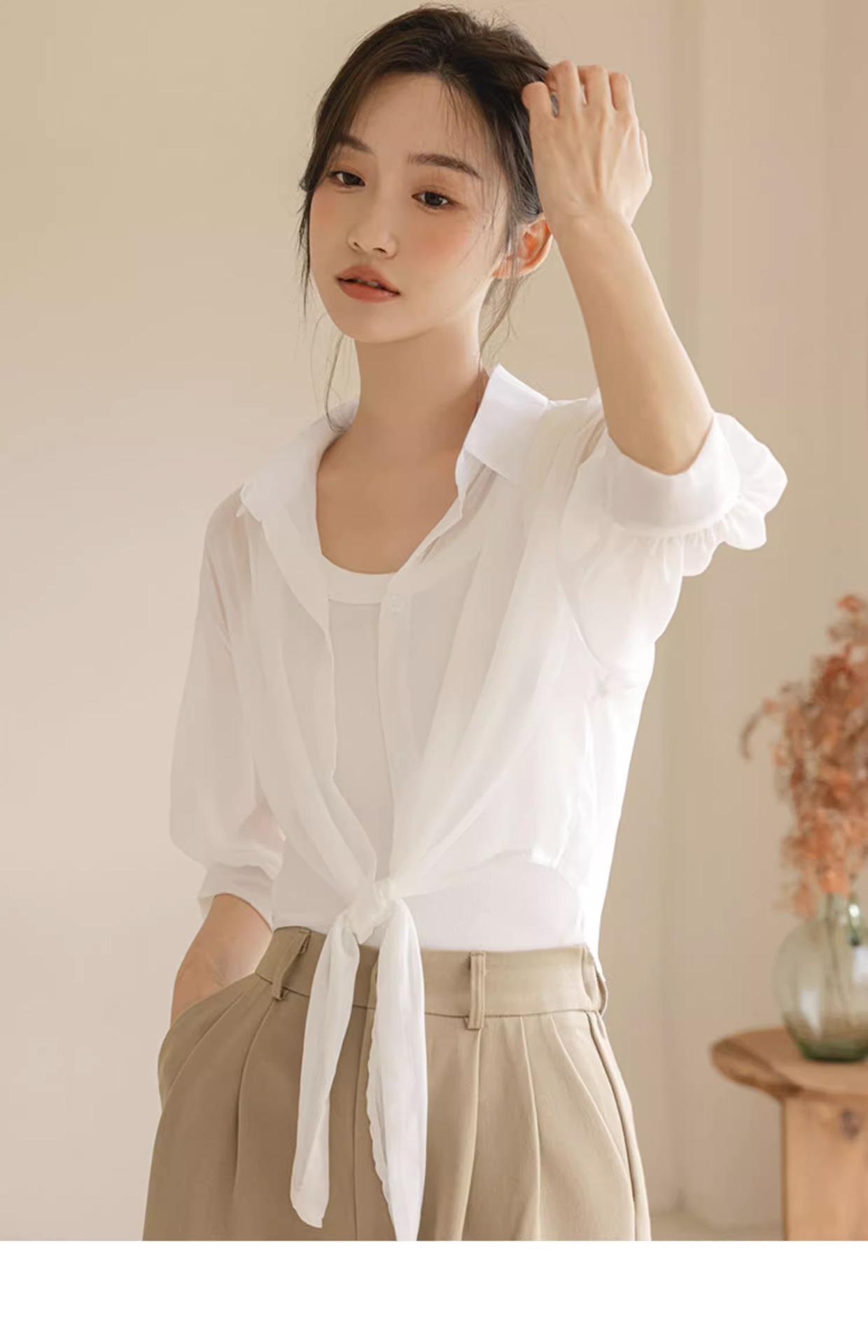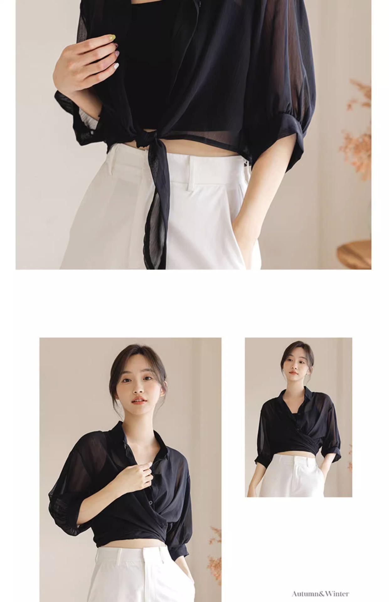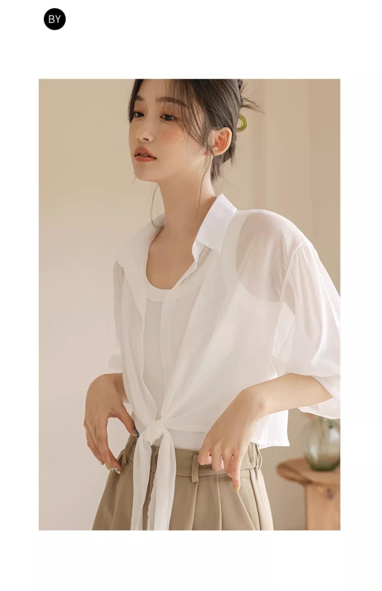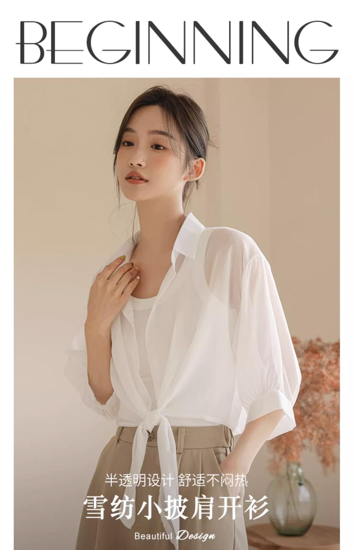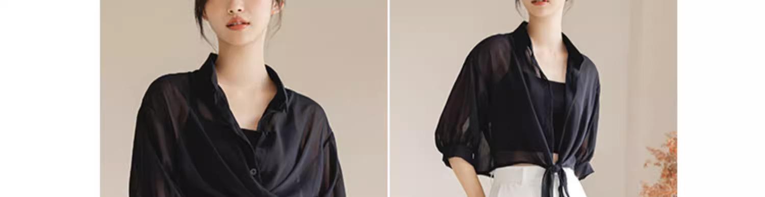 Falda de verano con chal pequeño, de gasa, con protector solar, para mujer, tipo cárdigan exterior corto y fino, con aire acondicionado y chaqueta tipo camisa.