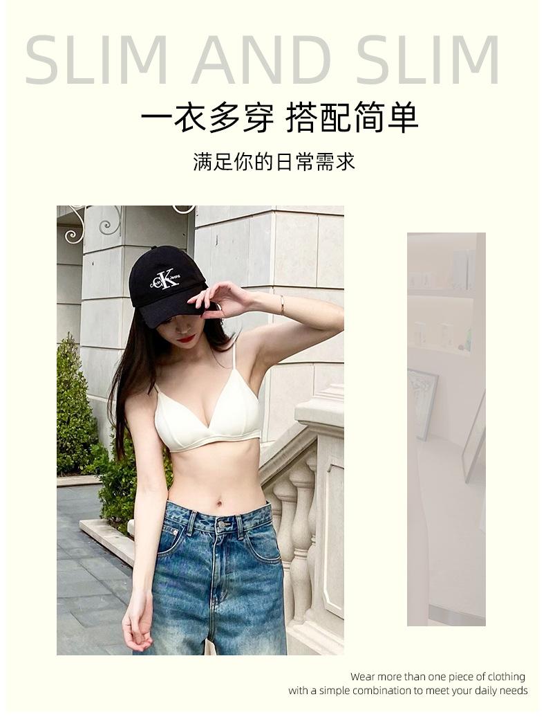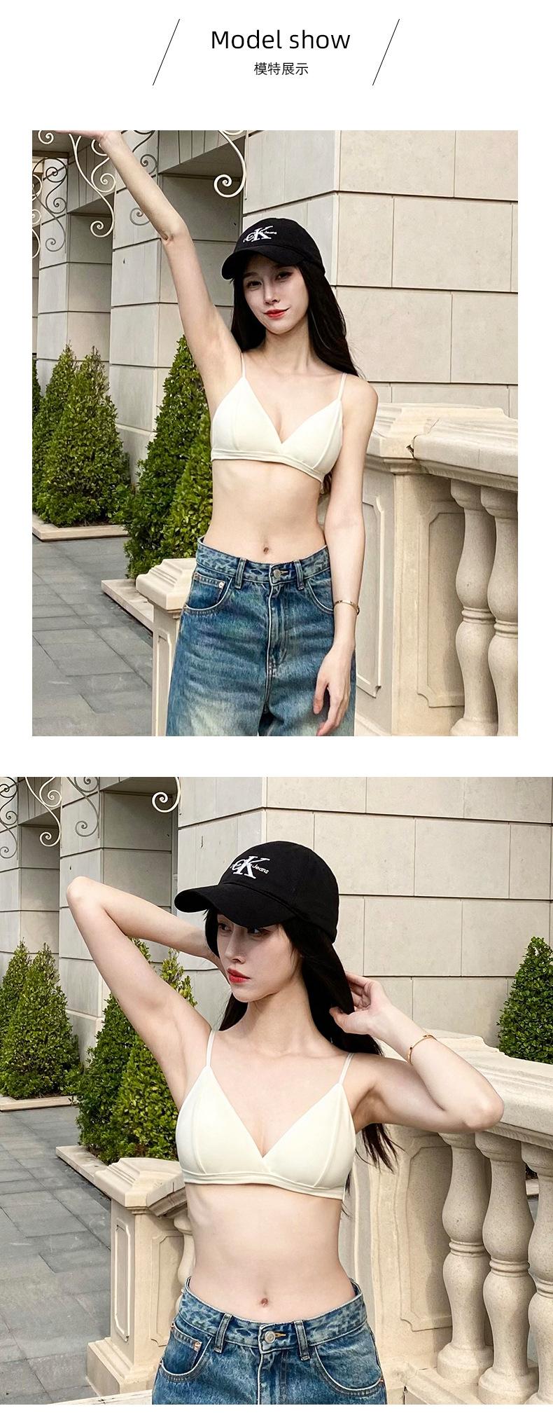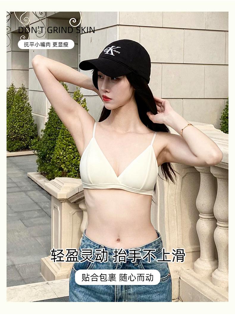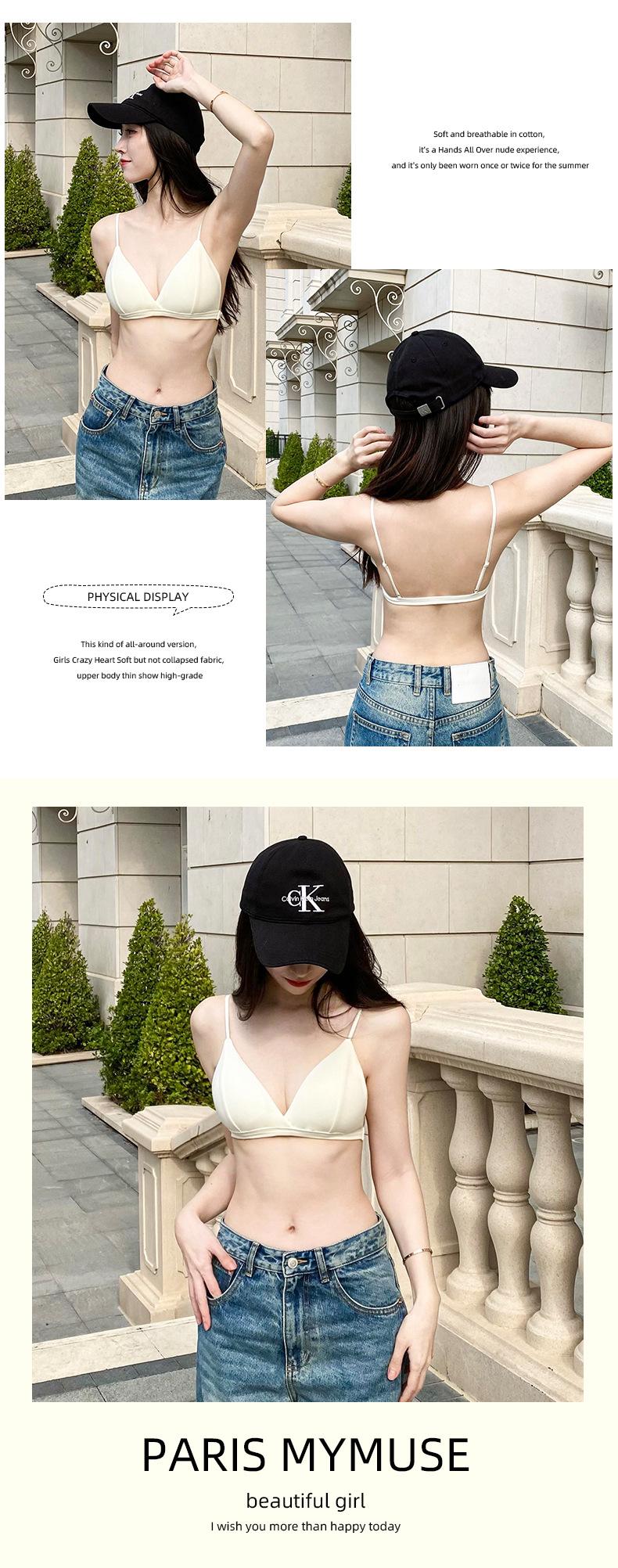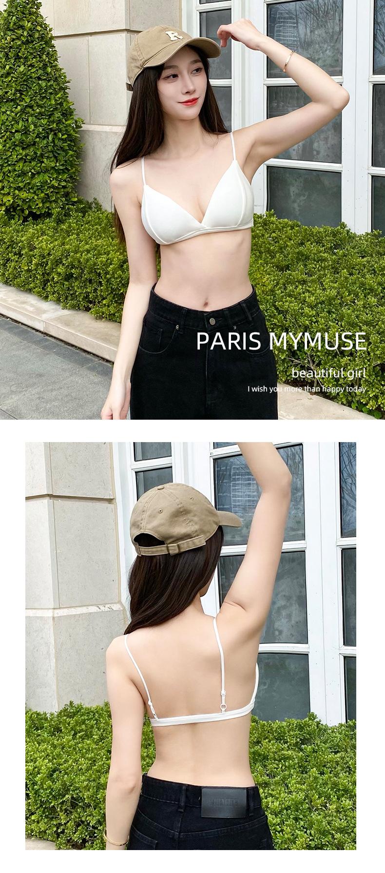 Nuevo estilo francés inalámbrico triángulo copa sling chica sexy ropa interior estilo estudiante delgada correa de hombro belleza espalda popular europeo y americano