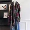 Bufanda de cachemir de imitación a cuadros con borlas largas para mujer, chal informal, combinable, grueso y cálido, para estudiantes, otoño e invierno, nueva