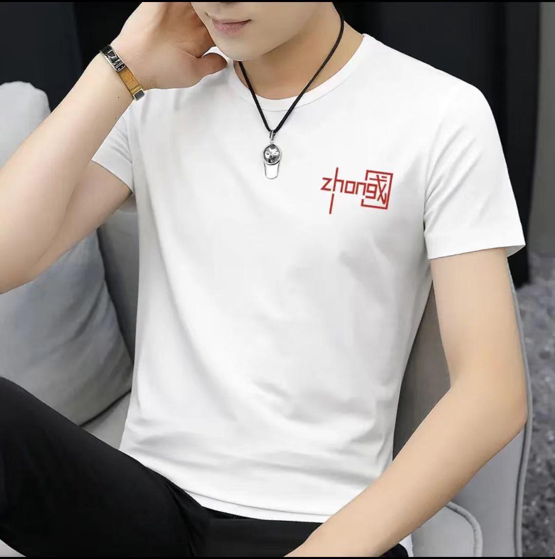 Camiseta de algodón de manga corta para hombre, nueva camiseta de verano con cuello redondo, ropa para hombre moderna, camisa de fondo para hombre, color sólido pesado, media manga