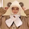 Sombrero bufanda de oso de peluche para mujer 2023 nuevo invierno guantes bufanda con capucha para montar dos piezas cálido