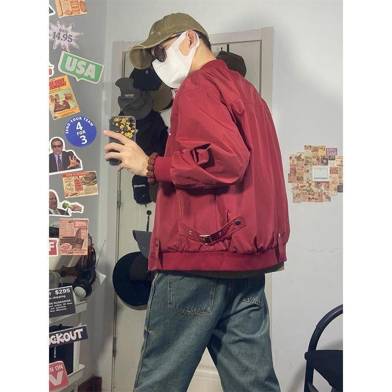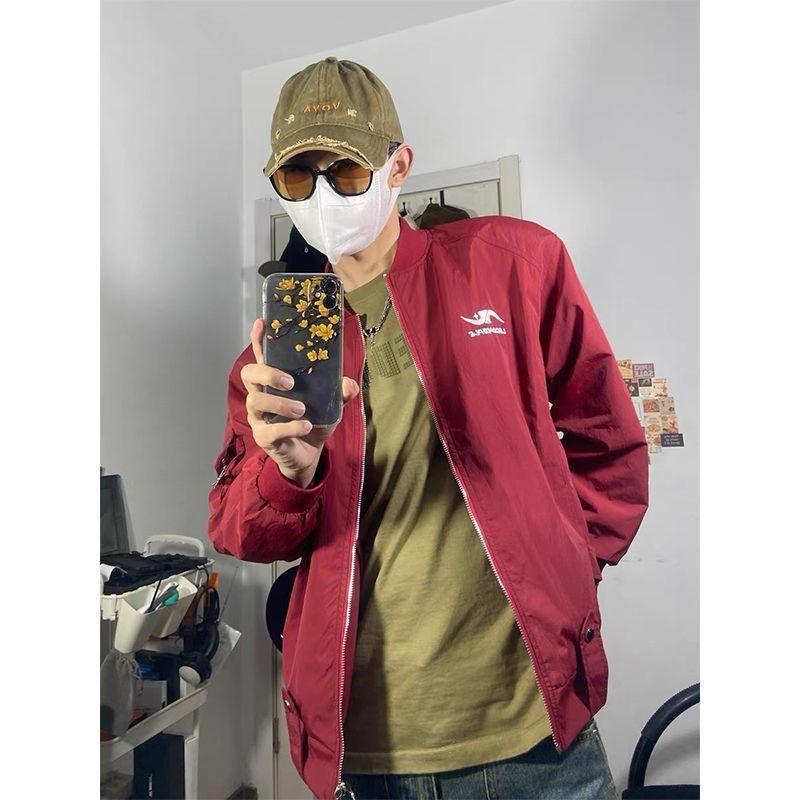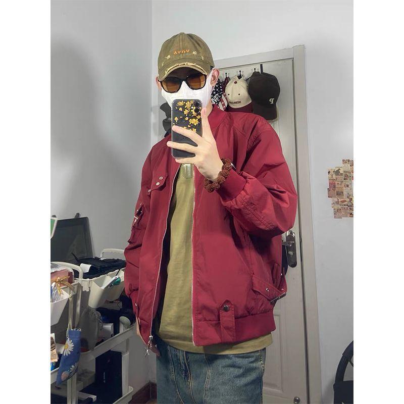 Uniforme de Béisbol Rojo Vintage Chaqueta Americana Retro Vibe High Street para Hombre Primavera y Otoño Chaqueta Bomber Trendy