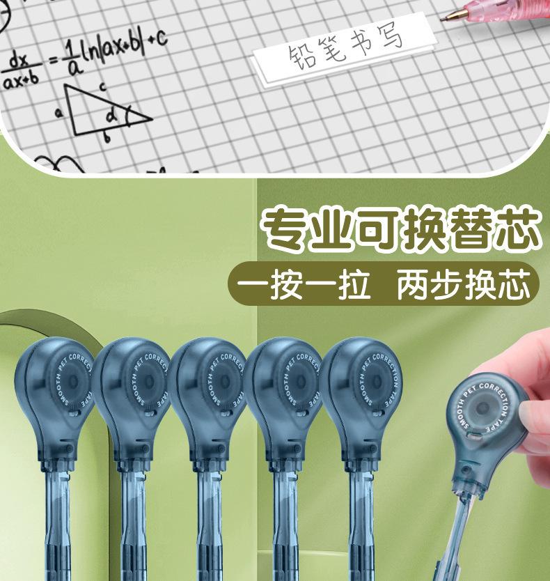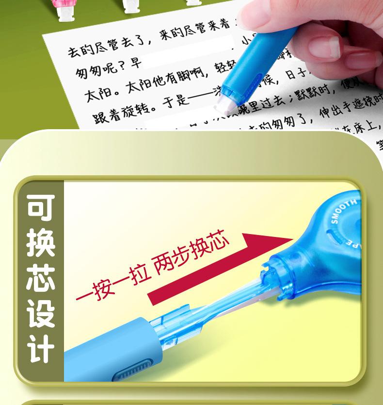 Cinta correctora LePasheng 9189 para estudiantes de primaria, con núcleo reemplazable y forma de bolígrafo.
