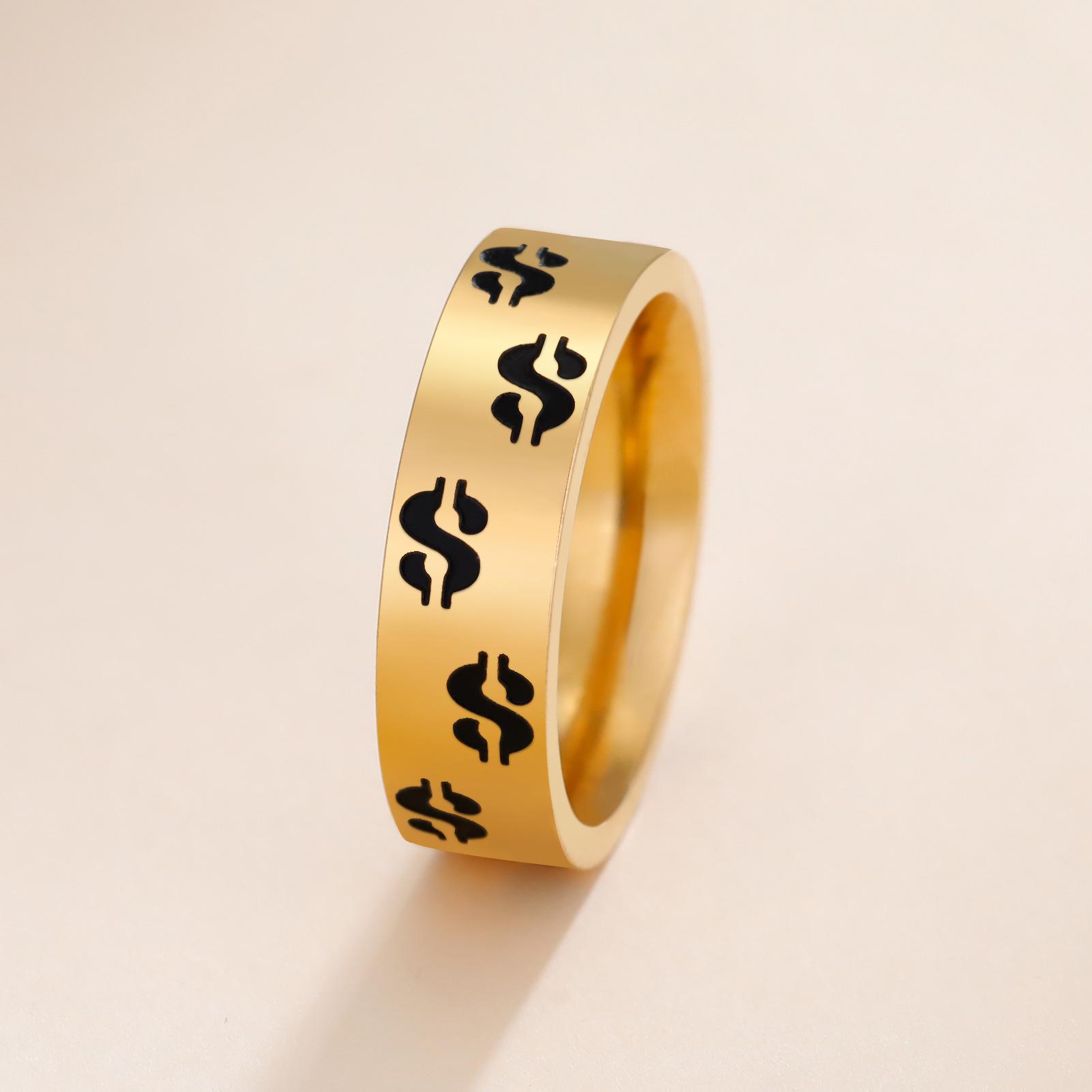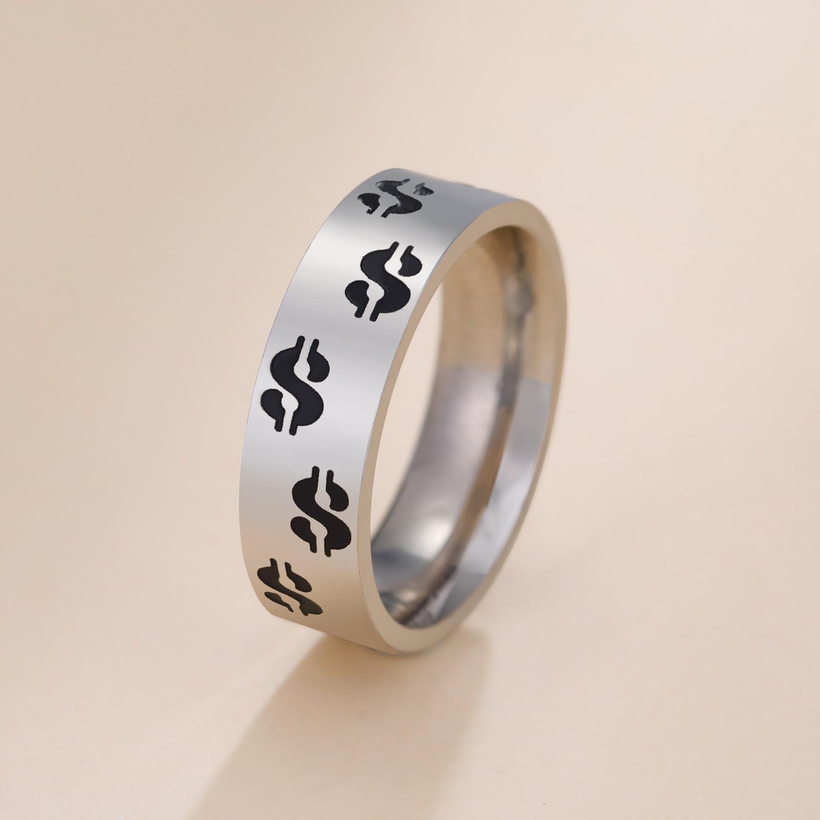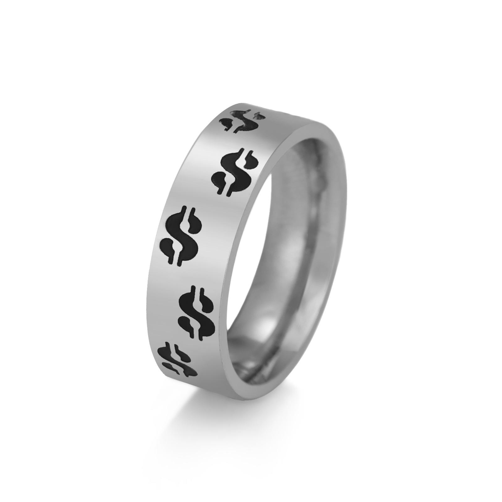 Fabricante de origen Europeo y Americano Más vendido Personalizado Hip-Hop Acero Inoxidable Negro Símbolo del Dólar Anillo para Hombre 6 mm de Ancho
