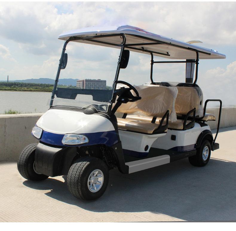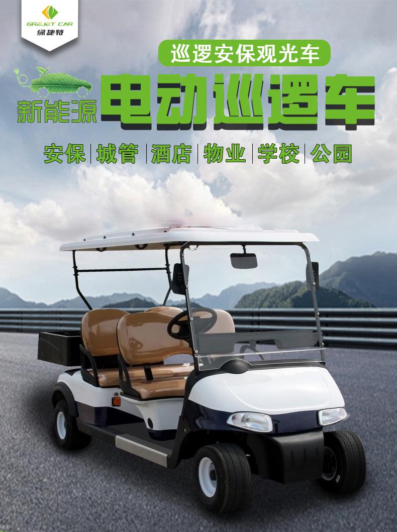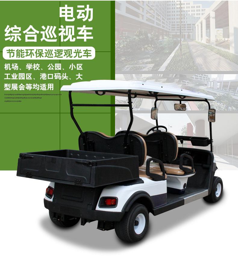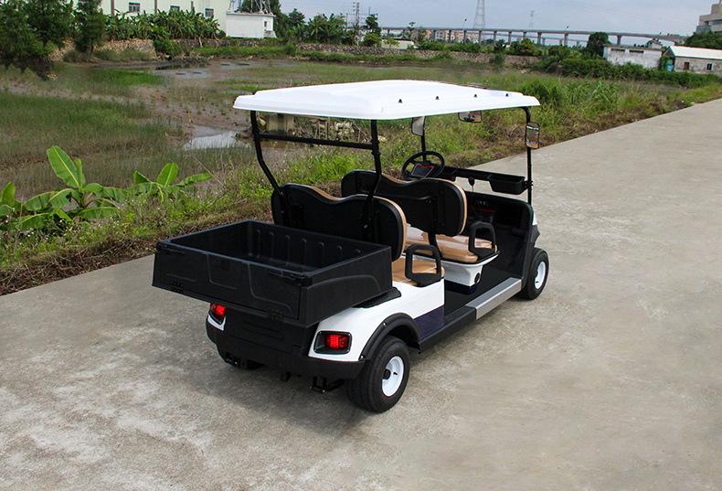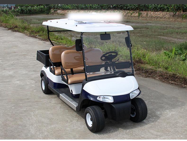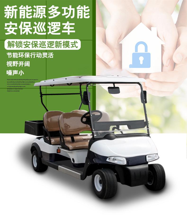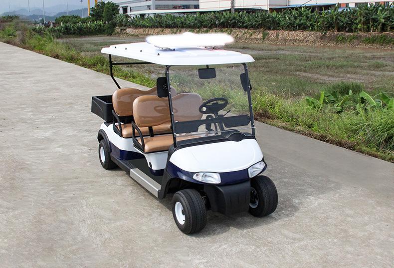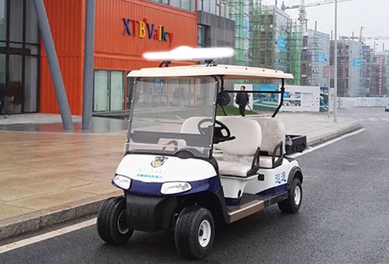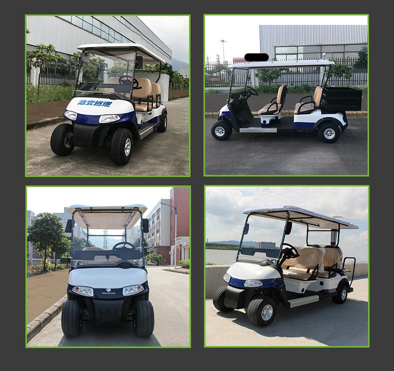 Coche de golf eléctrico de cuatro ruedas. Coche patrulla. Zona escénica. Propiedad. Coche patrulla de seguridad comunitaria. Fábrica. Patrulla escolar.