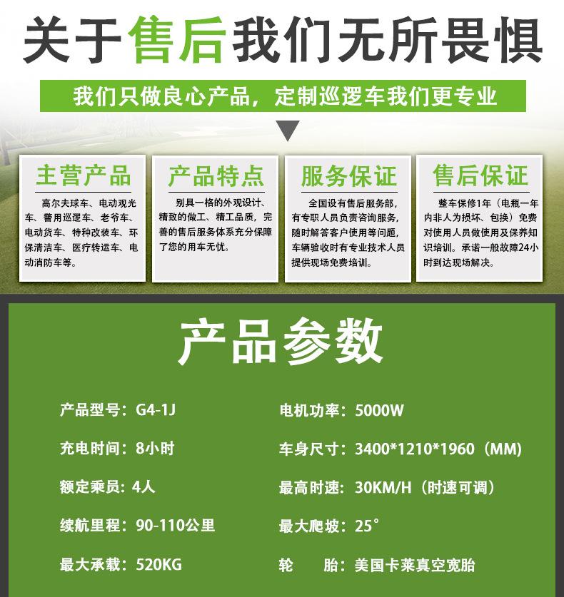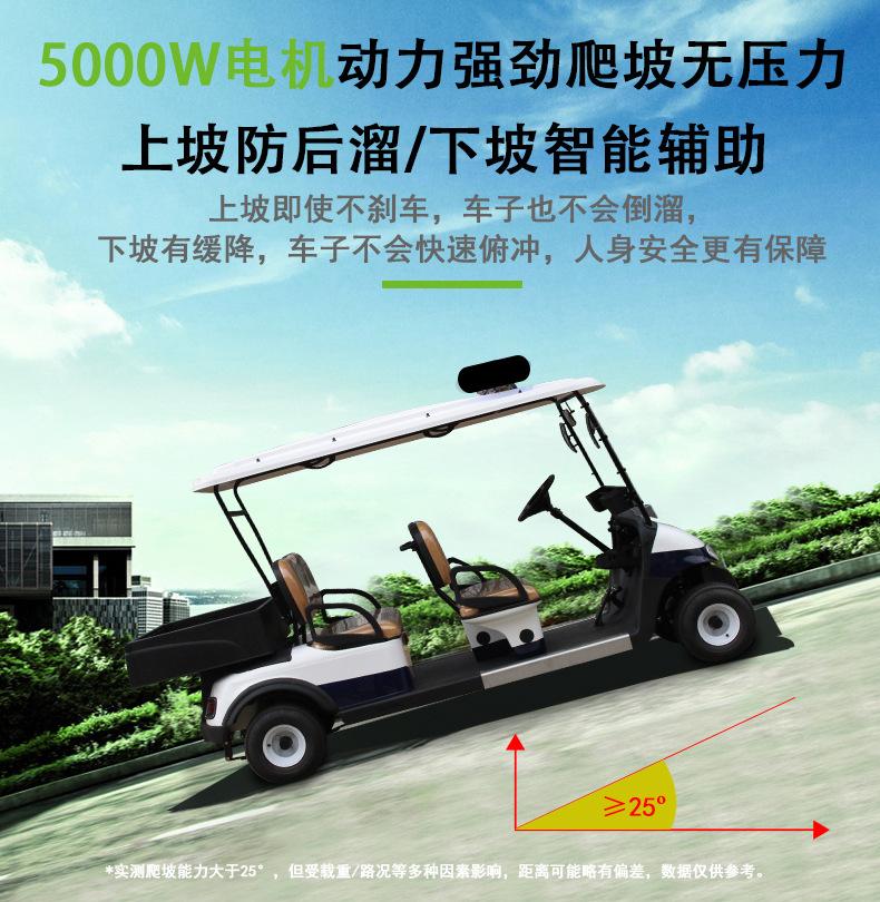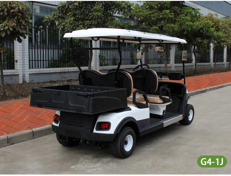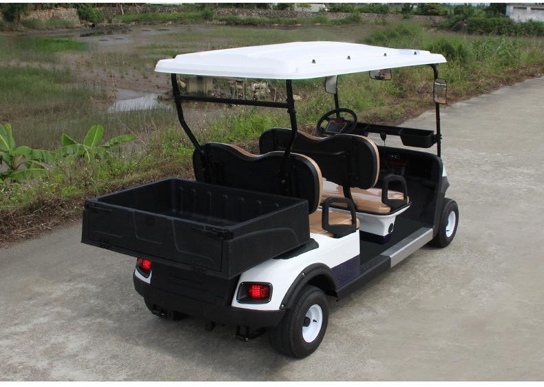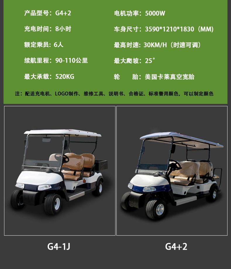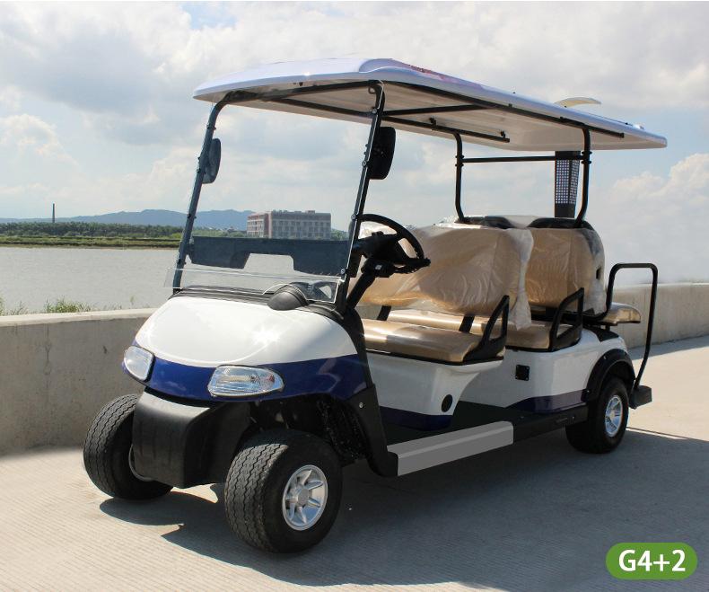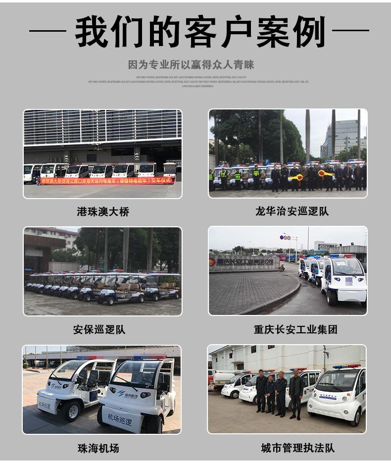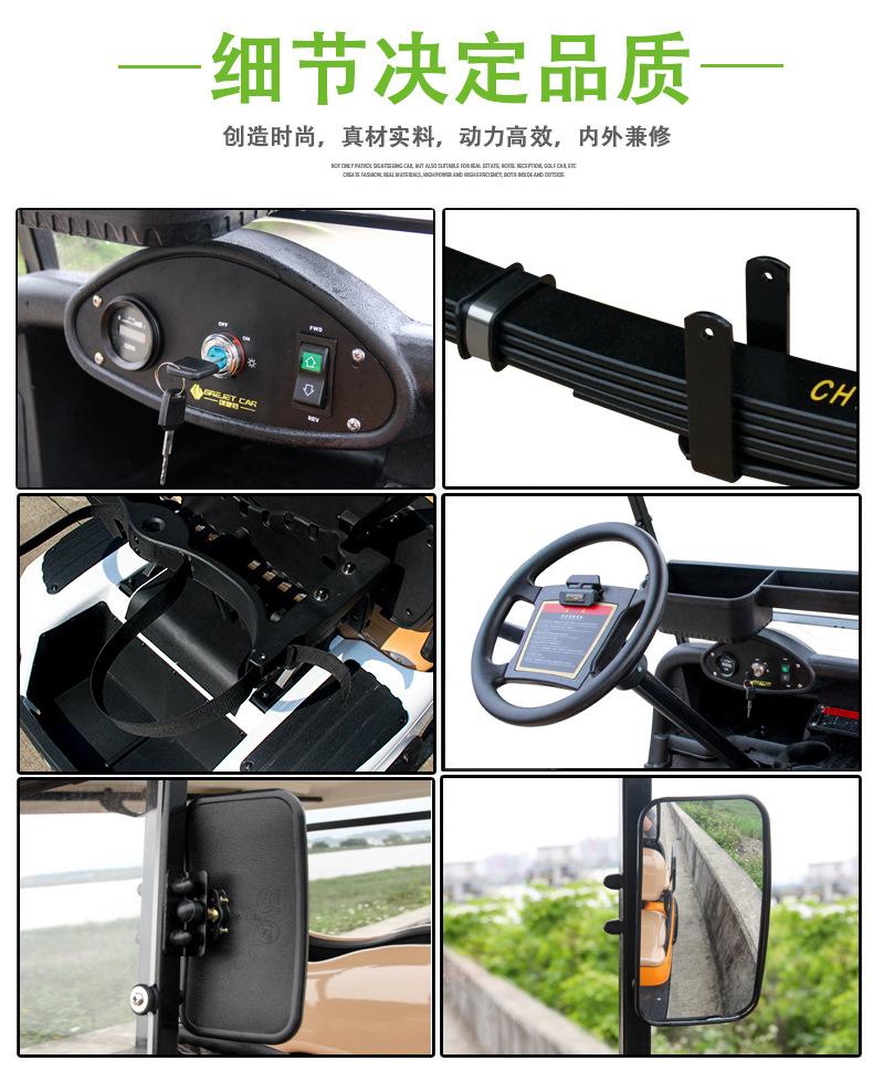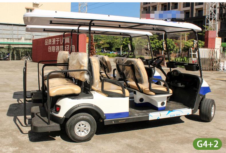 Coche de golf eléctrico de cuatro ruedas. Coche patrulla. Zona escénica. Propiedad. Coche patrulla de seguridad comunitaria. Fábrica. Patrulla escolar.