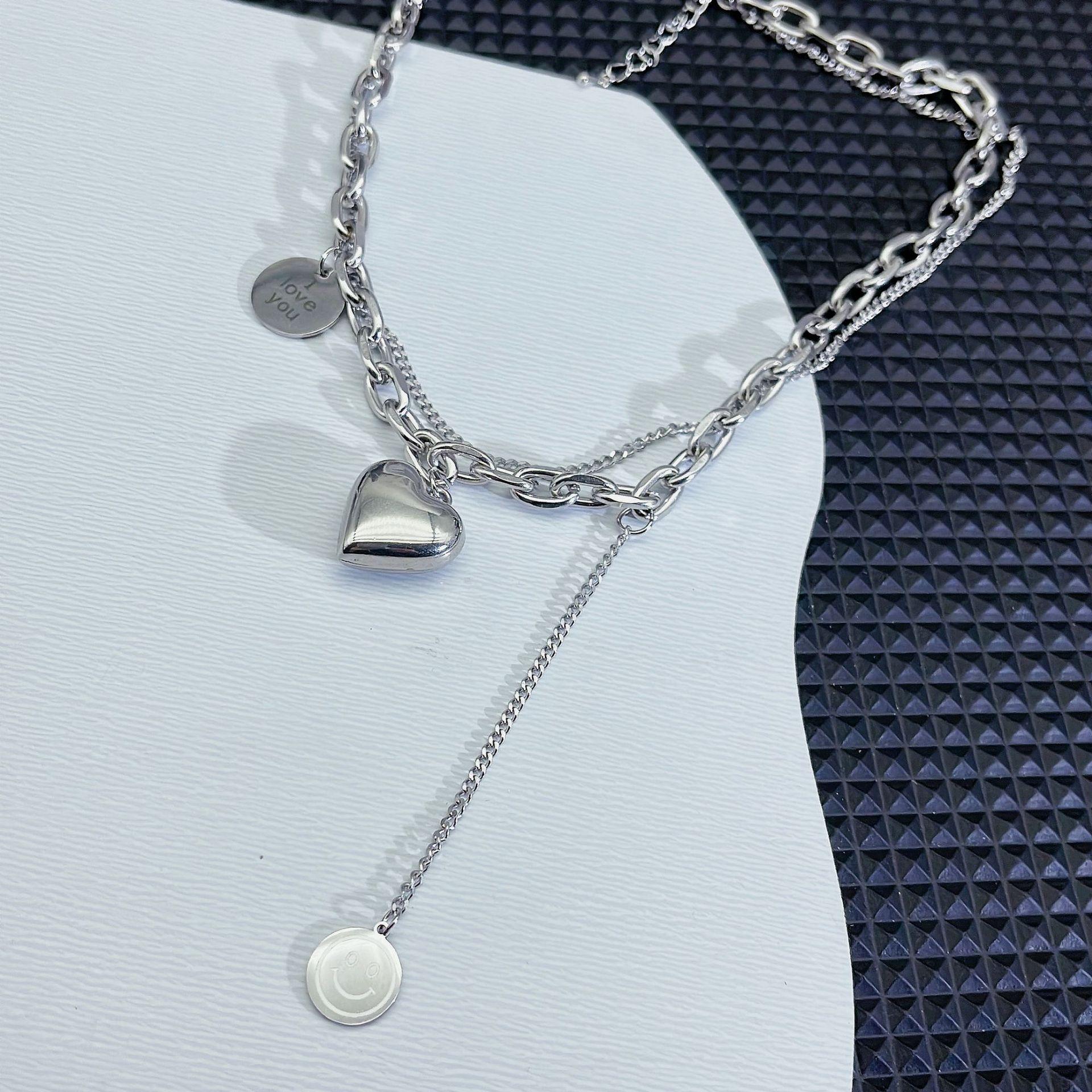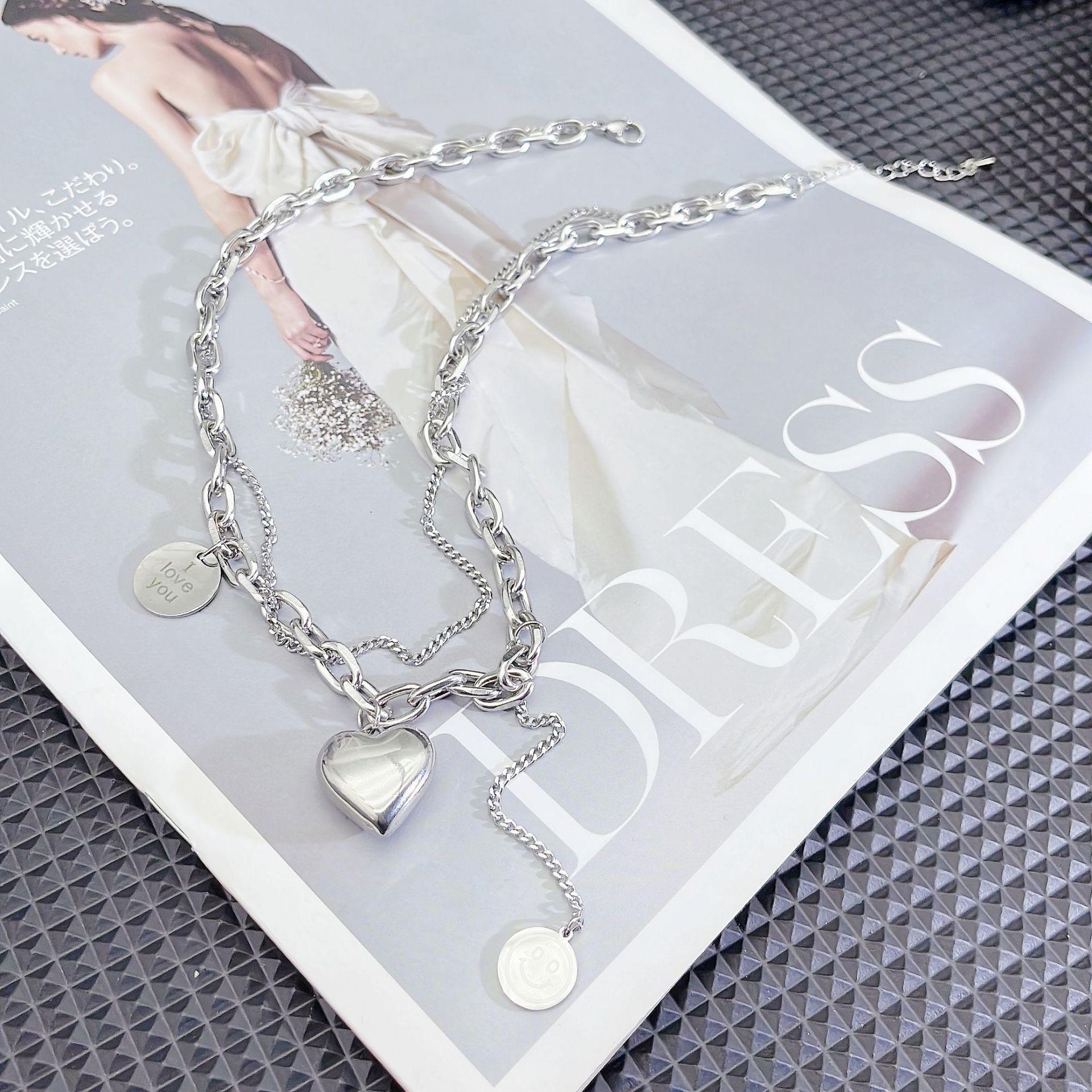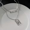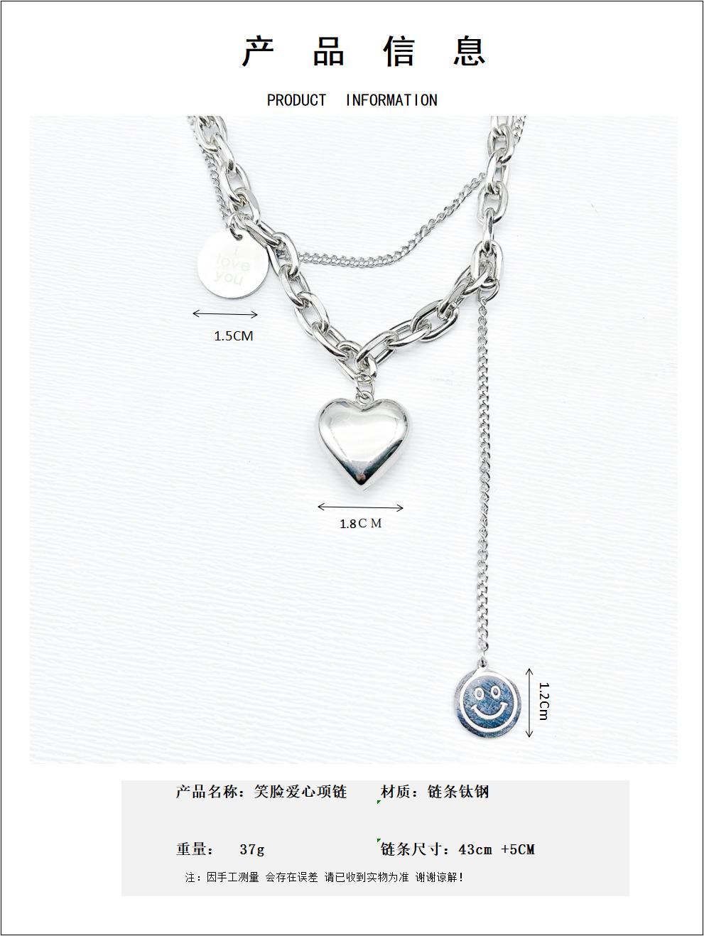 Collar de acero de titanio de doble capa para mujer, estilo hip-hop, combina con todo, cadena de suéter, colgante de cara sonriente de alta gama, accesorios de moda