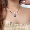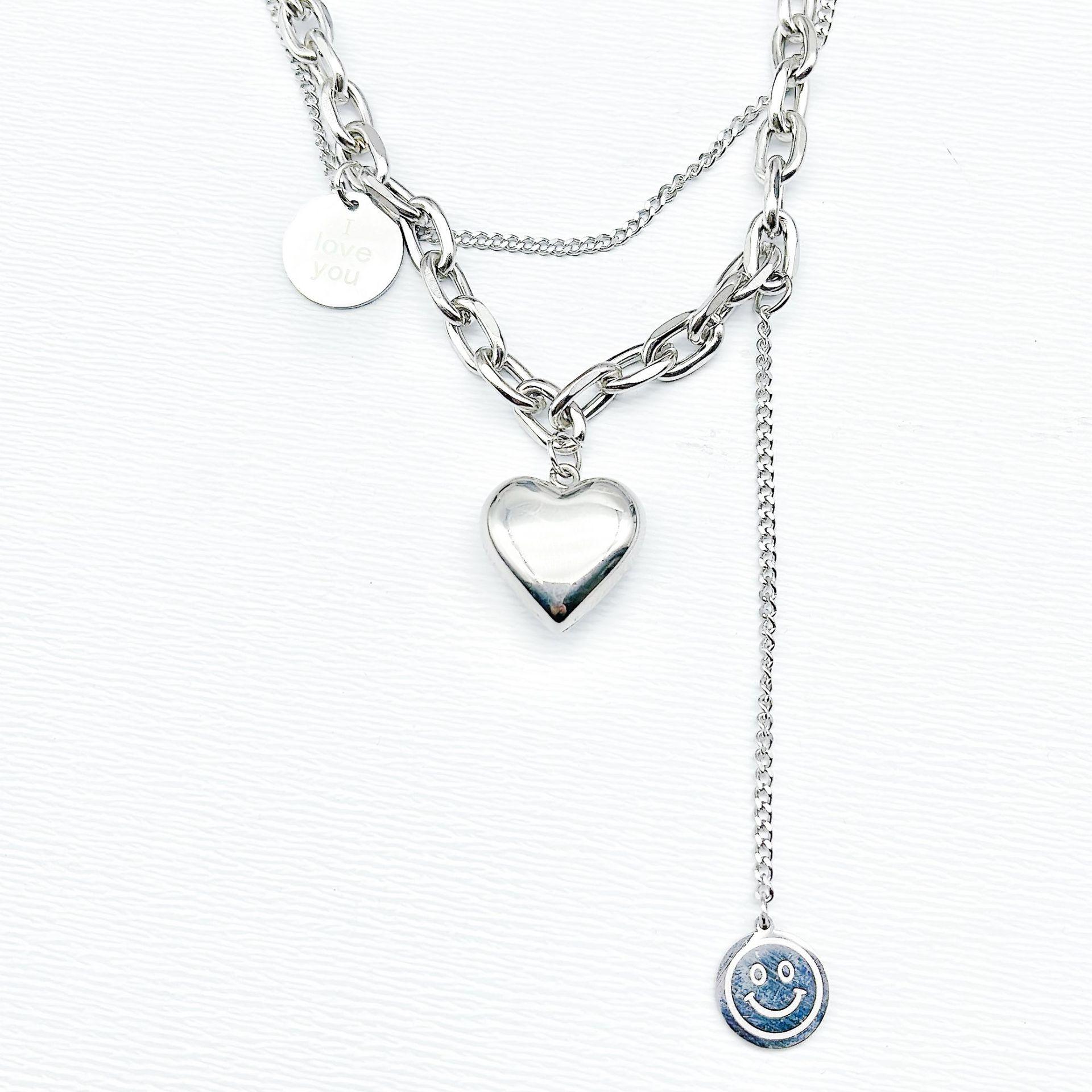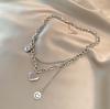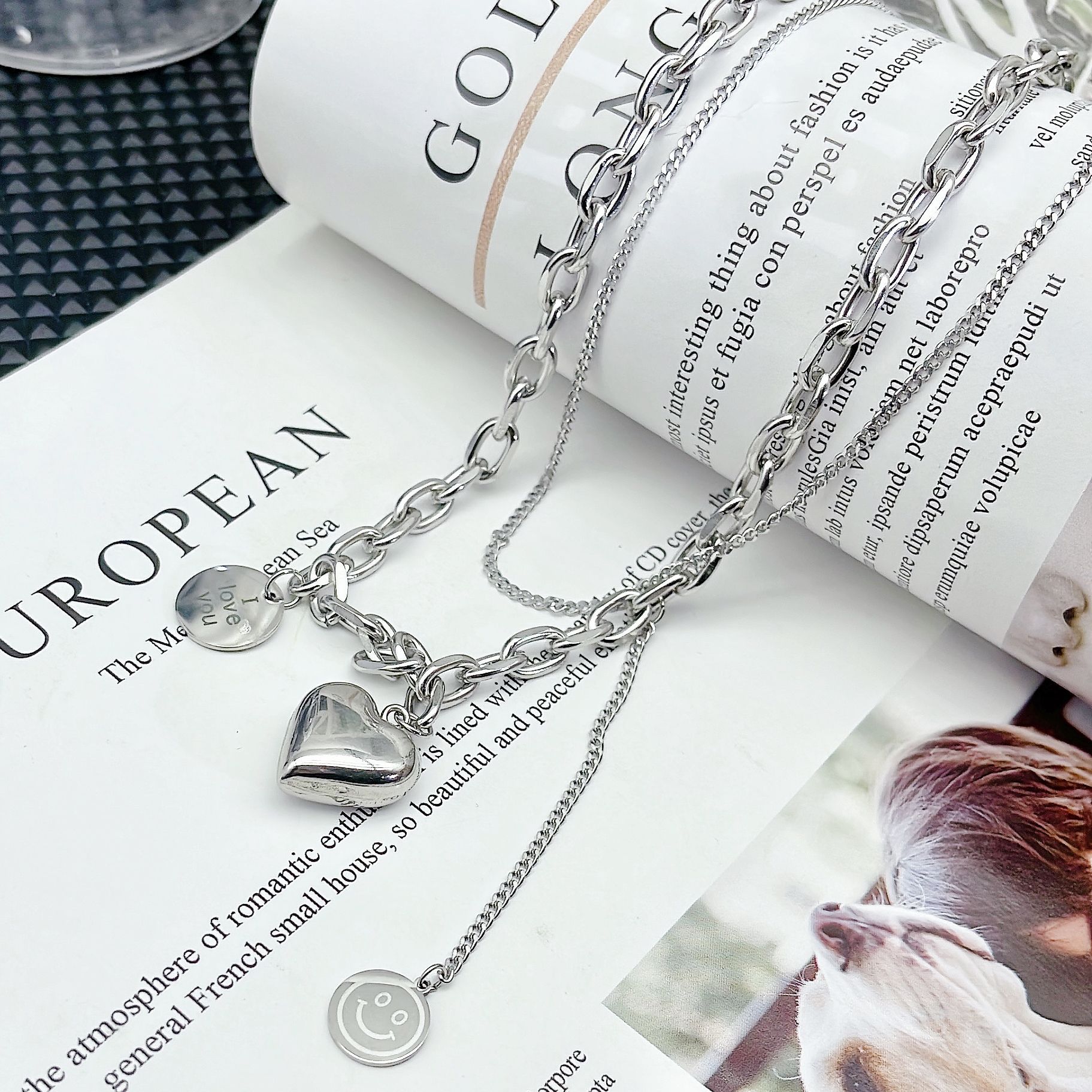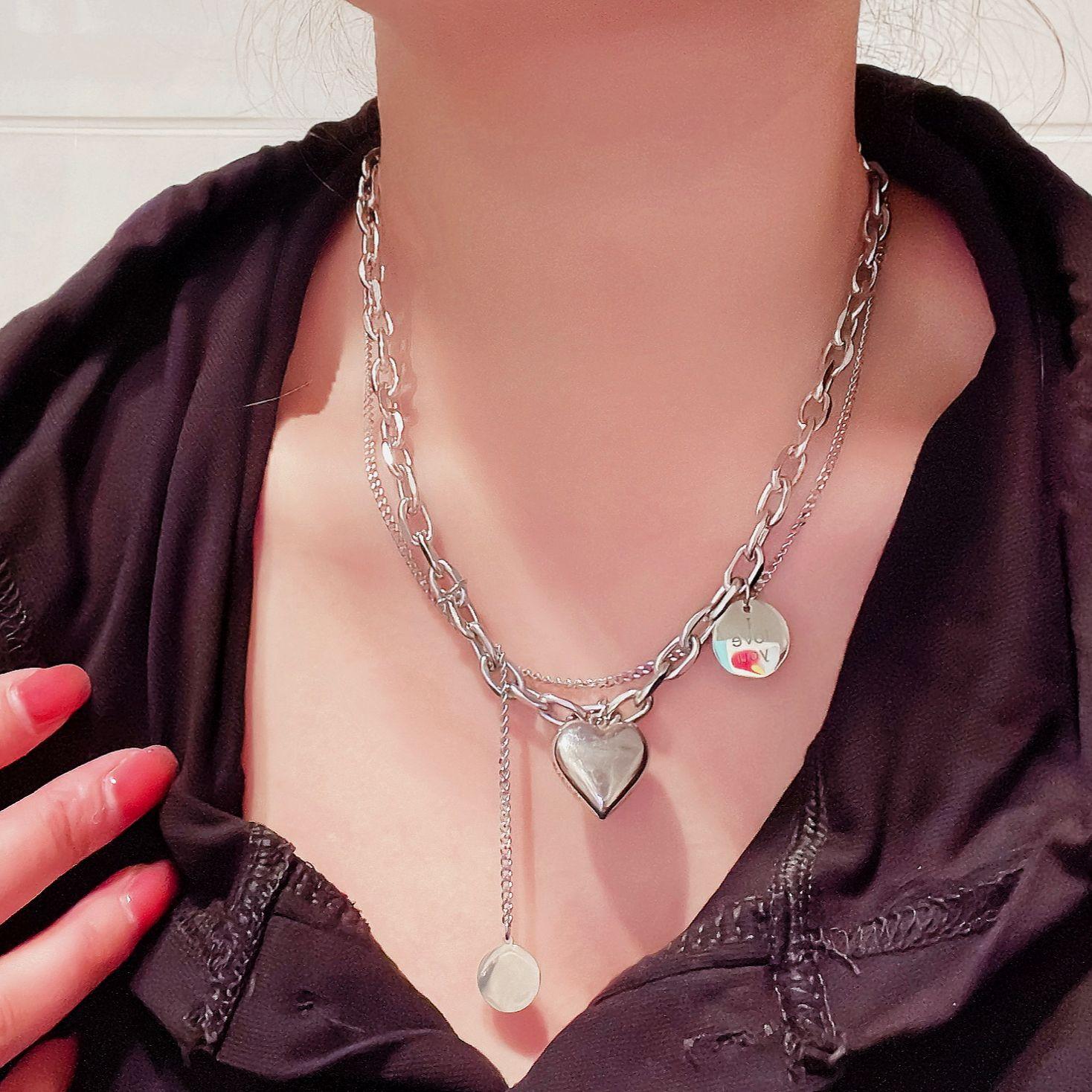 Collar de acero de titanio de doble capa para mujer, estilo hip-hop, combina con todo, cadena de suéter, colgante de cara sonriente de alta gama, accesorios de moda