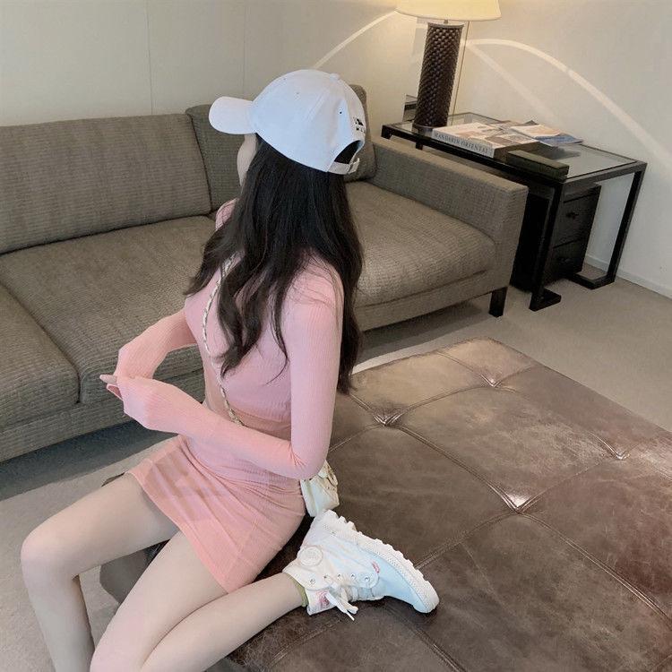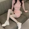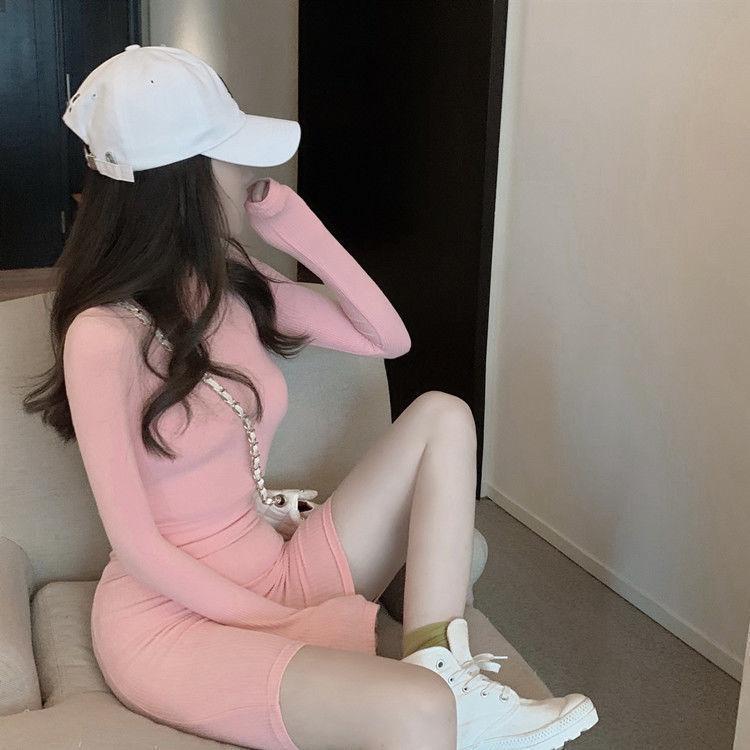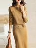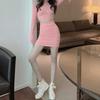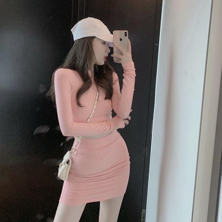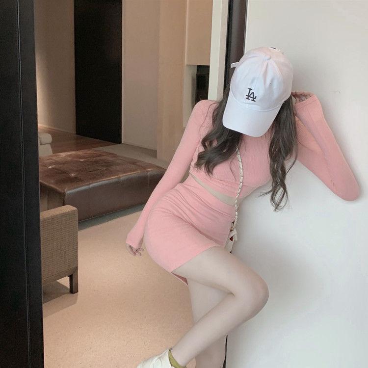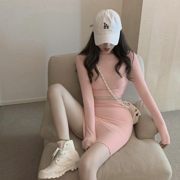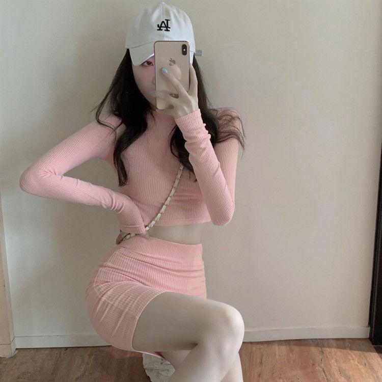 Traje de punto azul para mujer, primavera y otoño, conjunto de dos piezas de estilo occidental, top corto elegante, falda midi a la cadera, conjunto de dos piezas