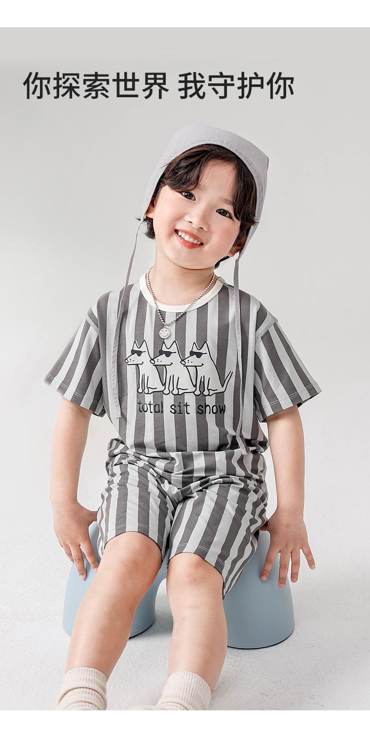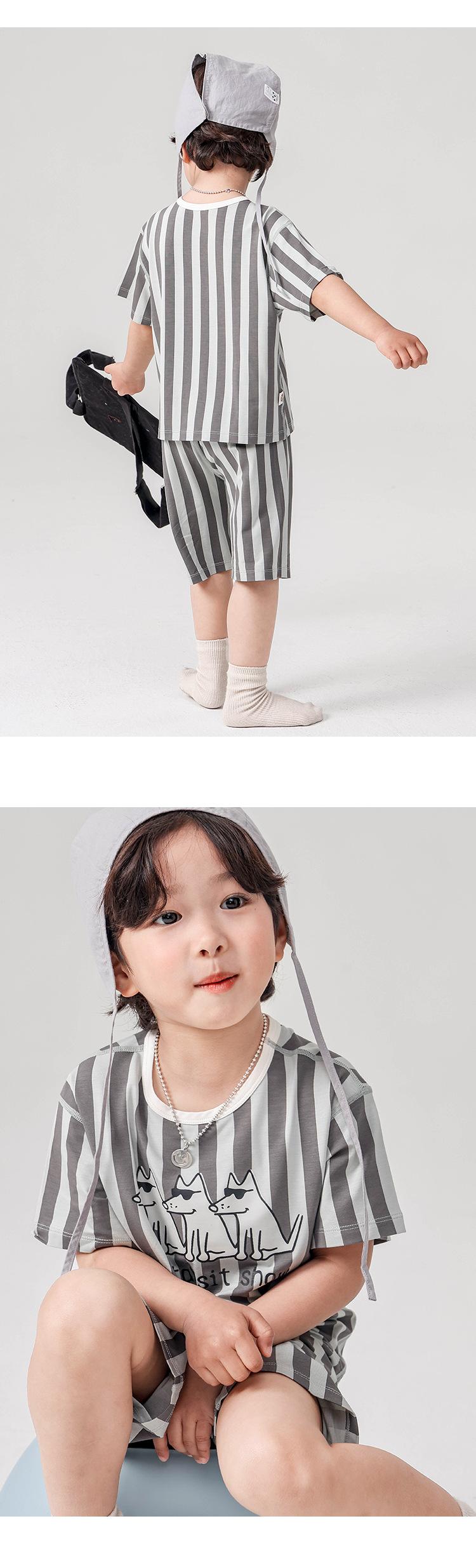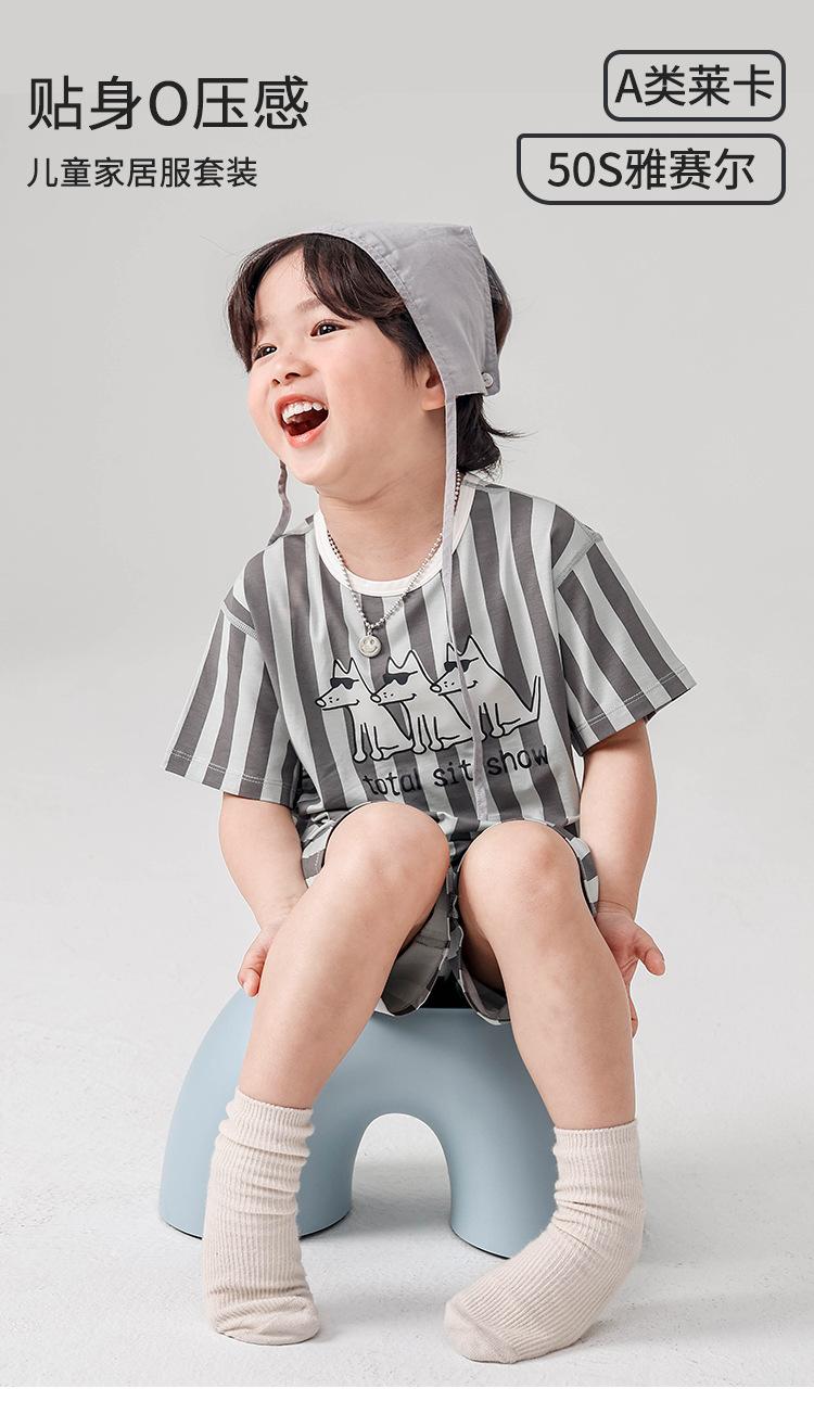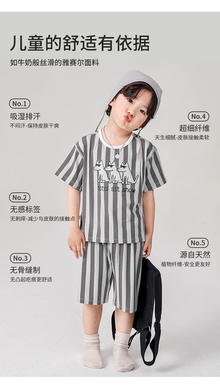 Pijama infantil sin hueso, conjunto de dos piezas, diseño ZYZ, verano, rayas finas, clase A, Yassel, ropa de hogar infantil