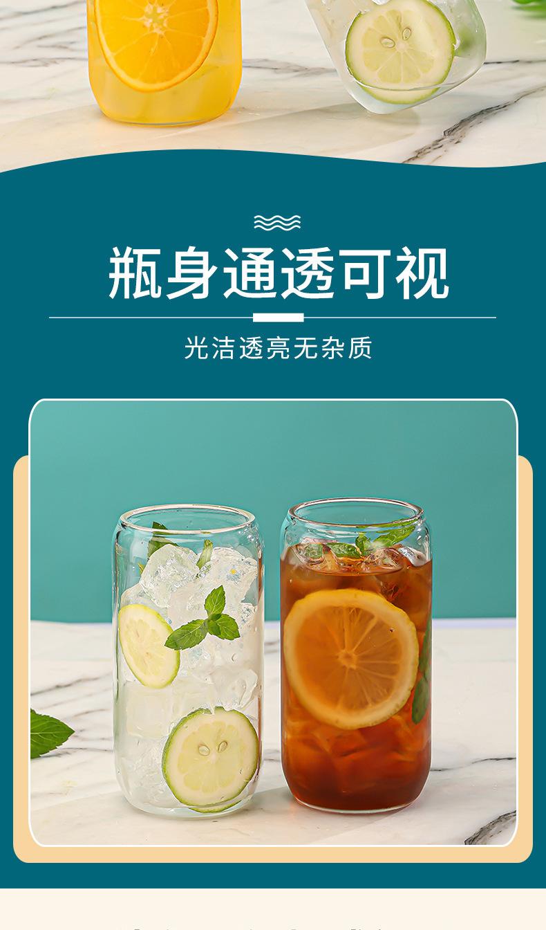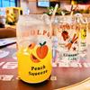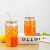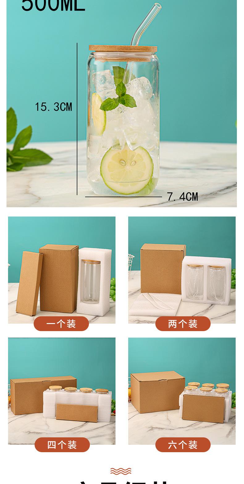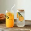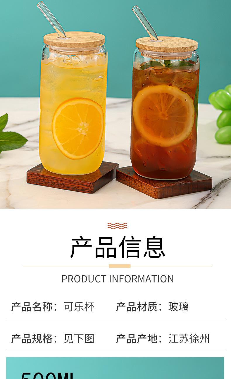 Vaso de vidrio de borosilicato con tapa de bambú, vaso para jugo con pajita, vaso de Coca-Cola de vidrio transparente de alta apariencia, estilo creativo ins