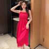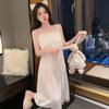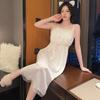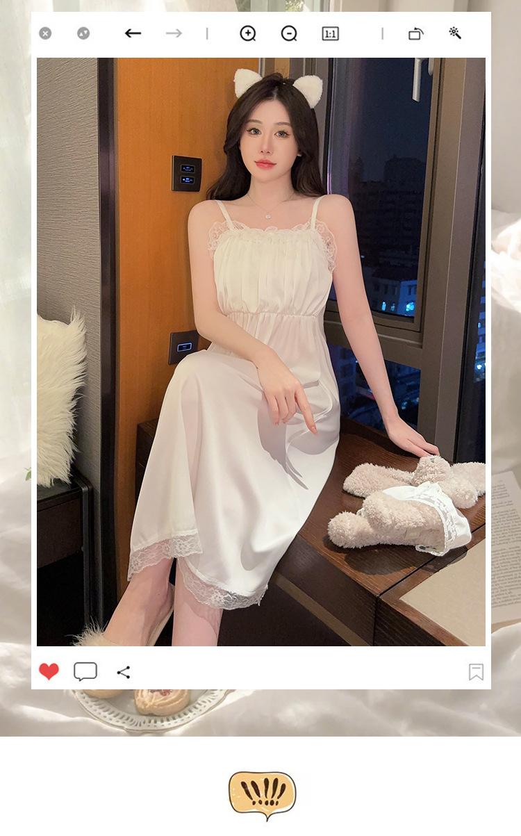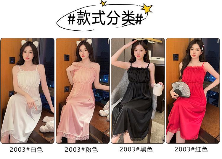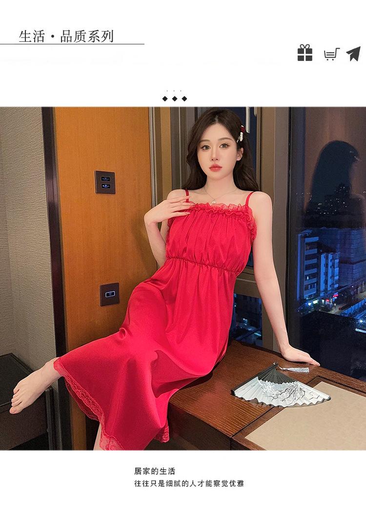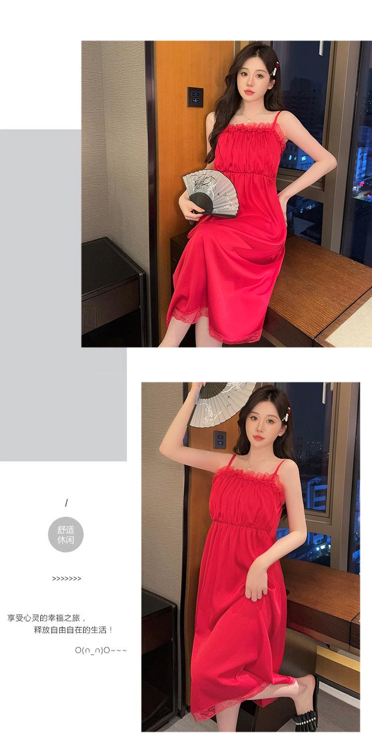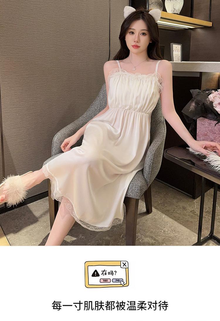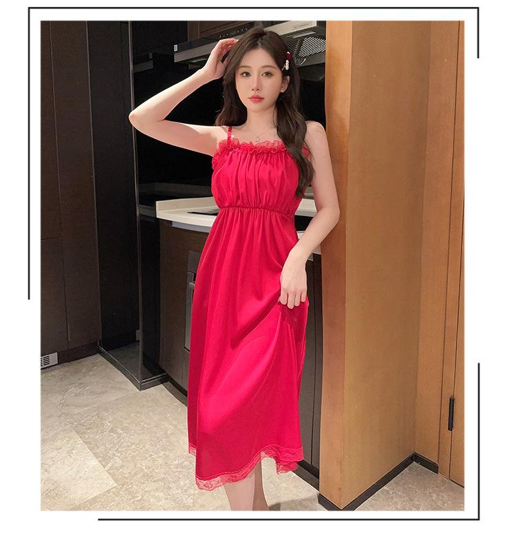 Camisón de verano 2024 para mujer, de seda fina con encaje de color liso, largo medio, holgado, para uso en casa