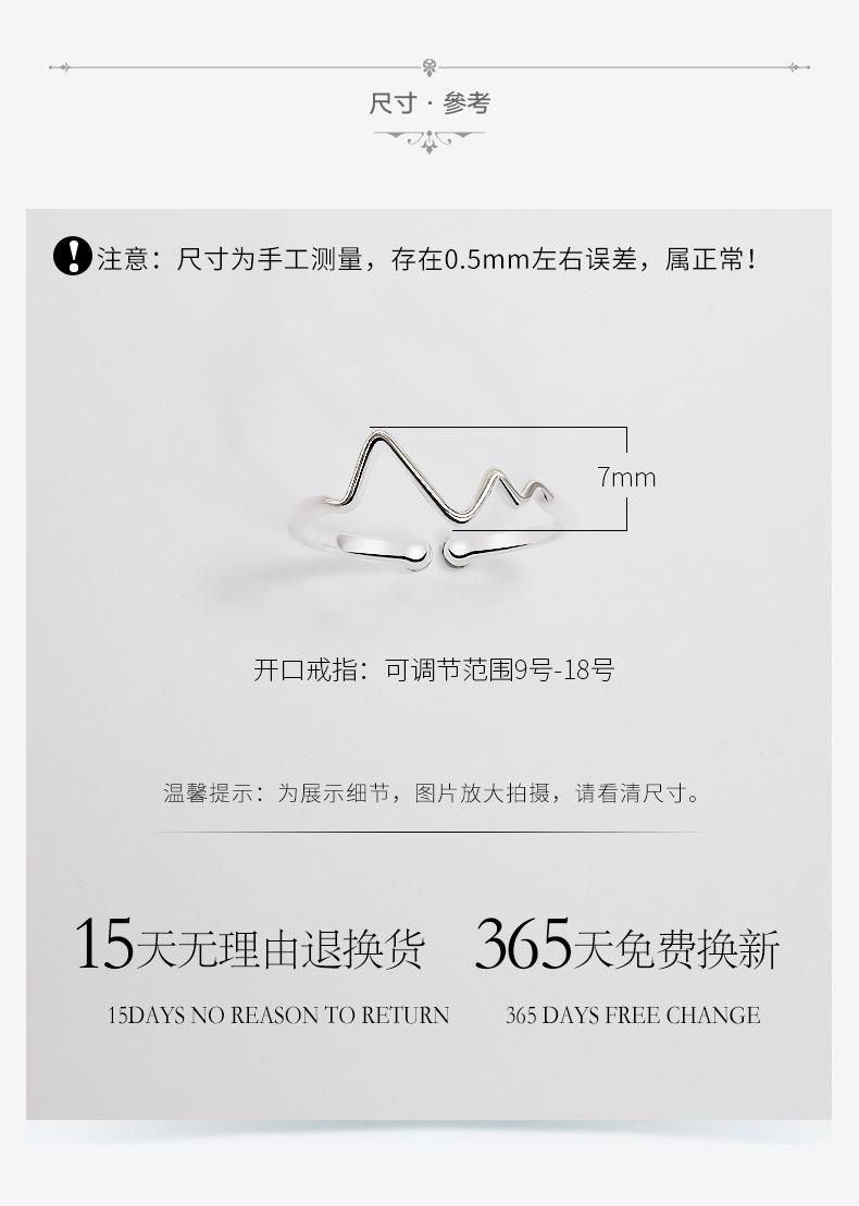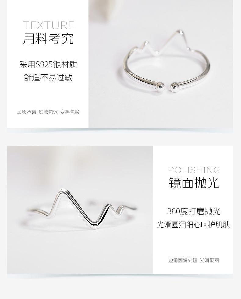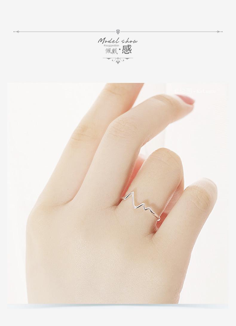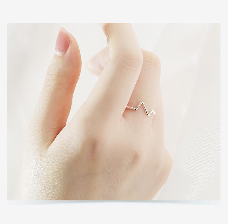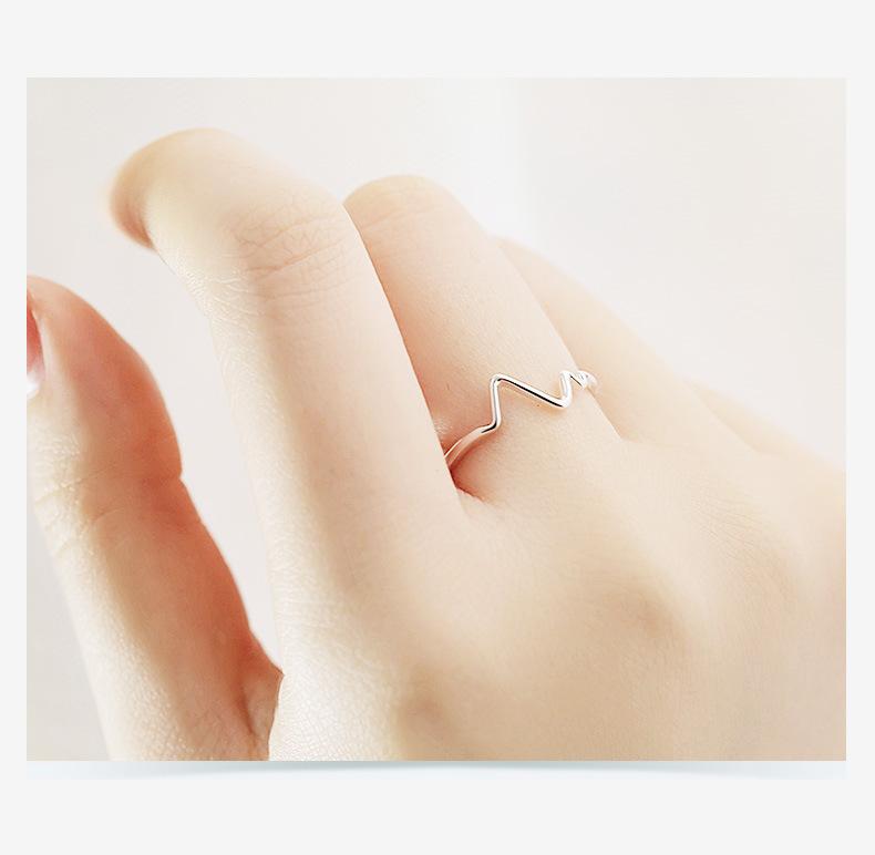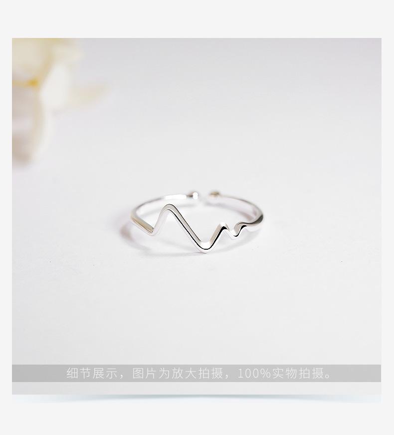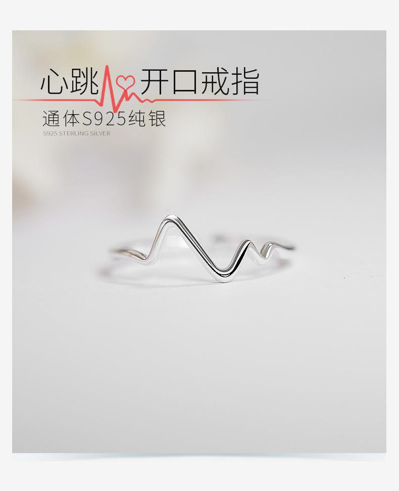 Anillo de Electrocardiograma K-Style de Plata S925 para Mujer Retro Simple Onda Curvado Geométrico Anillo Abierto Creativo Anillo para Dedo Índice