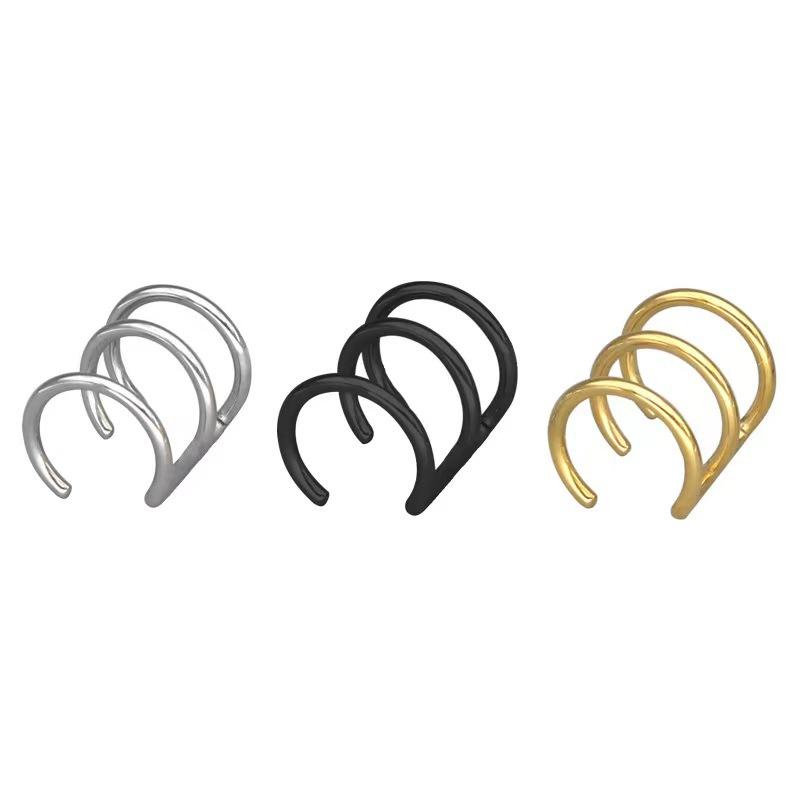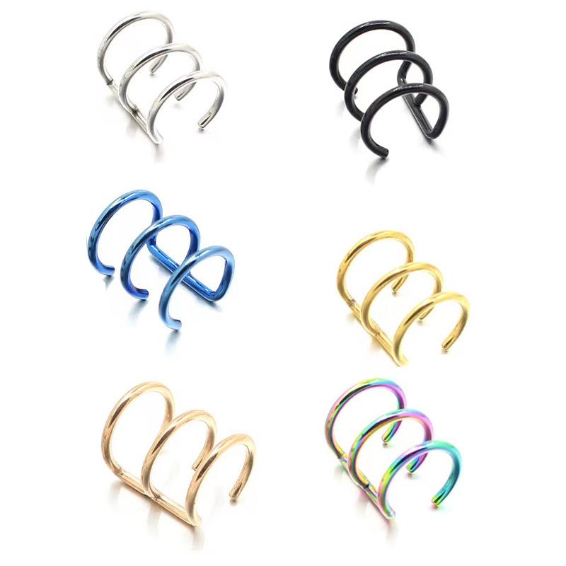 Venta al por mayor de pendientes de cartílago de acero inoxidable con doble C y clip para la oreja, estilo europeo y americano, con personalidad sencilla, con anillo doble en forma de U, clip para la nariz y el labio.