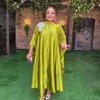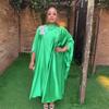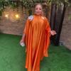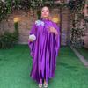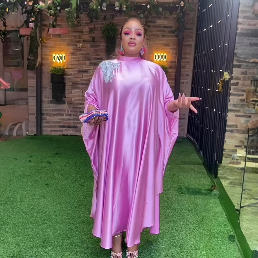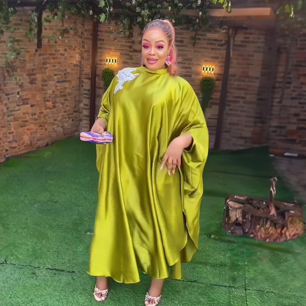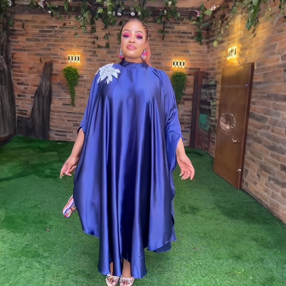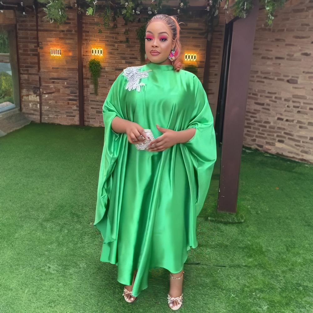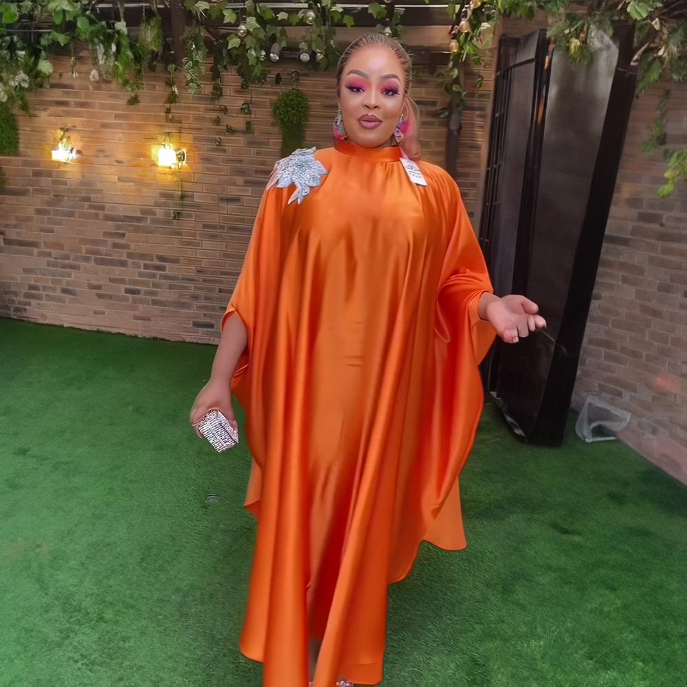 Vestido Africano de Moda y Elegante Talla Grande Rayón Cuello Mao Mangas Murciélago Cuello Mao con Aplicación de Diamantes Falda con Dobladillo Grande