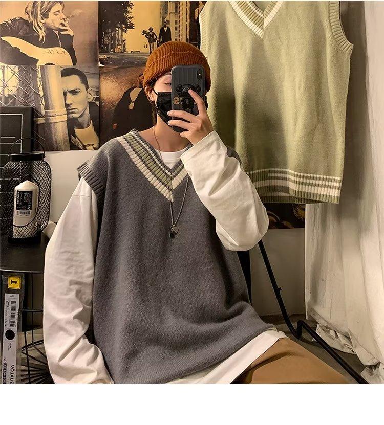 Suéter de cuello en V sin mangas para estudiantes, estilo Chaogang, otoño/invierno 2024, suéter de punto, camisa básica de cuello redondo, cálido