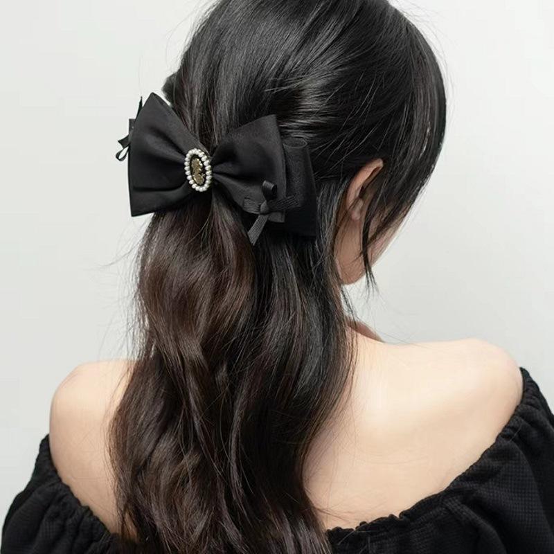 Horquilla para el pelo con lazo retro francés, estilo coreano, suave y elegante, para la parte trasera de la cabeza, para coleta, tocado