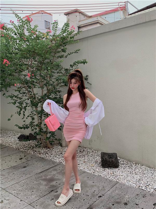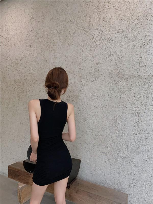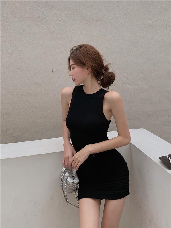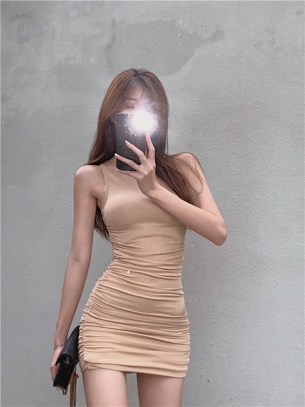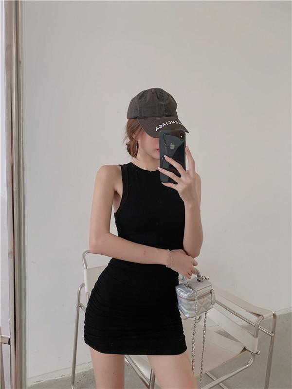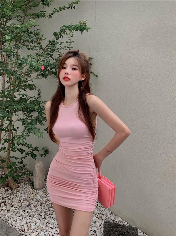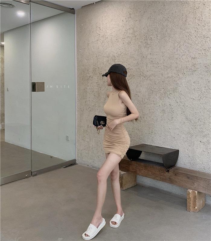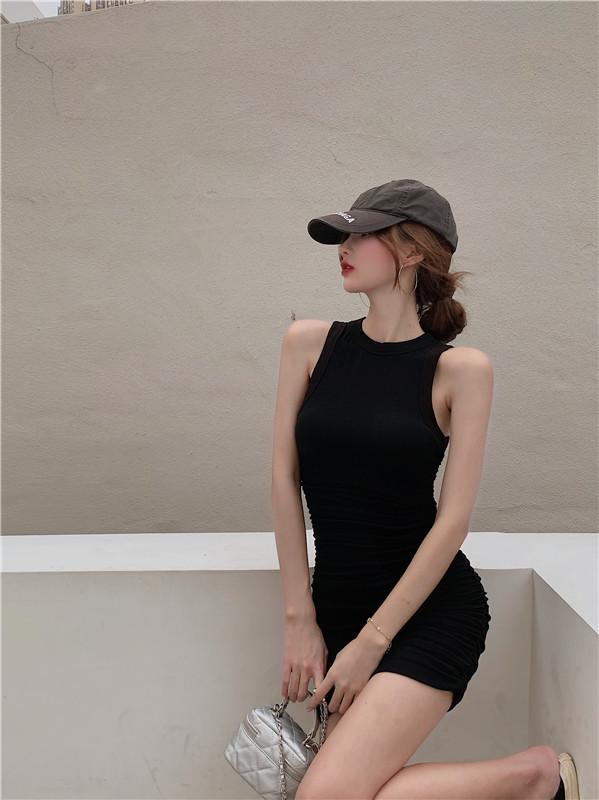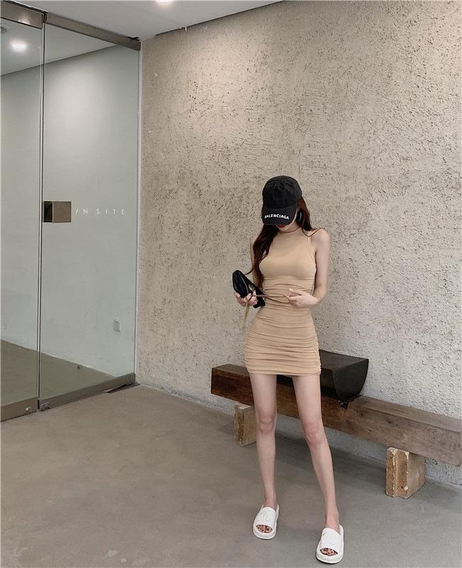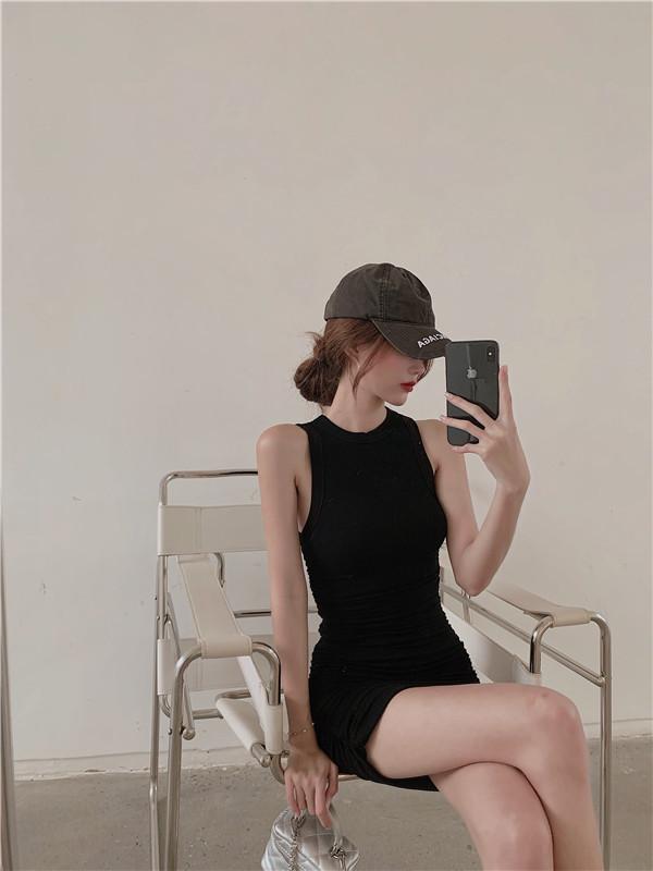 Verano 2025 Calle Principal Chica Hot Delgada Sin Mangas Más Fácil de Combinar Vestido Tricolor Estilo Coreano Deseo Puro Adelgazante Falda de Cadera Mono