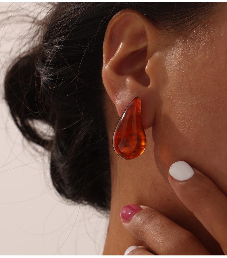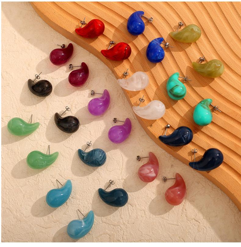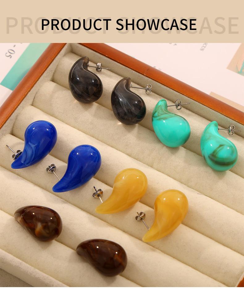 Pendientes geométricos de gota de agua de resina de nuevo nicho transfronterizo europeo y americano, pendientes coloridos de diseño simple con personalidad de moda al por mayor