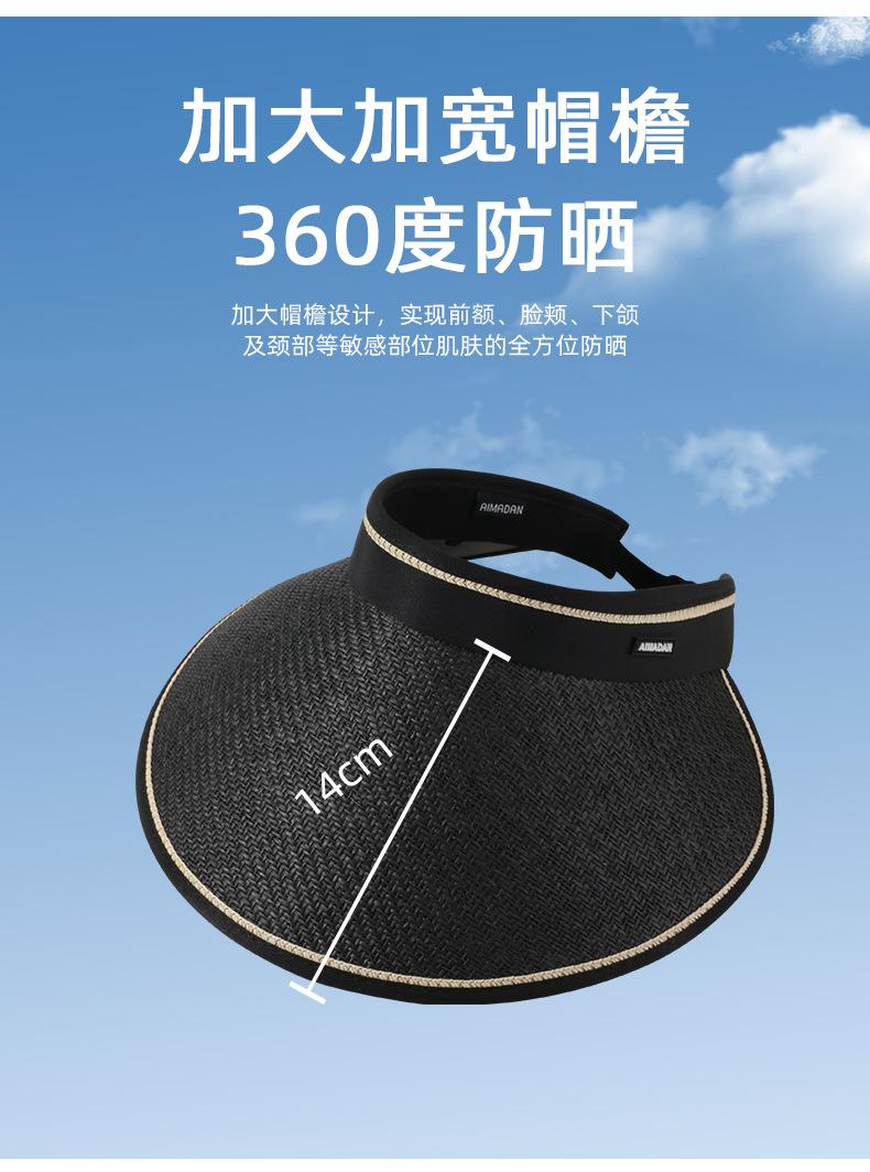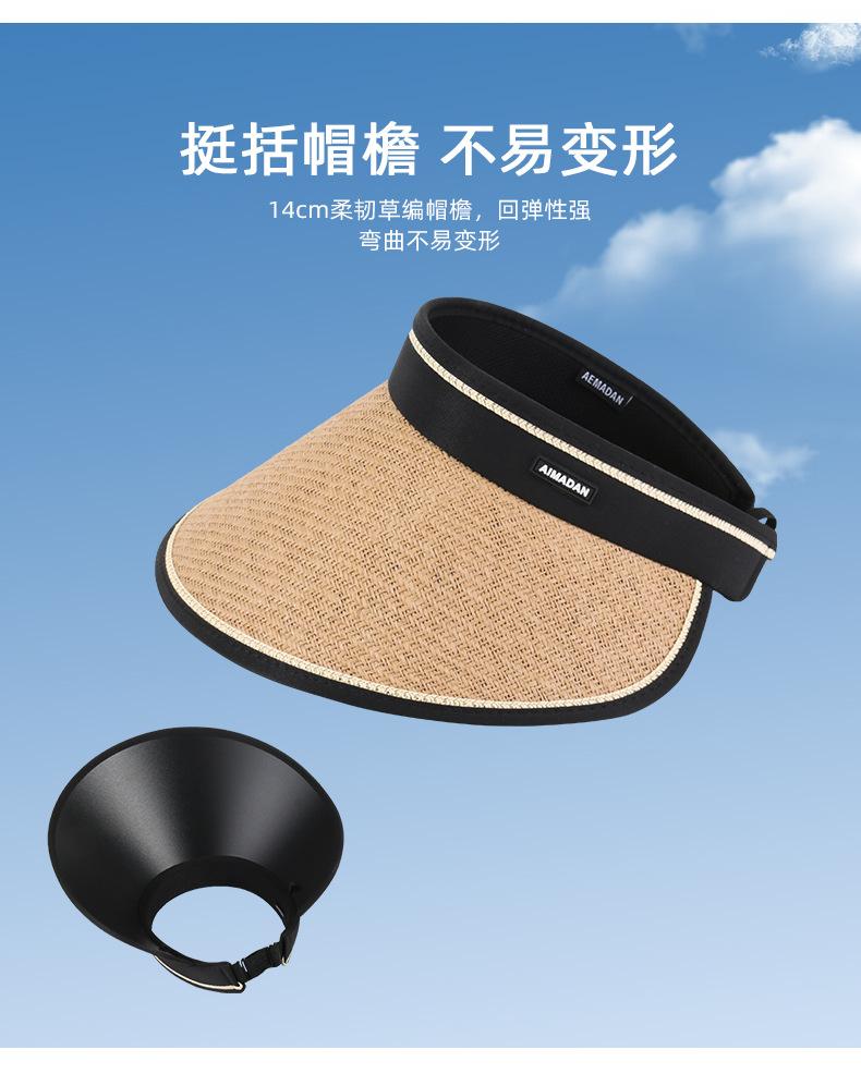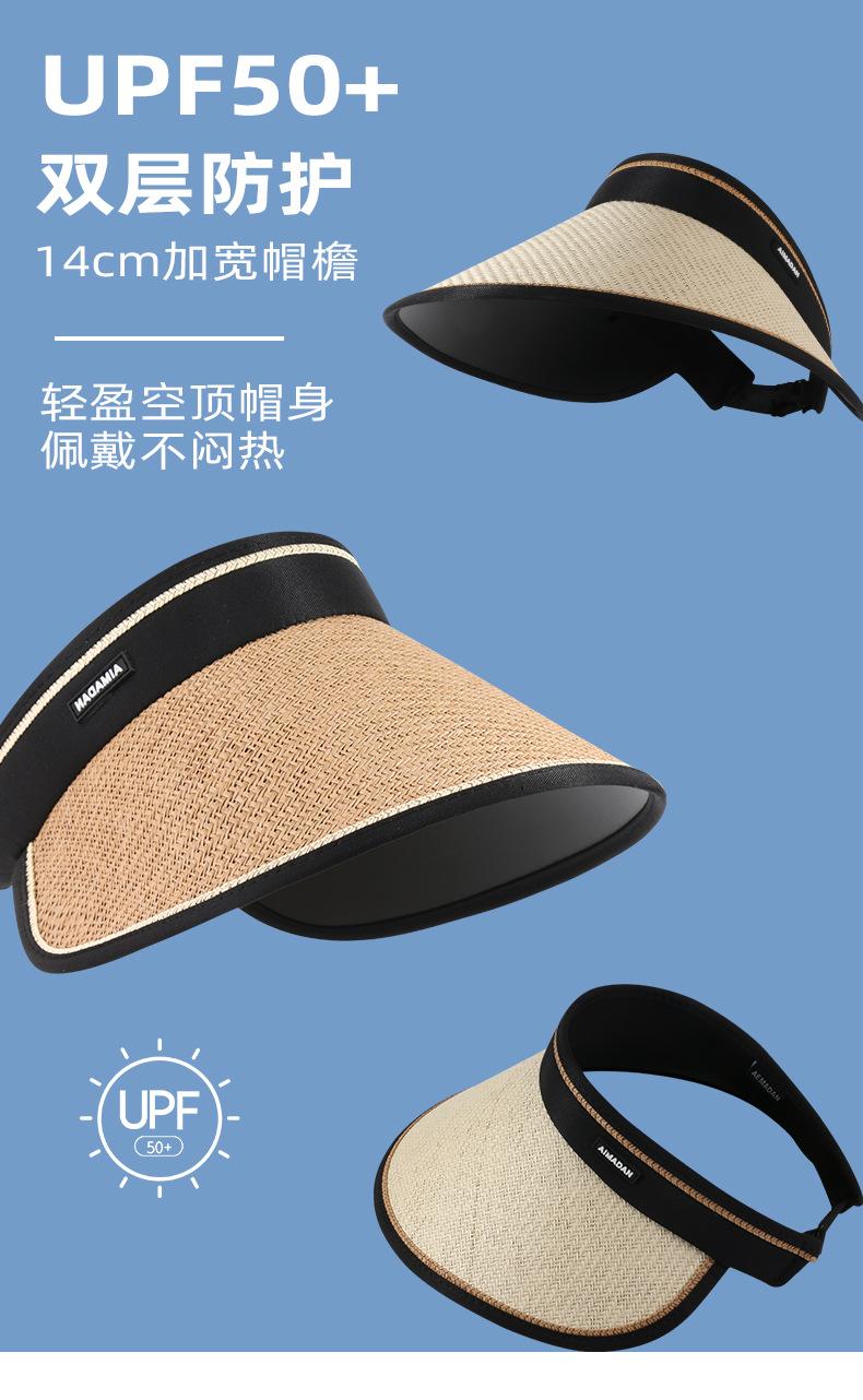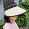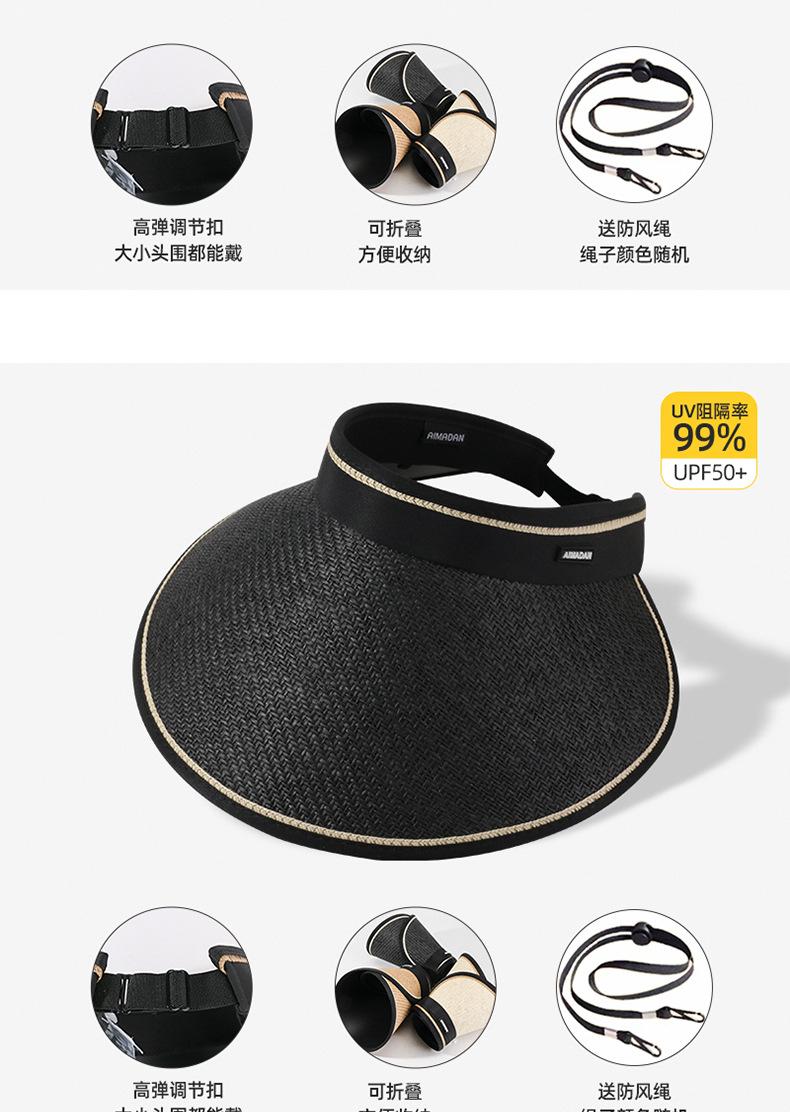 Sombrero de copa de paja de ala grande de goma negra para mujer, moda de verano, protección UV, ciclismo, todo en uno, sombrero de playa para el sol que cubre la cara