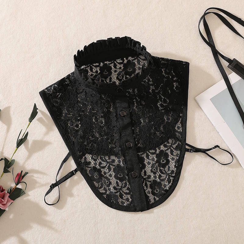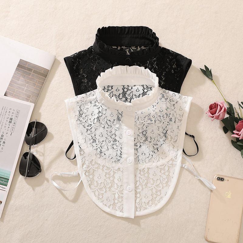 Cuello Falso de Encaje para Mujer Combinable Cuello Falso Estilo Coreano Blanco y Negro Primavera y Otoño Base Cuello Decorativo