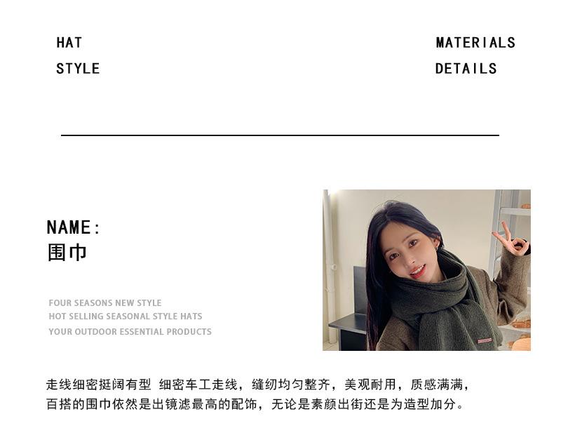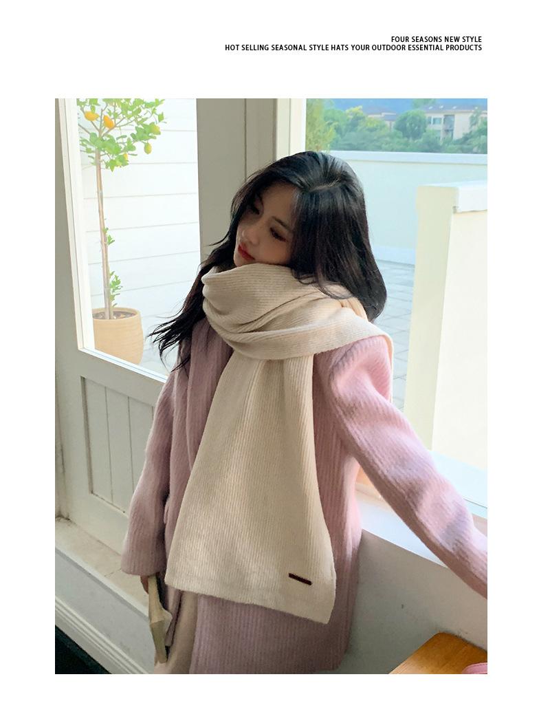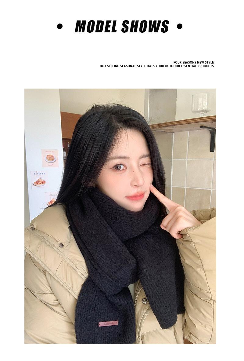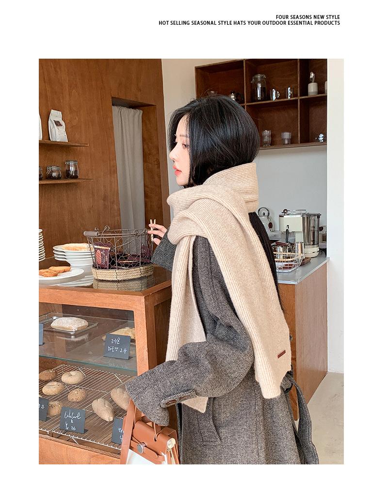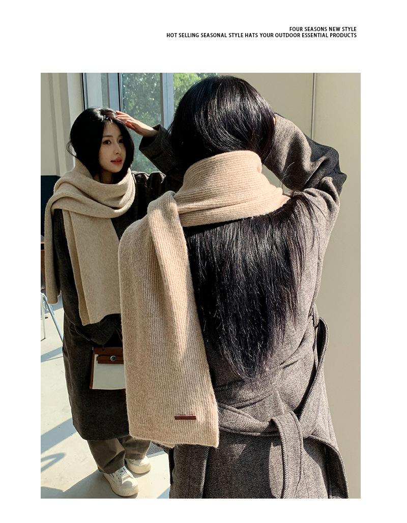 Bufanda de mezcla de lana nueva de otoño e invierno con etiqueta de cuero y rayas, chal de estilo coreano, bufanda cálida a prueba de viento para estudiantes.