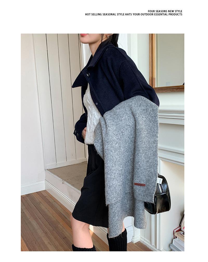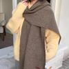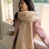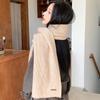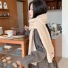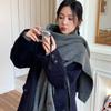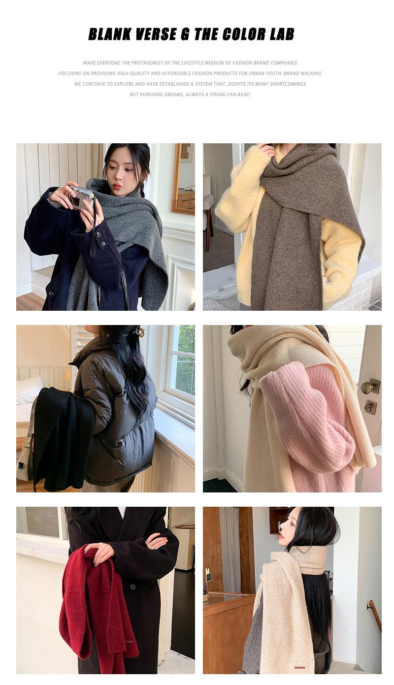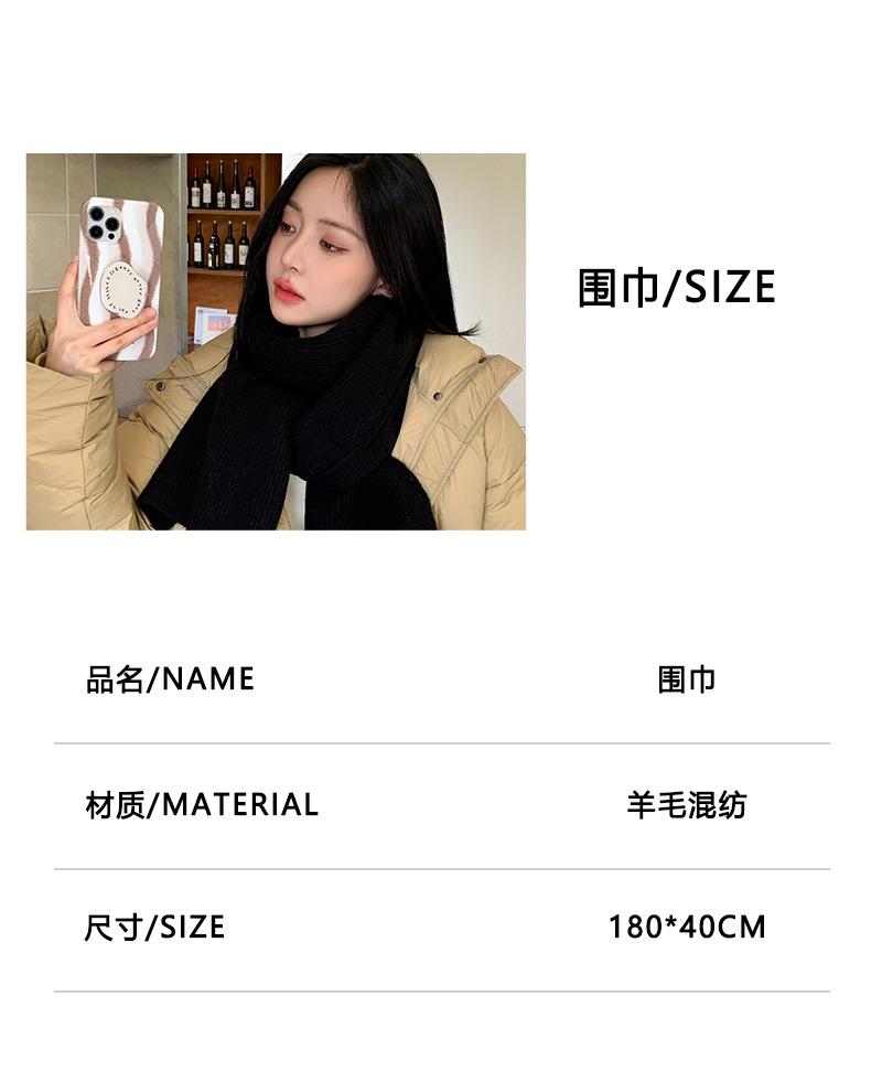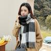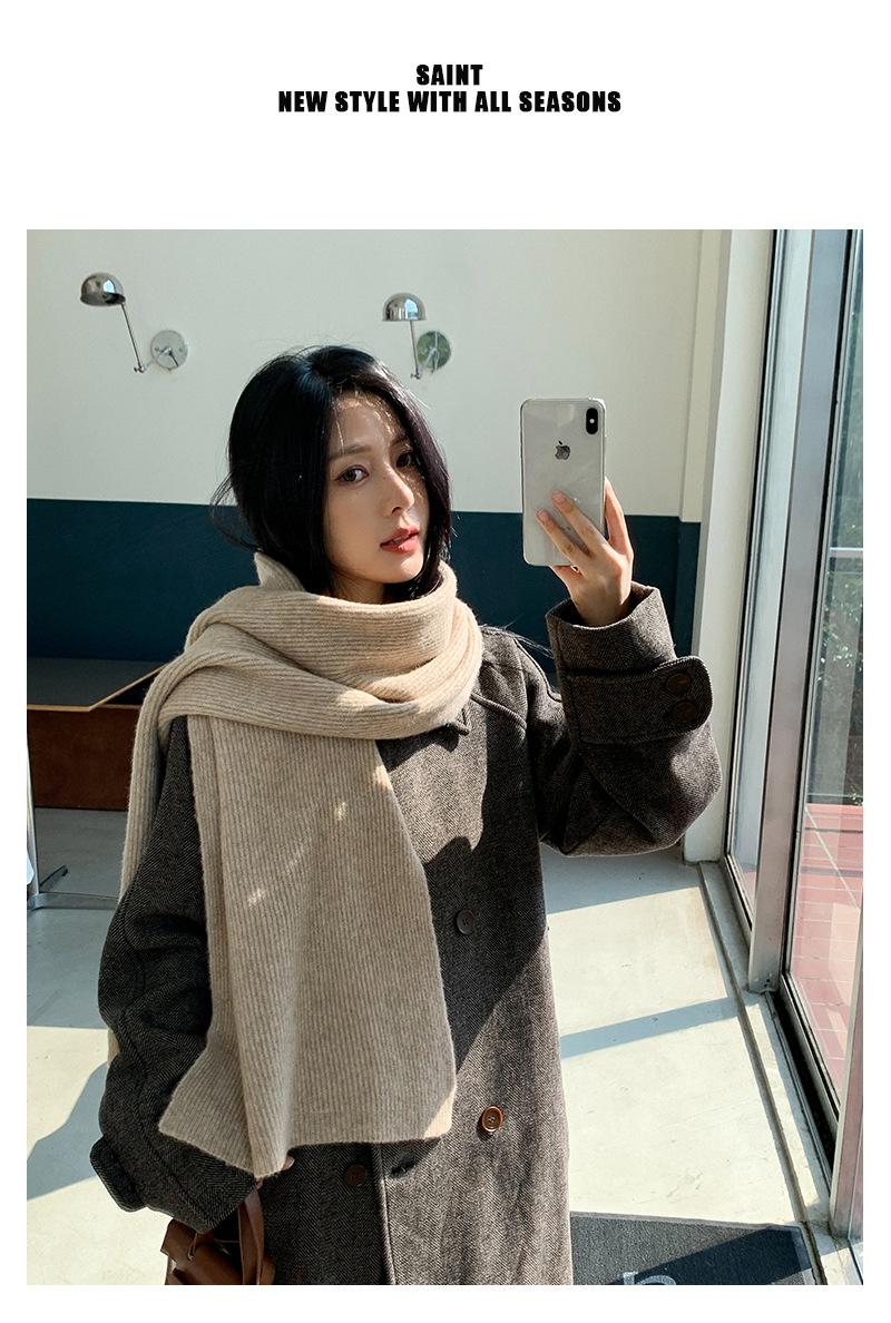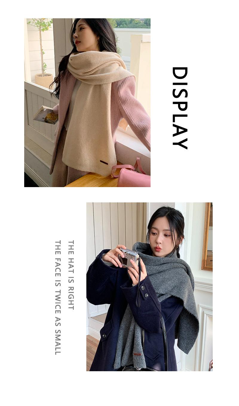 Bufanda de mezcla de lana nueva de otoño e invierno con etiqueta de cuero y rayas, chal de estilo coreano, bufanda cálida a prueba de viento para estudiantes.