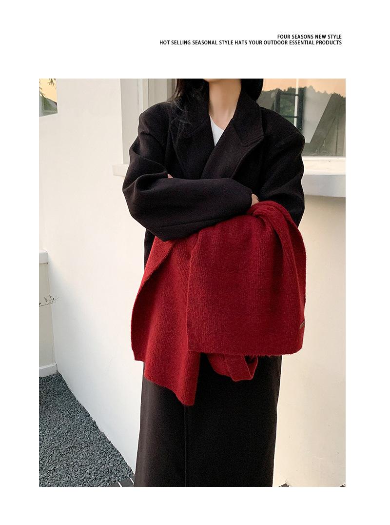 C3243 leather label BOW solid color wool scarf Black, C3243 leather label BOW solid color wool scarf wine red,...