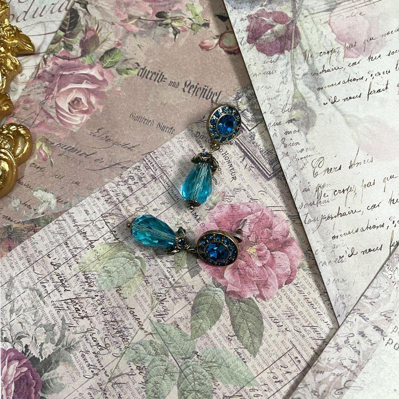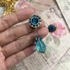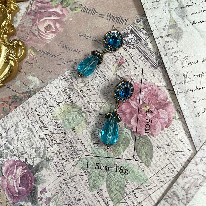 Pendientes de borla estilo corte francés con diamantes azules retro de época antigua de mediados de siglo, accesorios para pendientes