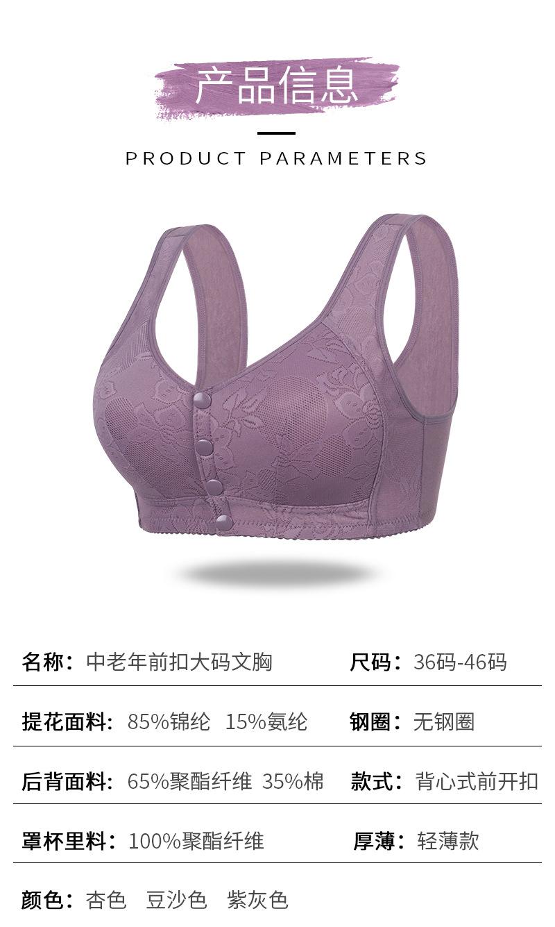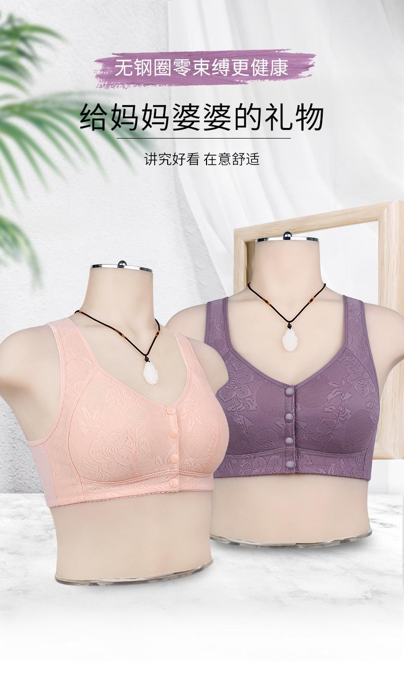 Sujetador nuevo de copa suave de algodón transfronterizo con hebilla delantera, ropa interior para mujeres de mediana edad y mayores, talla grande, sin aro de acero, tirantes anchos tipo chaleco