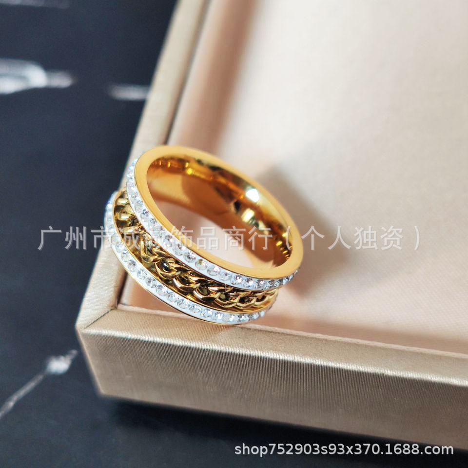 Anillo geométrico de cadena de doble fila de diamantes para mujer, diseño de nicho de alta gama de lujo ligero, no se desvanece, moda de dedo índice, anillo personalizado