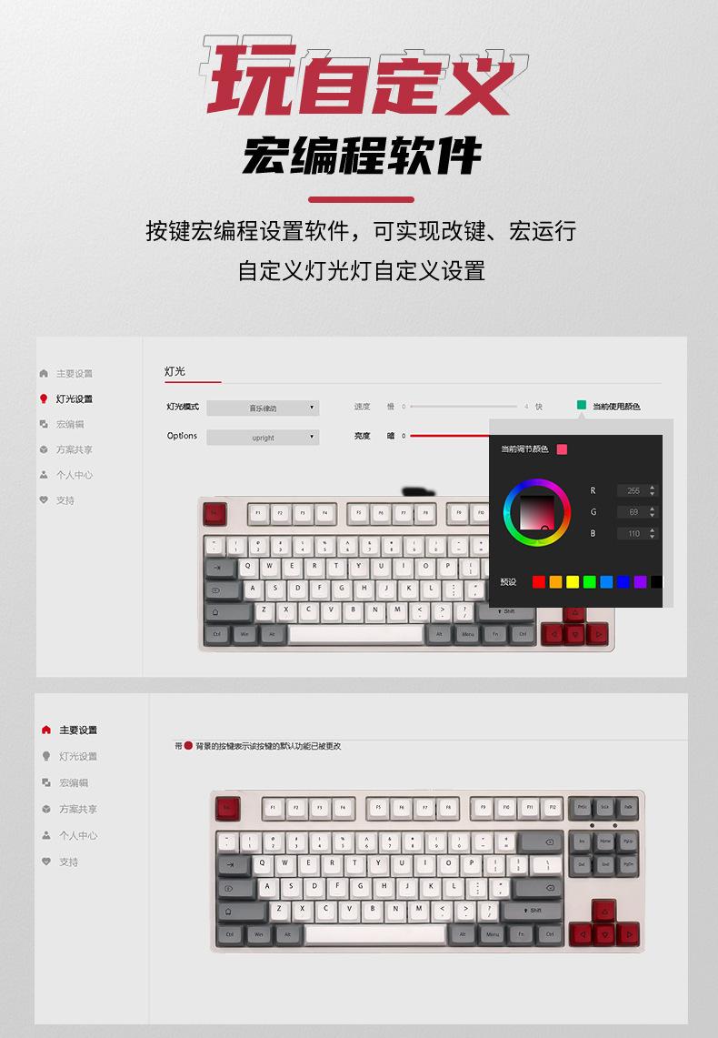 87 Key Triple Mode-Red Kit-Upper Light Bits (Orthoengraved Keycap Applicable)