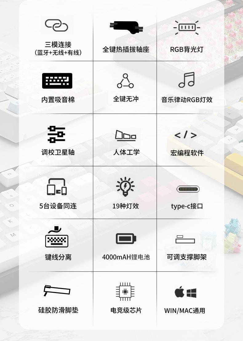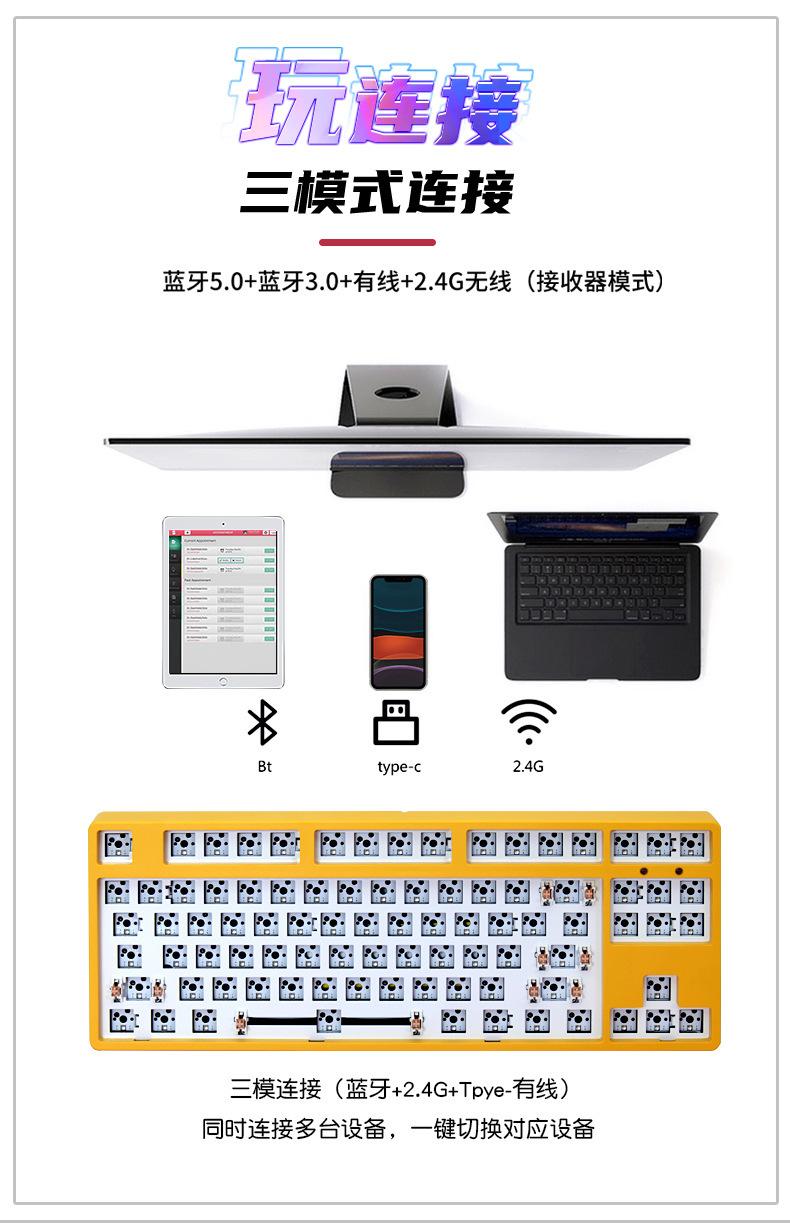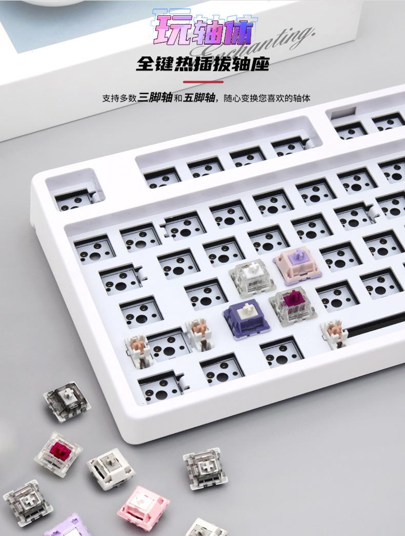 Kit de teclado mecánico inalámbrico Bluetooth de tres modos con 87/108 teclas, luz lateral RGB grabada, conexión en caliente personalizada DIY